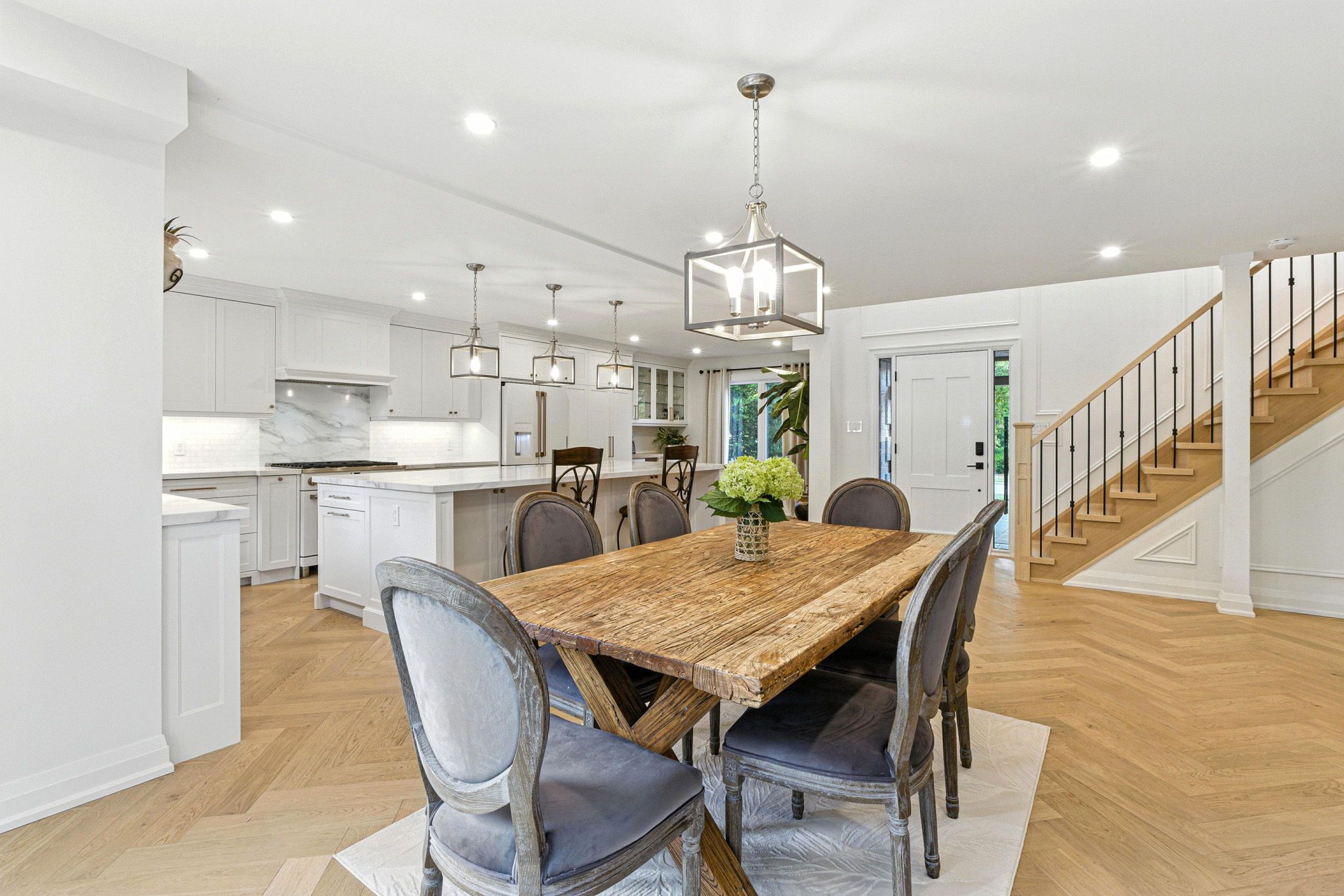 Beautiful home in one of the most sought-after communities in oakville. Premium location on a quiet street in the heart of river oaks. 3+1 bedrooms+ den/office and 4 bathrooms. Once you step in the house you will see a beautifully designed open concept home with a lot of light from the large second floor windows. Elegant and sophisticated european white oak engineered hardwood floors throughout the entire house even in the basement. Main floor hardwood laid in herringbone pattern. Custom designed kitchen offers a clean,open-concept layout with high-end finishes. The large centre island with quartz countertops making it ideal for entertaining. Full-height backsplash create a modern, elegant look. Top-of-the-line cafe collection white matte appliances, including a 6 burner gas range and french door refrigerator. A cozy built-in desk area with glass-front cabinets adds versatility. Dining room offers a perfect blend of warmth and sophistication, ideal for entertaining or intimate family meals. The space is bathed in natural light from expansive sliding glass doors that open to a lush, private backyard. Family room exudes warmth and sophistication, making it the perfect space for relaxation and entertaining. The focal point is a striking whitewashed stone fireplace,elegantly framed with a rustic wooden mantel. Well-appointed mudroom offers practical storage with custom built-in cabinetry,a wood bench & convenient drawers for organization. Custom white oak staircase with elegant moulding wall leads you to the second floor where you'll find 3 generously sized bedrooms, each with b/i closets. The spacious primary bedroom is a true retreat , complete with luxurious 5 piece ensuite bathroom with infloor heating. 7. 5" eng. White oak hardwood throughout the second floor. 2nd oak staircase leads you to the basement which flows into additional living spaces: 1 bedroom, 3 pc. Bathroom, 1 den/office and spacious open concept area ideal for relaxation.