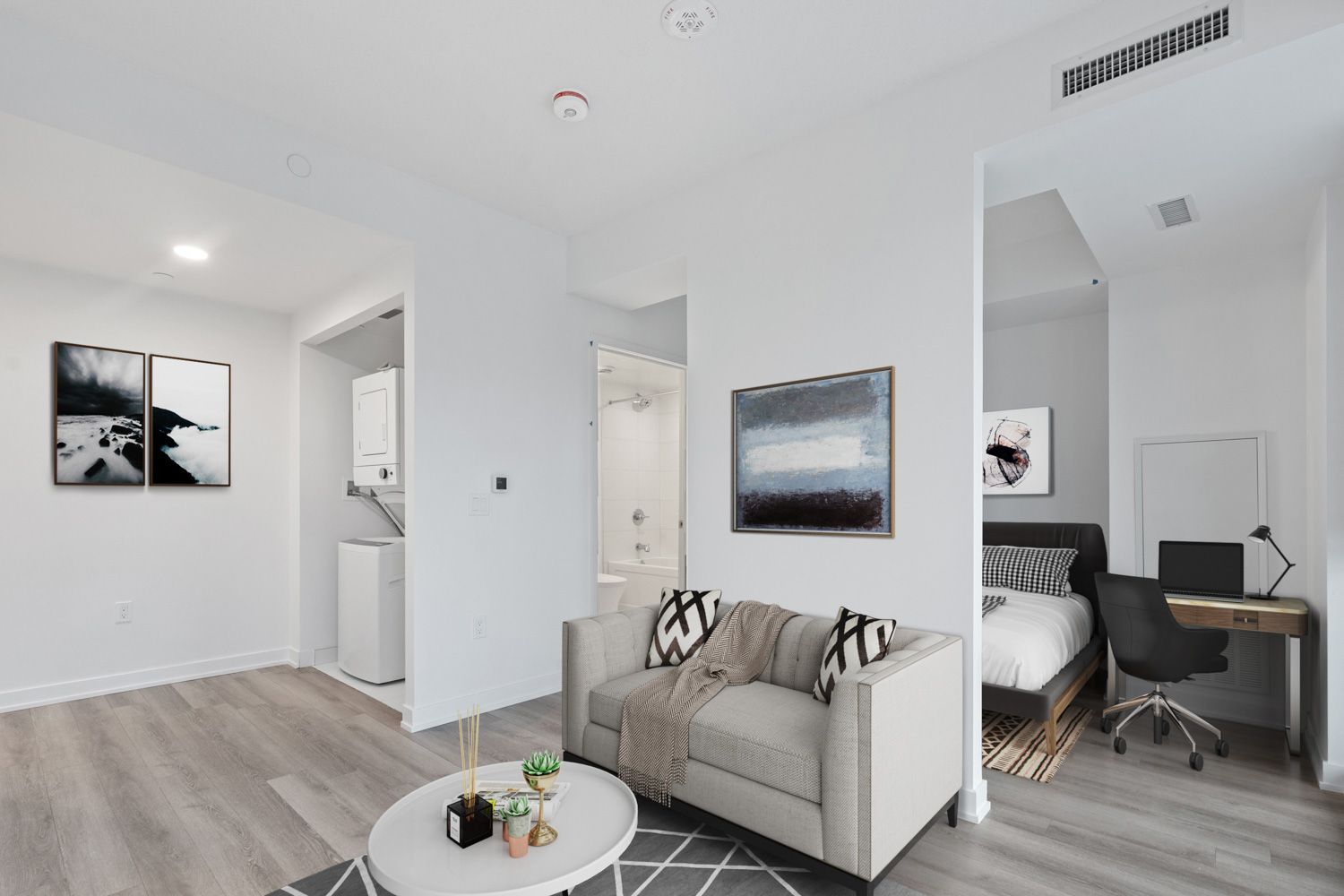 Welcome to this stylish junior one bedroom unit. Thoughtfully designed living space in one of toronto's most exciting communities. The open-concept layout features a combined living/dining area flowing into a sleek modern kitchen equipped with premium appliances - perfect for cooking and entertaining. Elegant laminate flooring runs throughout, creating a seamless contemporary aesthetic. Enjoy exceptional building amenities including a fully equipped fitness centre and beautifully designed common areas. Ideally located steps to ttc, world-class dining, entertainment, universities, shopping, museums, ontario college of art & design university across the street, cultural attractions and all world renowned hospitals - everything downtown living has to offer is right at your doorstep. Experience upscale urban living at artist alley - where convenience, comfort, and sophisticated style come together. Thoughtfully designed for comfort. *virtual staging used. May not be to scale.