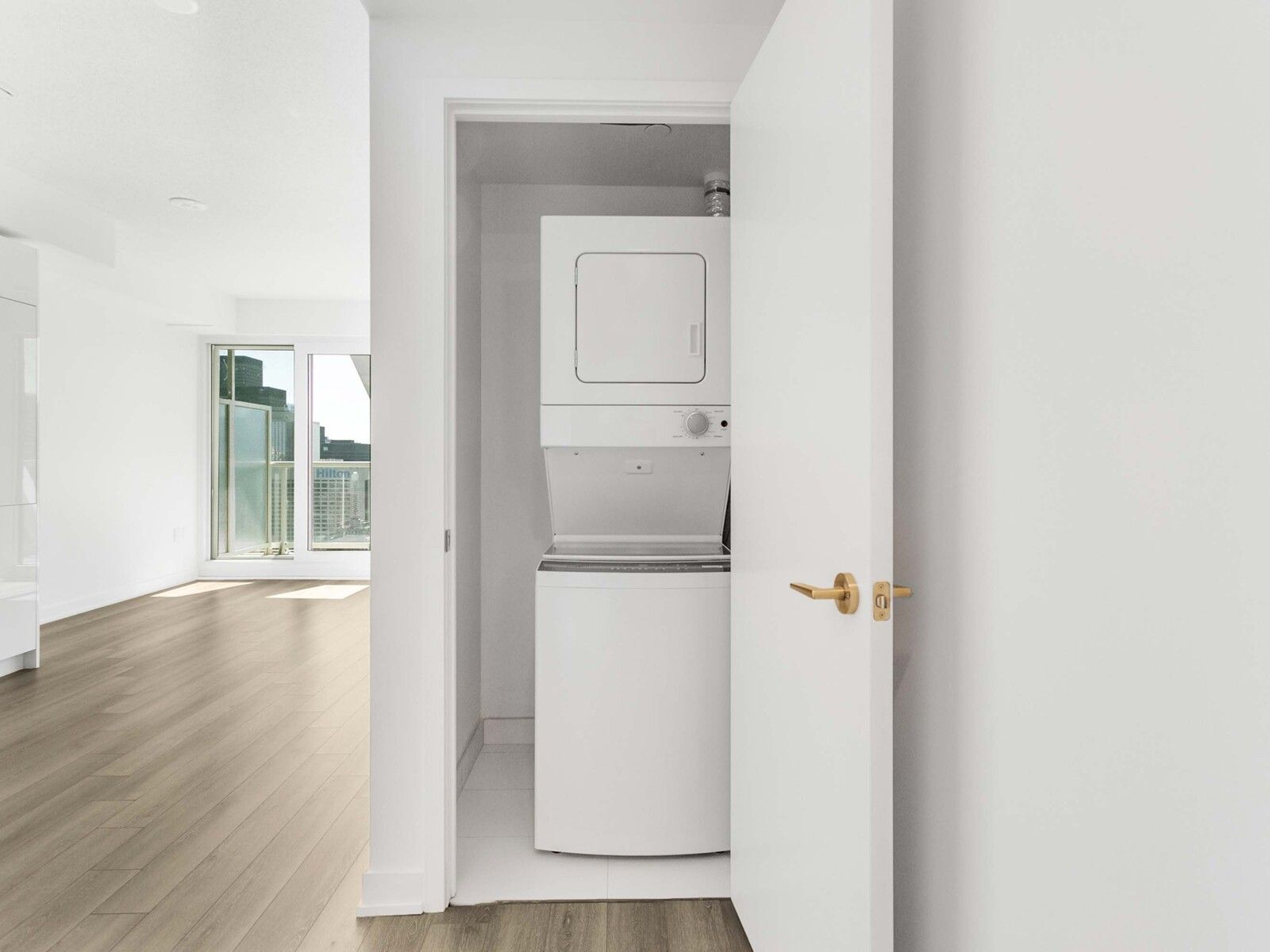 Move into this 2 bed, 2 bath condo at 230 simcoe st, toronto, glowing lots of natural light and unobstructed south facing views. Available now, this radiant unit in artists alley condos features laminate floors in the open living-dining area. The modern kitchen boasts italian designer appliances, granite countertops, and sleek finishes. The primary bedroom shines with south-facing floor-to-ceiling windows, mirrored closets, a 4-pc ensuite, and blackout blinds for perfect rest. The second bedroom has a large closet, glass sliding doors with a privacy screen, and easy access to a 3-pc common washroom. In-suite washer-dryer adds ease. Steps from two subway stops (st. Patrick & osgoode), ocad, and the ago, plus near u of t and hospitals, this downtown gem offers unmatched access to art, culture, and transit. Ideal for professionals or couples craving a stylish, move-in-ready home in a vibrant location!