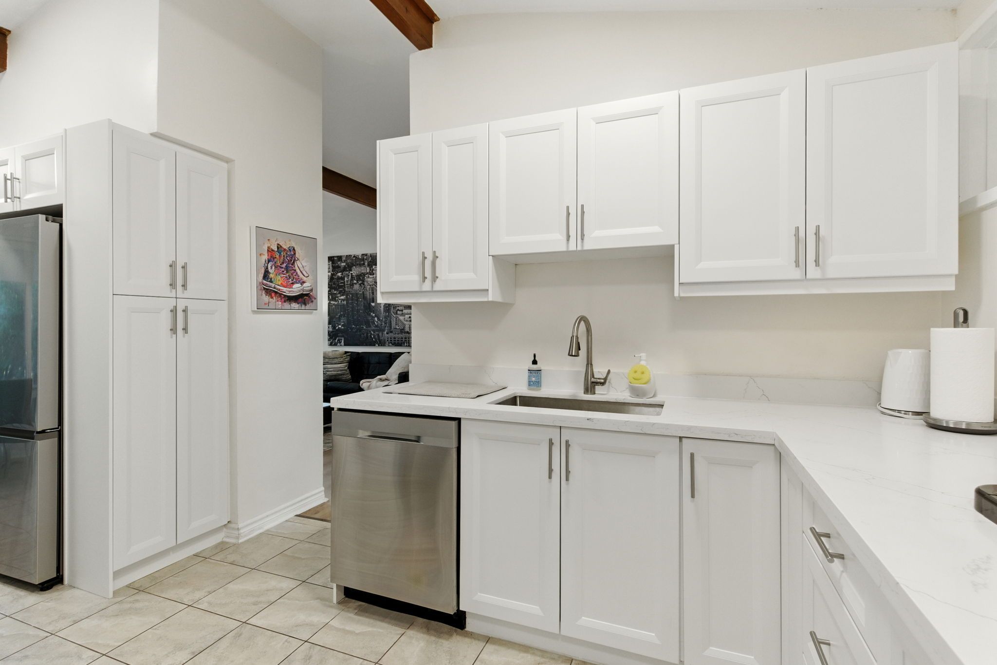 • Chef-inspired kitchen with high-end appliances and quartz countertops.