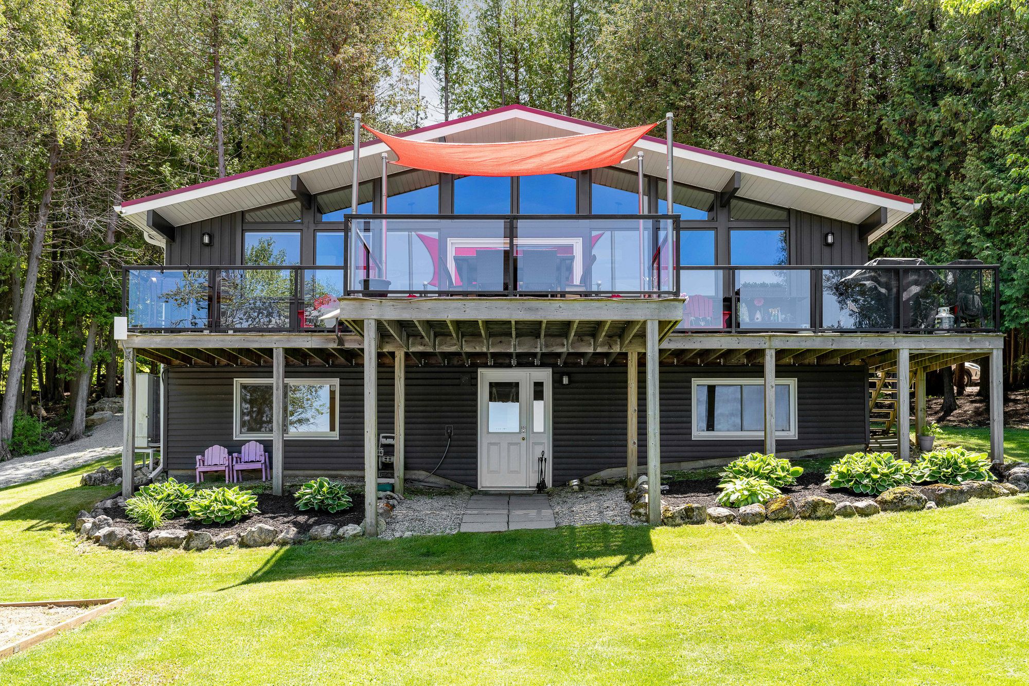 Set on one of the largest and most private parcels on lake eugenia, this extraordinary waterfront property offers an unparalleled combination of space, privacy, and breathtaking west-facing sunsets. With an impressive 210 feet of pristine shoreline and a rare 1. 28-acre double lot, the setting is truly unmatched-providing expansive outdoor space, natural separation from neighbours, and a front-row seat to golden-hour skies that make every evening unforgettable. Designed for relaxed lakeside living and memorable al fresco dining, the property's expansive decks and waterfront entertaining areas capture panoramic sunset views across the water, creating the perfect backdrop for long summer dinners, family gatherings, and fireside evenings. The private dock offers easy access for swimming, paddling, boating, and all-day enjoyment on the lake, while the generous lot allows room to roam, play, and unwind in complete seclusion. The fully furnished four-bedroom walkout cottage is move-in ready and thoughtfully updated with efficient heating and cooling, refreshed siding and windows, a durable metal roof, and a feature fireplace that blends modern comfort with classic cottage charm. A valid short-term accommodation licence adds valuable flexibility, offering strong rental potential when not in personal use. Ideally located minutes from beaver valley ski club, the bruce trail, golf, and the new markdale hospital, and within easy reach of kitchener-waterloo and toronto, this is a rare opportunity to secure unprecedented lake eugenia frontage. A true four-season retreat where privacy, sunsets, and waterfront living come together in spectacular fashion.