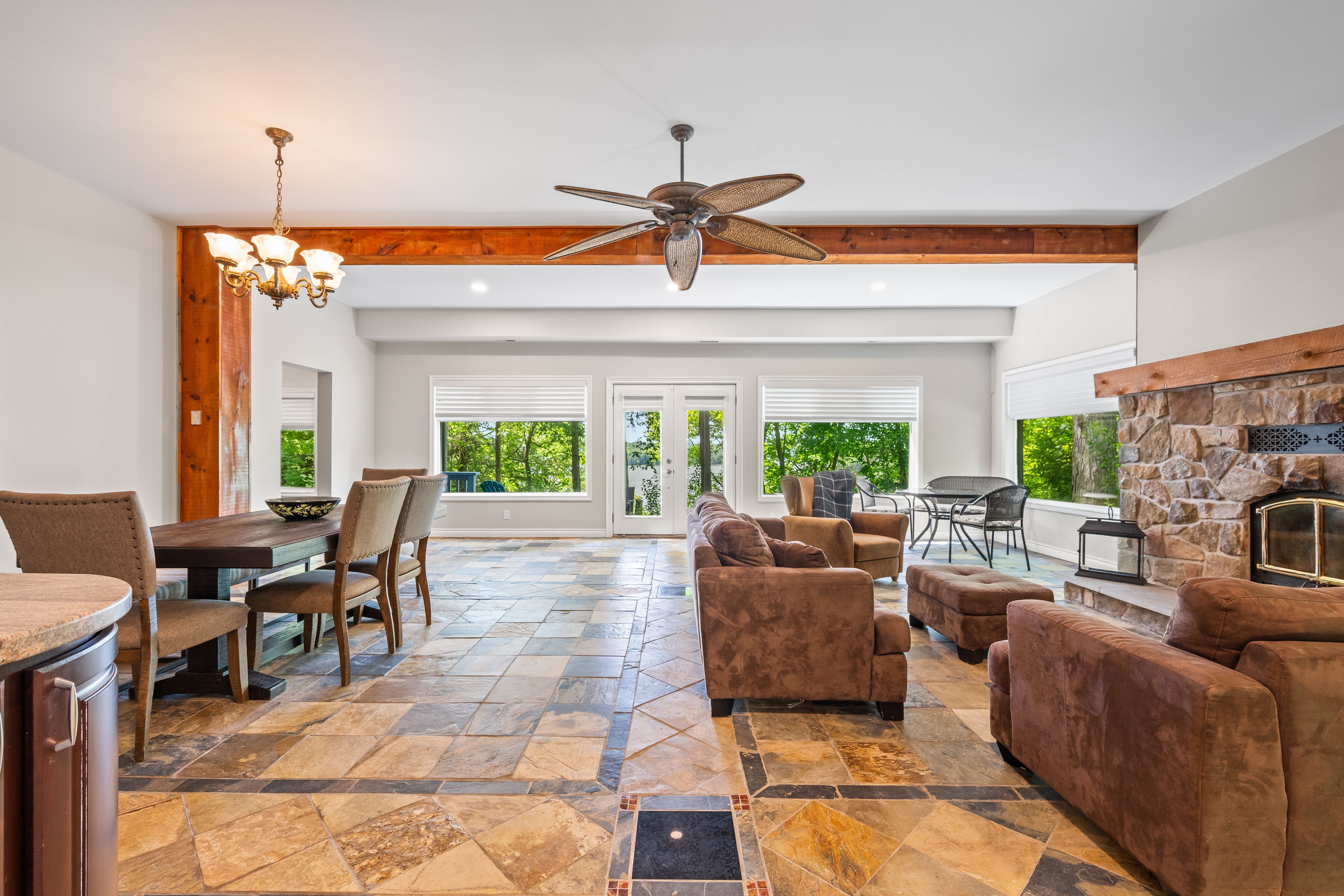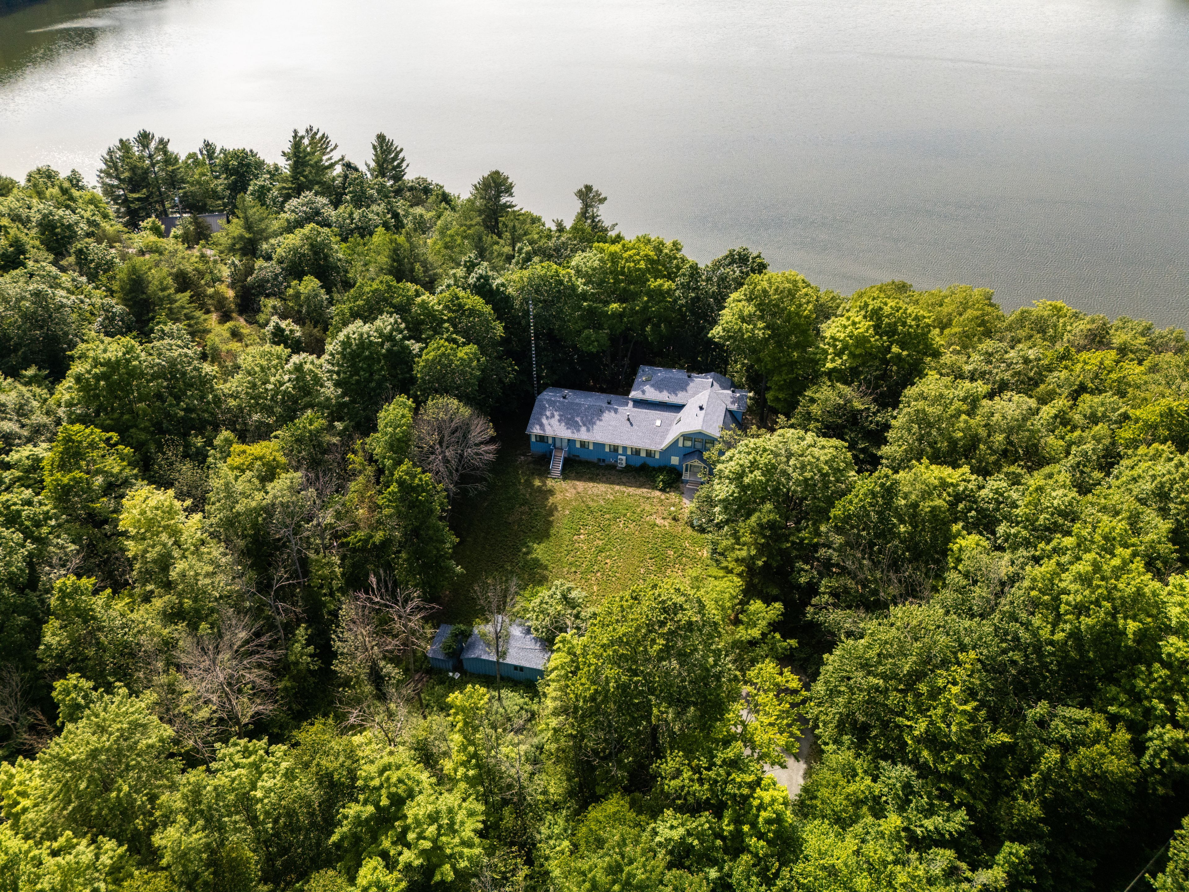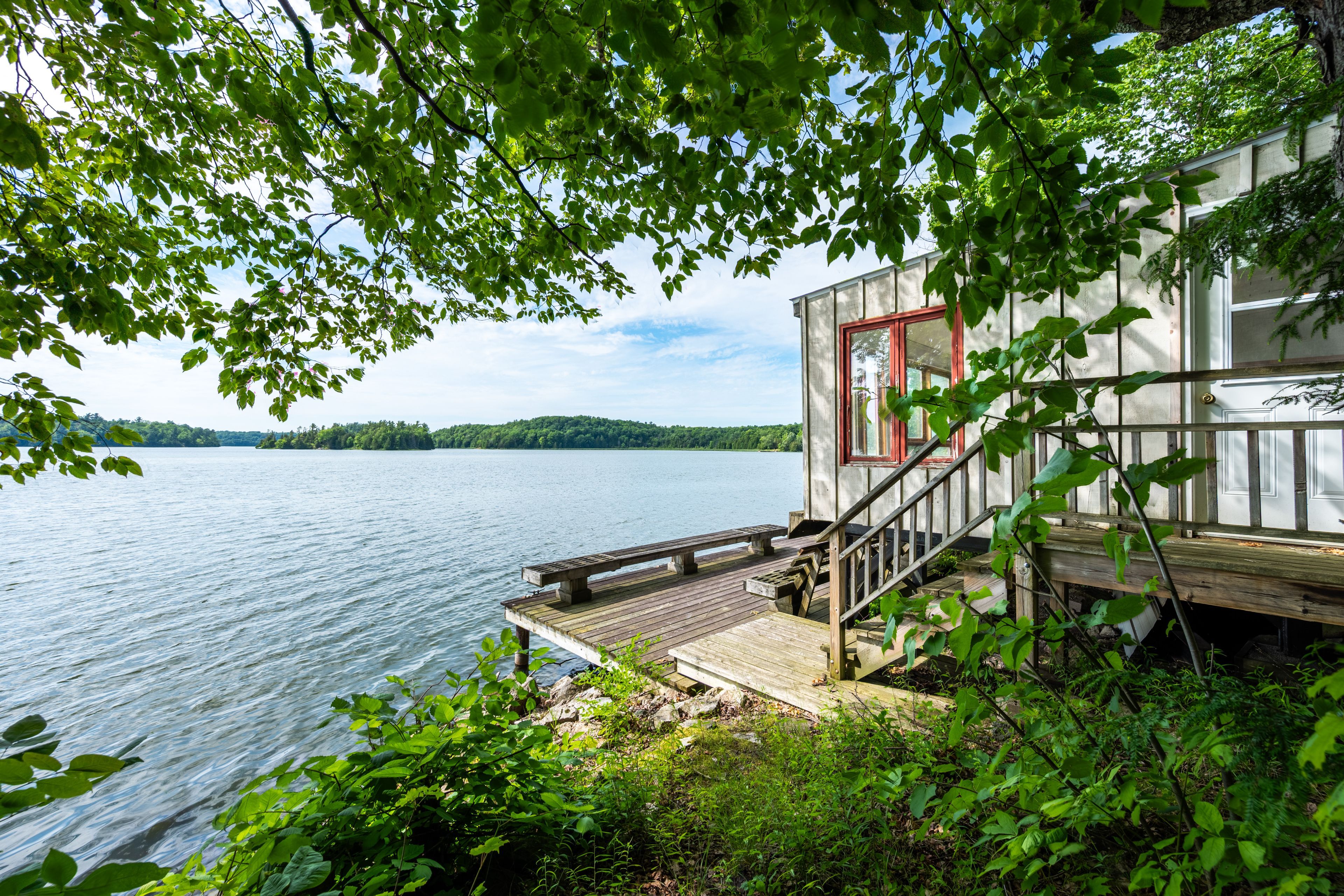 Million-dollar views, endless potential 22. 5 acres on south lake. An extraordinary opportunity awaits with this sprawling waterfront estate, offering over 800 feet of west-facing shoreline on beautiful south lake. Just 10 minutes from gananoque, this unique property delivers unbeatable privacy, breathtaking sunsets, and the chance to create your dream retreat. The house features over 6000 sq ft of living space with 7 bedrooms, 6 bathrooms, private master suite, beautiful office and grand living room. Tucked away among a diverse landscape of hardwoods, softwoods, granite outcrops, and abundant wildlife, the setting is nothing short of magical. Follow the well-maintained stairs down to a charming rustic separately deeded cabin right at the waters edge - perfect for peaceful getaways or summer afternoons by the lake. Recent updates to the home include: new septic system, new furnace, new a/c, water softener, washer/dryer, gas stove, new blinds throughout, new flooring in all bedrooms and freshly painted inside and out. This is more than just a property, its a lifestyle, a sanctuary, and a once-in-a-generation chance to own a true piece of canadian landscape.