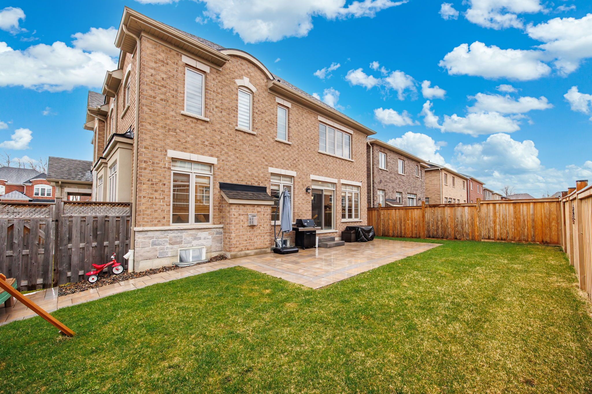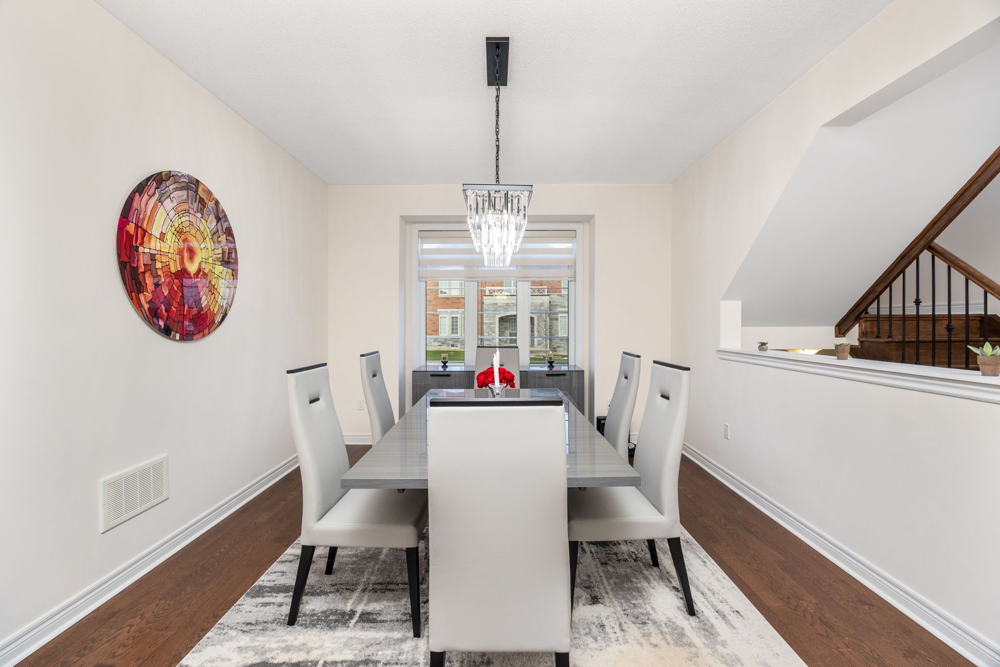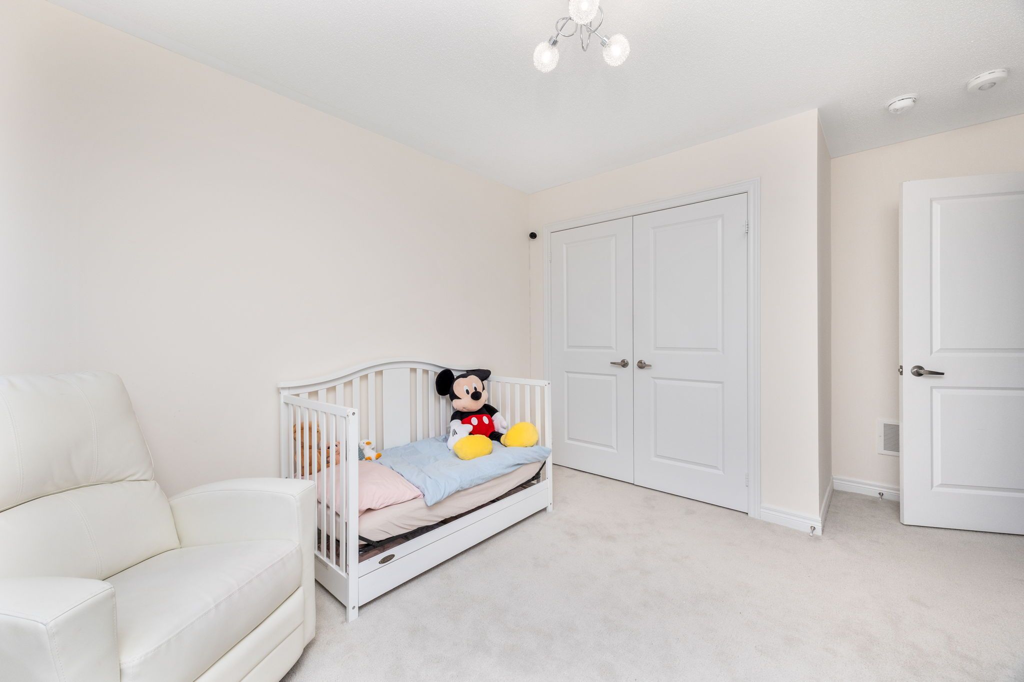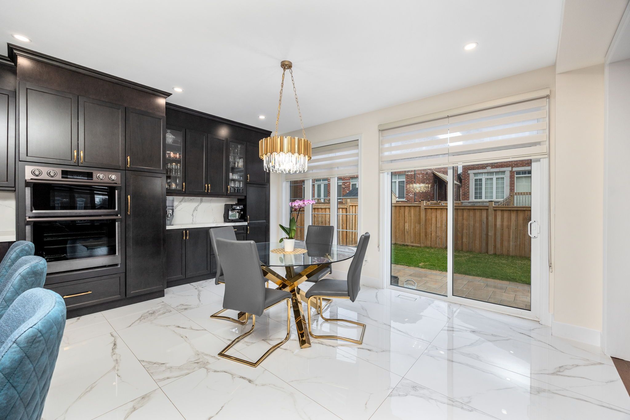 Exceptional corner unit home with over 3,000 sq ft of living space and more than $200k in high-end upgrades. Meticulously maintained and move-in ready, this stunning property features an enclosed main floor office with double privacy doors, elegant wrought iron railings, upgraded porcelain tile, and a custom renovated powder room. The designer kitchen is a standout, offering extended cabinetry, a large island, quartz counters and backsplash, built-in wine/mini fridge, wet bar/server area, and premium matte stainless steel kitchenaid appliances including a built-in wall oven. Refined details continue throughout with luxury fixtures, a grand chandelier, and dimmable pot lights. The renovated laundry room is both stylish and functional with extensive cabinetry, quartz counters, upgraded sink and faucet, drying rack, and high-end samsung washer/dryer. Heated and insulated garage with epoxy floors, overhead storage, and custom cabinetry. Oversized basement windows provide excellent natural light. The fully landscaped backyard complete with large patio, new sod, newer fence, and playground is perfect for outdoor living and entertaining. An impressive home showcasing quality, comfort, and extensive upgrades throughout.