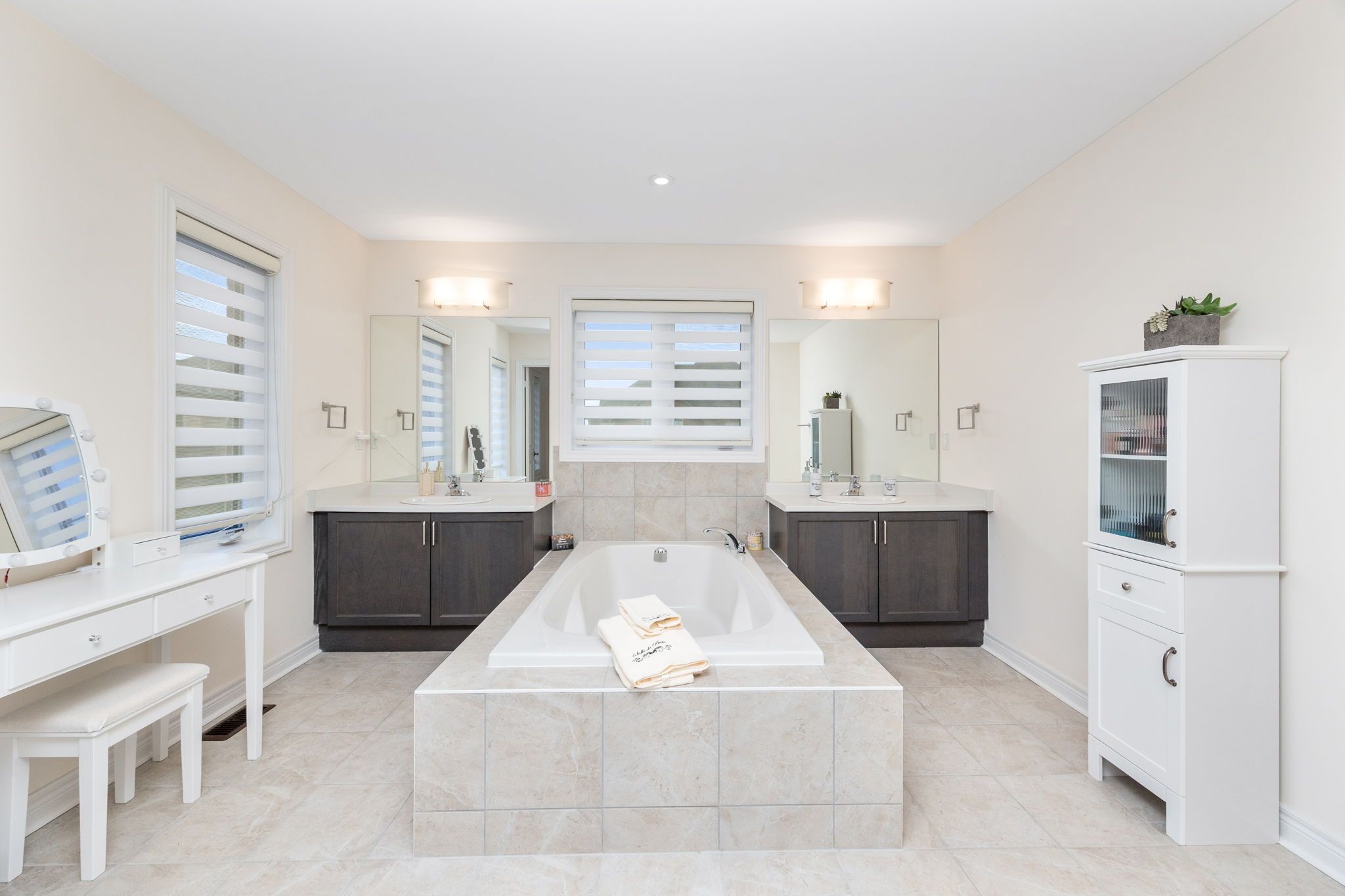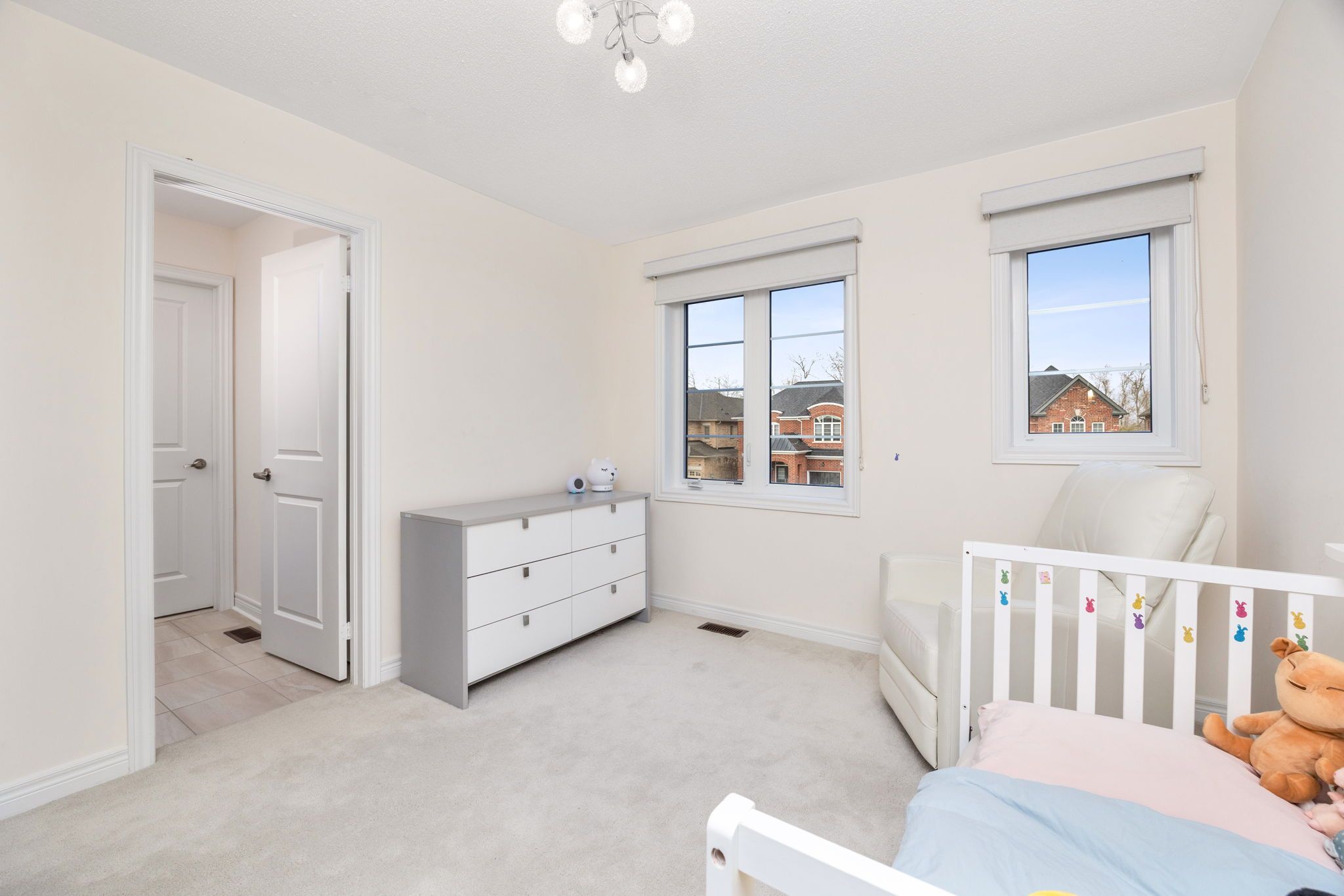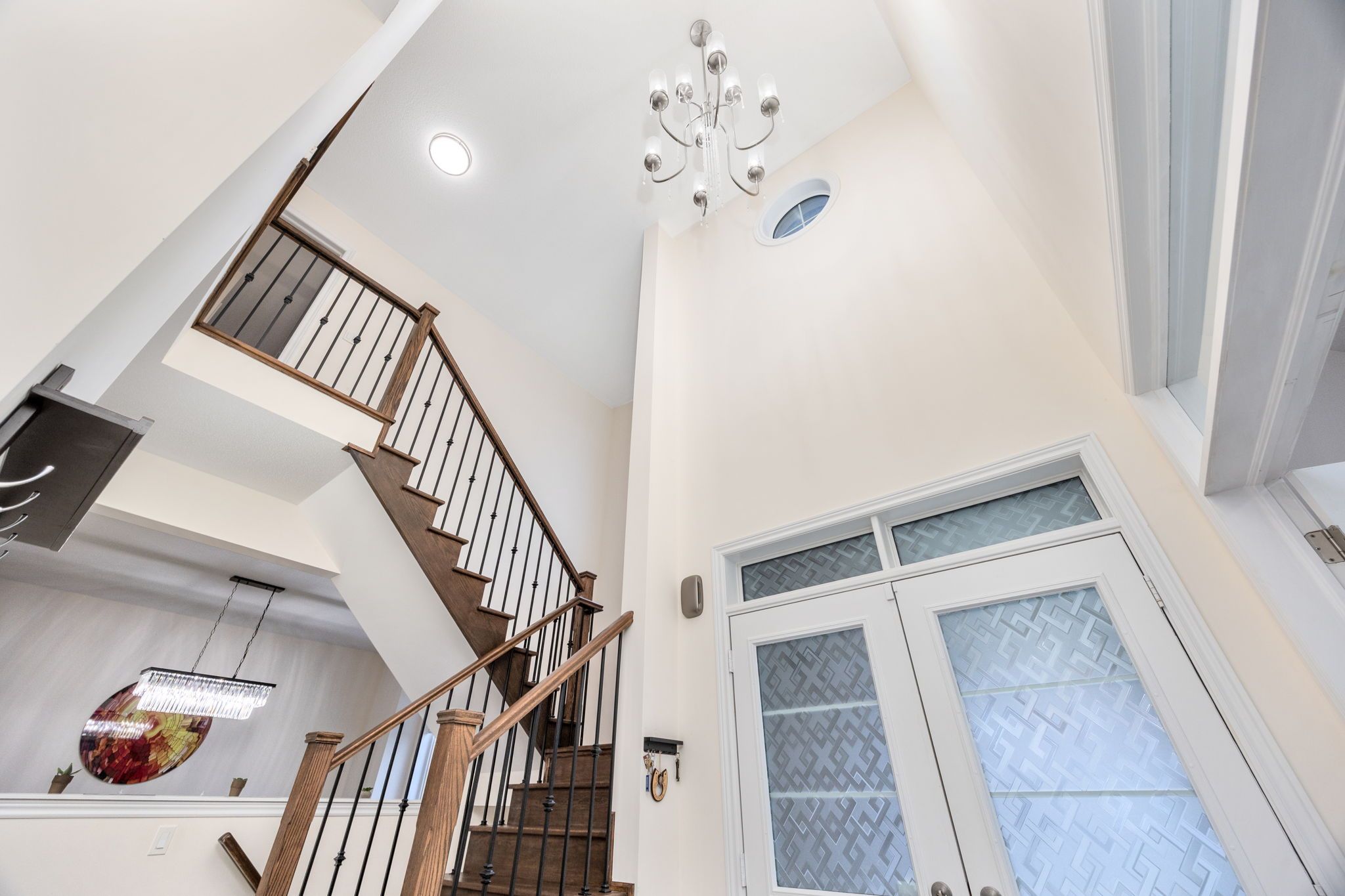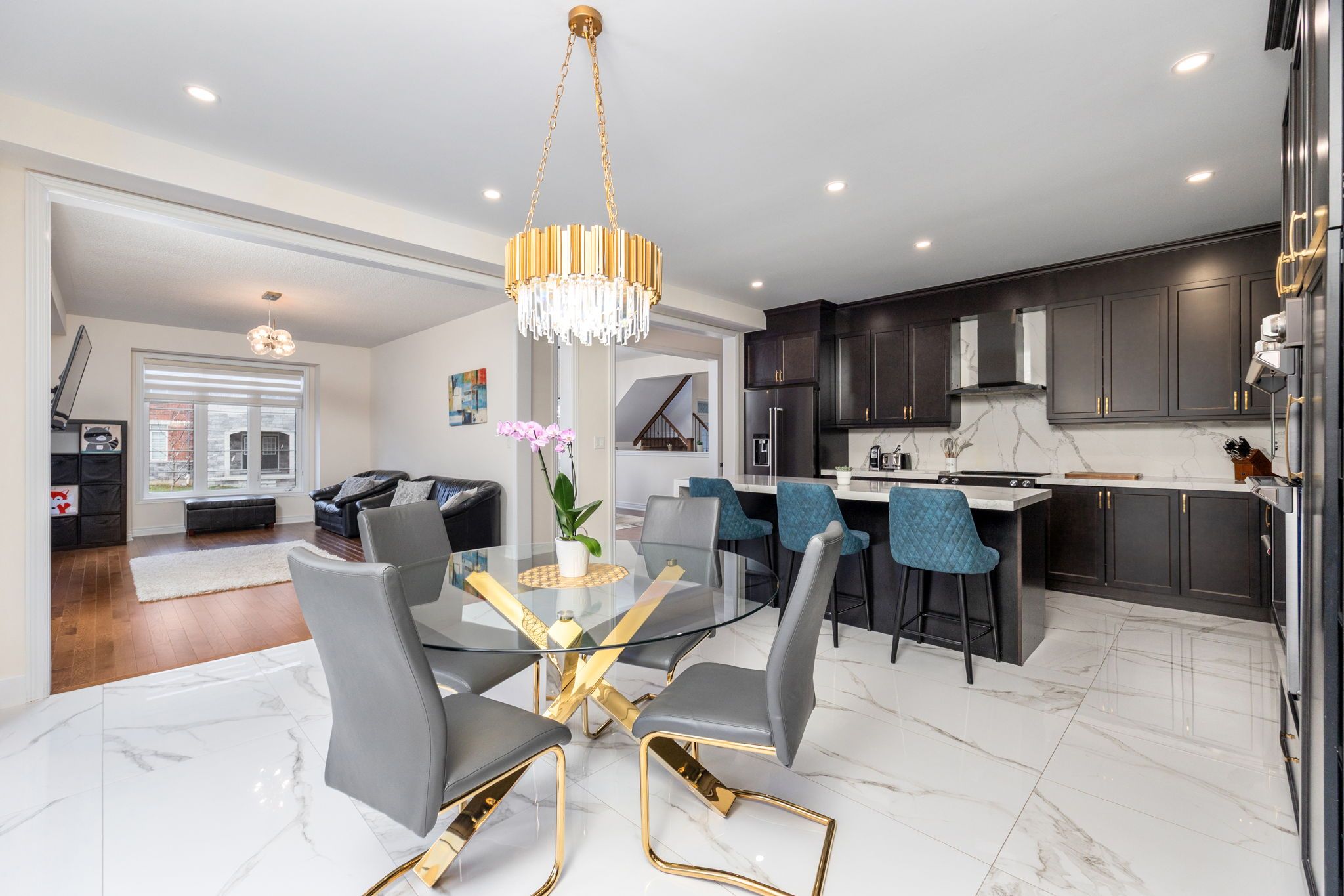 Exceptional corner unit home with over 3,000 sq ft of living space and more than $200k in high-end upgrades. Meticulously maintained and move-in ready, this stunning property features an enclosed main floor office with double privacy doors, elegant wrought iron railings, upgraded porcelain tile, and a custom renovated powder room. The designer kitchen is a standout, offering extended cabinetry, a large island, quartz counters and backsplash, built-in wine/mini fridge, wet bar/server area, and premium matte stainless steel kitchenaid appliances including a built-in wall oven. Refined details continue throughout with luxury fixtures, a grand chandelier, and dimmable pot lights. The renovated laundry room is both stylish and functional with extensive cabinetry, quartz counters, upgraded sink and faucet, drying rack, and high-end samsung washer/dryer. Heated and insulated garage with epoxy floors, overhead storage, and custom cabinetry. Oversized basement windows provide excellent natural light. The fully landscaped backyard complete with large patio, new sod, newer fence, and playground is perfect for outdoor living and entertaining. An impressive home showcasing quality, comfort, and extensive upgrades throughout.