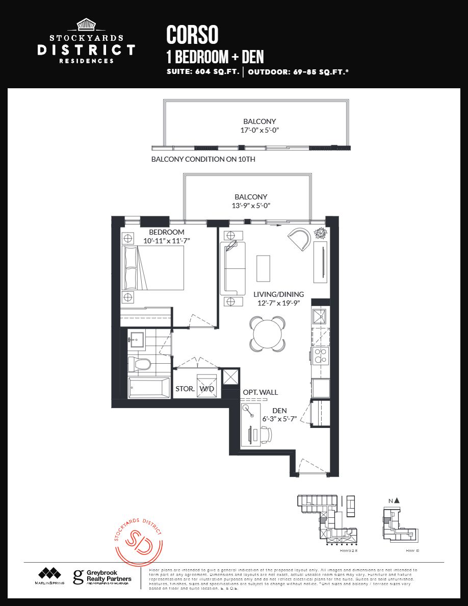 Open concept 1-bedroom + den penthouse available in boutique styled stockyards residences! Spacious floorplan with 604 sf interior living + 85 sf balcony with clear west exposure. Floor to ceiling windows. Chic finishes, freshly painted, laminate flooring throughout, 9 ft ceilings, roomy closets in bedroom. Great location, minutes from ttc/streetcar, banks, coffee shops, stock yards village, metro grocery, canadian tire, shoppers drug mart, high park & more. Short term lease available. Photos are from original occupancy, bathroom mirror has been installed.