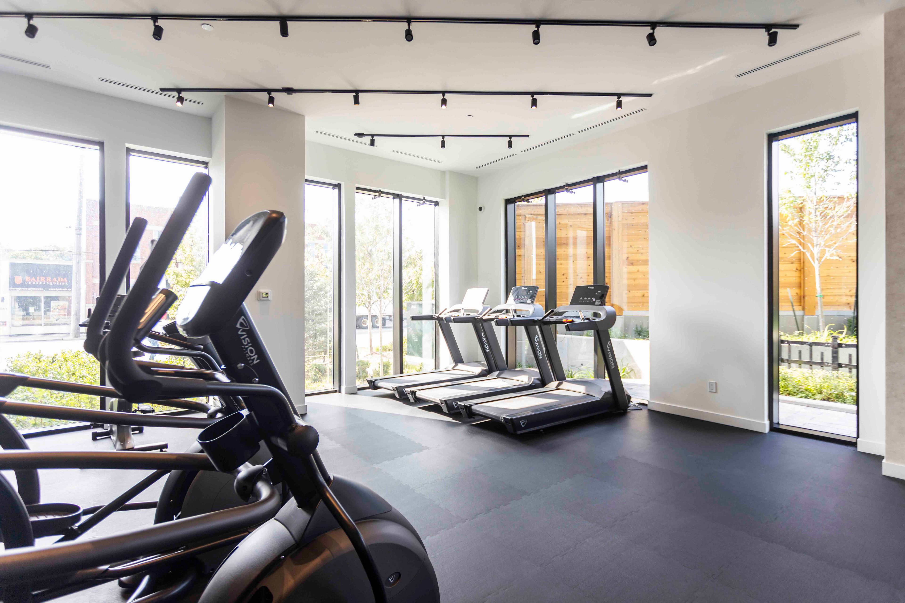 • Building includes gym, outdoor terrace, and 24-hr concierge.