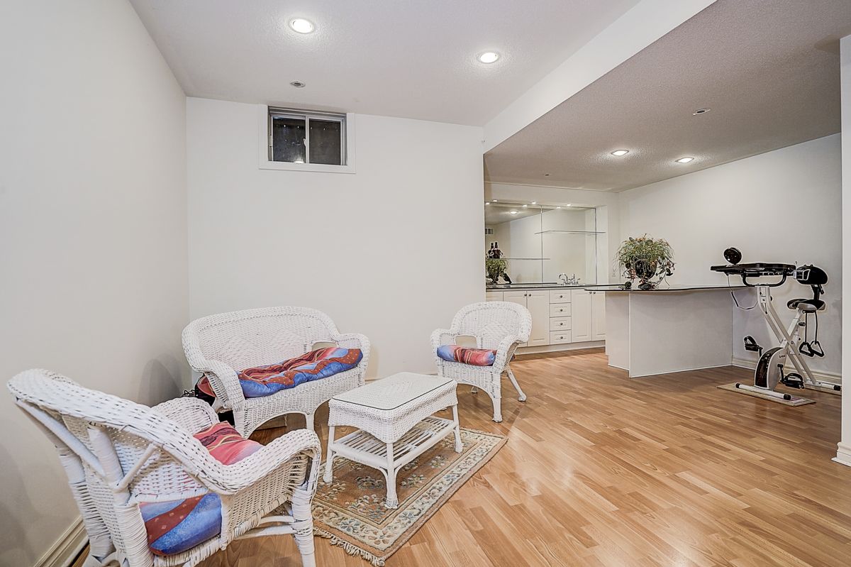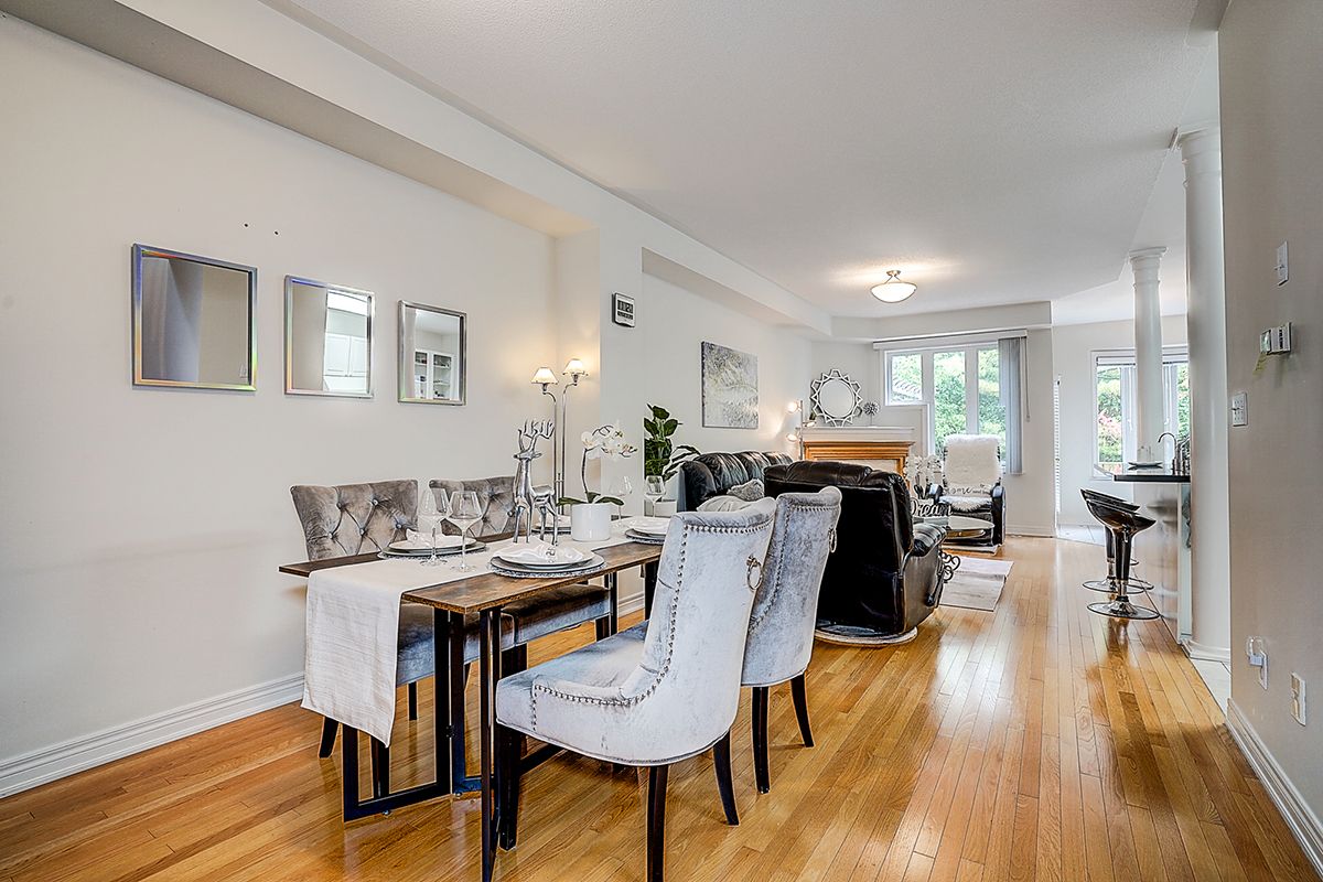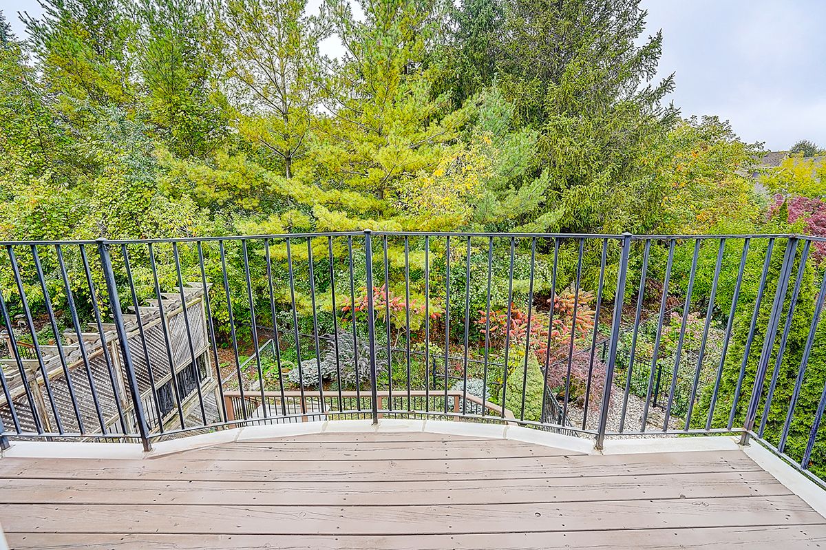 Welcome to 2305 woodfield rd, an exceptional residence nestled in one of oakville's most prestigious neighbourhoods - woodhaven estates. Surrounded by the scenic beauty of lions valley park, sixteen mile creek & endless walking trails. This absolutely stunning well maintained double cars garage freehold townhouse back to breathtaking treed views green belt. Filled with large windows and skylight that allow plenty of natural light to flow in. French double doors 10' ceilings foyer. Main floor 9' ceilings, hardwood floor thur out, the gourmet kitchen with a large center island with breakfast seating and abundant cabinetry. Bay window breakfast area offers views of the backyard and walk-out access to a private deck, ideal for morning coffee or al fresco dining. Upstairs potlights thru out, double doors primary bedroom with a walk-out balcony and new screen door. Additional air conditioner in 2nd bedroom. Approximately 9' ft ceilings basement with large window, potlights thru-out, professionally finished extends your living space with a huge recreation room & wet bar. Minutes from top-rated schools, oakville hospital, highways, and all amenities you need. Hot water tank owned.
