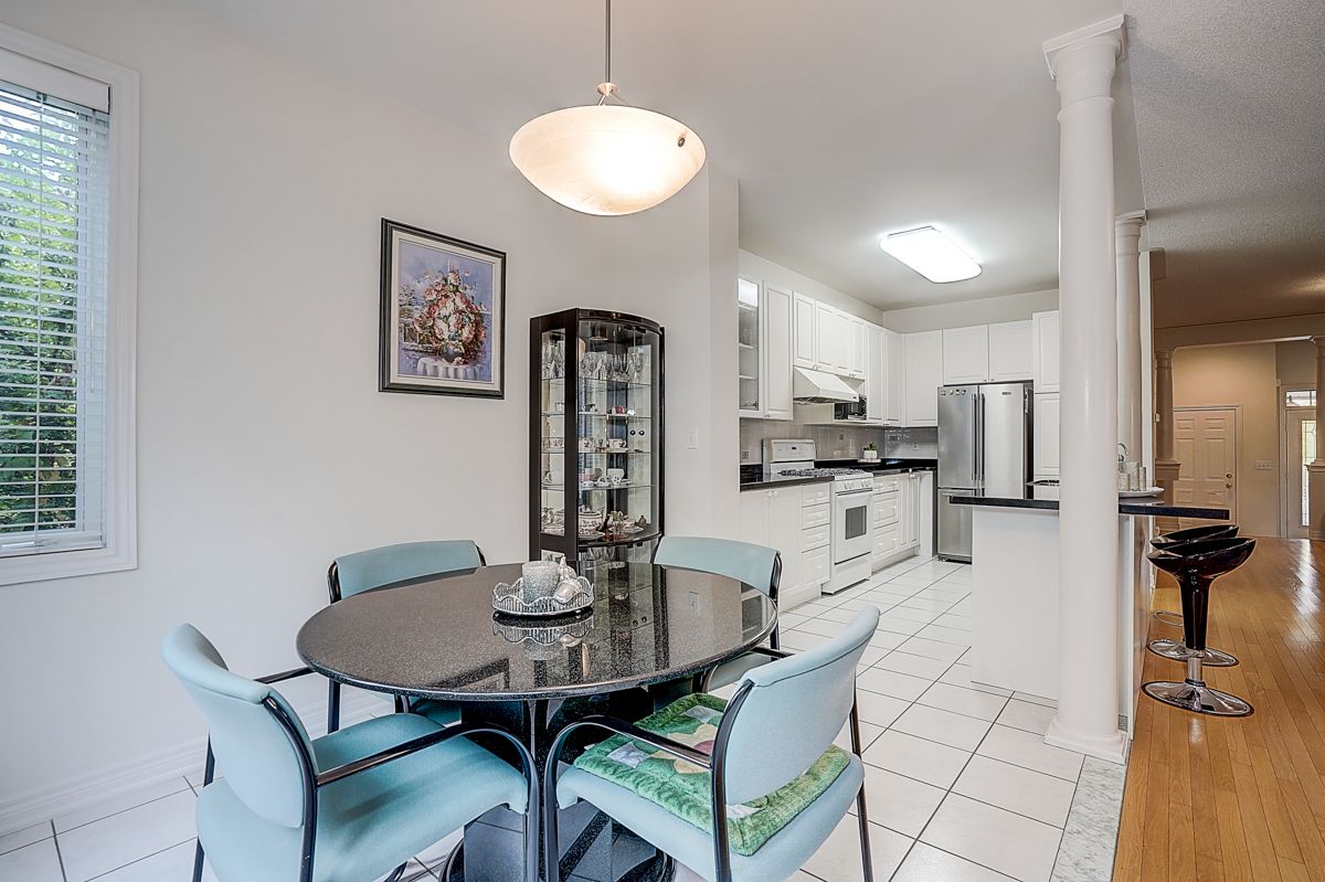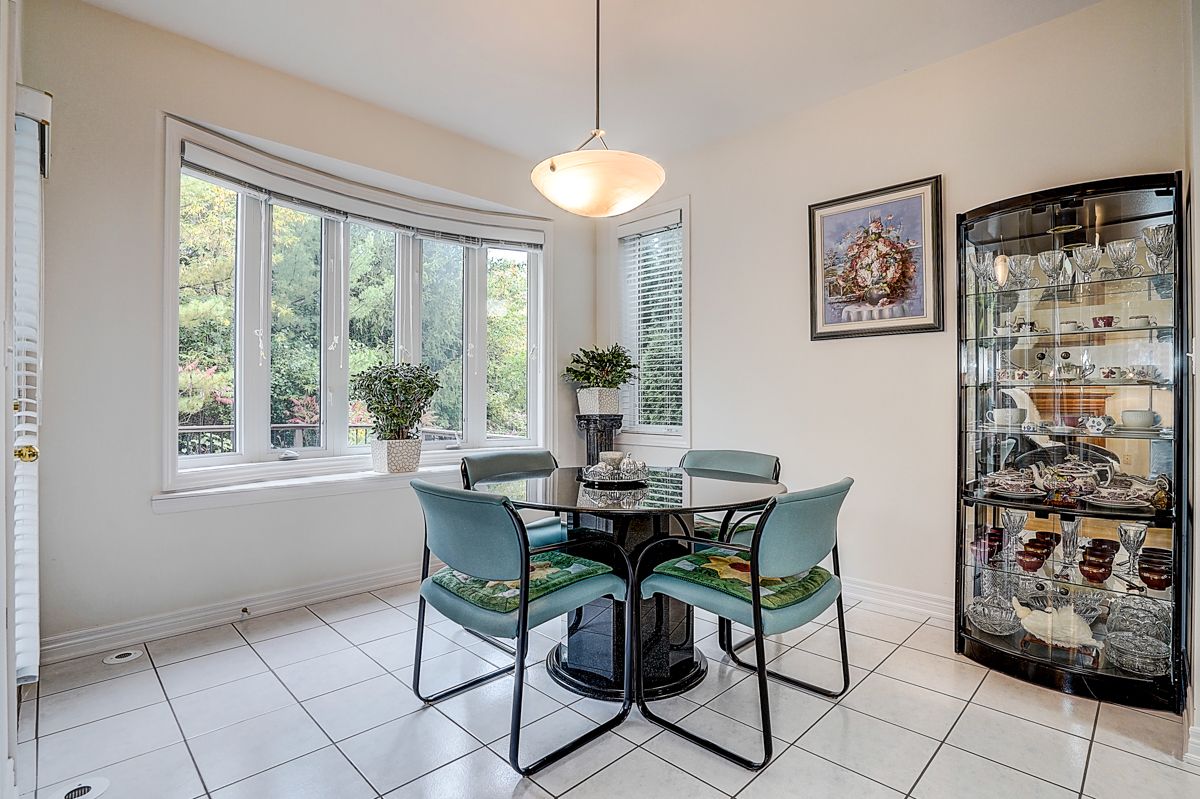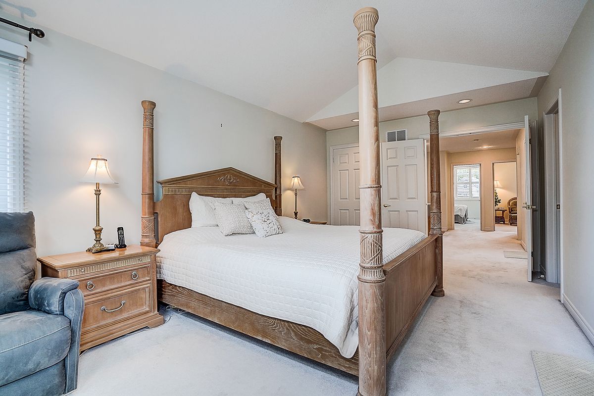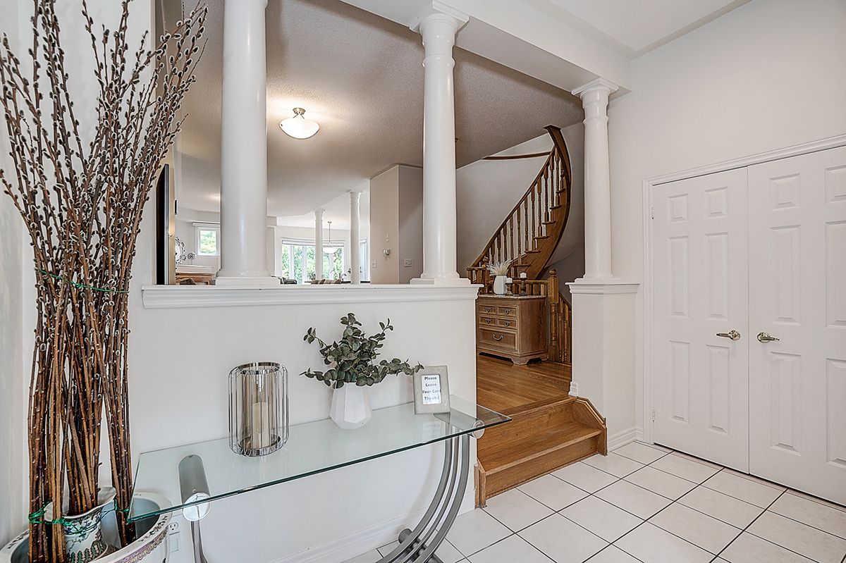 Welcome to 2305 woodfield rd, an exceptional residence nestled in one of oakville's most prestigious neighbourhoods - woodhaven estates. Surrounded by the scenic beauty of lions valley park, sixteen mile creek & endless walking trails. This absolutely stunning well maintained double cars garage freehold townhouse back to breathtaking treed views green belt. Filled with large windows and skylight that allow plenty of natural light to flow in. French double doors 10' ceilings foyer. Main floor 9' ceilings, hardwood floor thur out, the gourmet kitchen with a large center island with breakfast seating and abundant cabinetry. Bay window breakfast area offers views of the backyard and walk-out access to a private deck, ideal for morning coffee or al fresco dining. Upstairs potlights thru out, double doors primary bedroom with a walk-out balcony and new screen door. Additional air conditioner in 2nd bedroom. Approximately 9' ft ceilings basement with large window, potlights thru-out, professionally finished extends your living space with a huge recreation room & wet bar. Minutes from top-rated schools, oakville hospital, highways, and all amenities you need. Hot water tank owned.