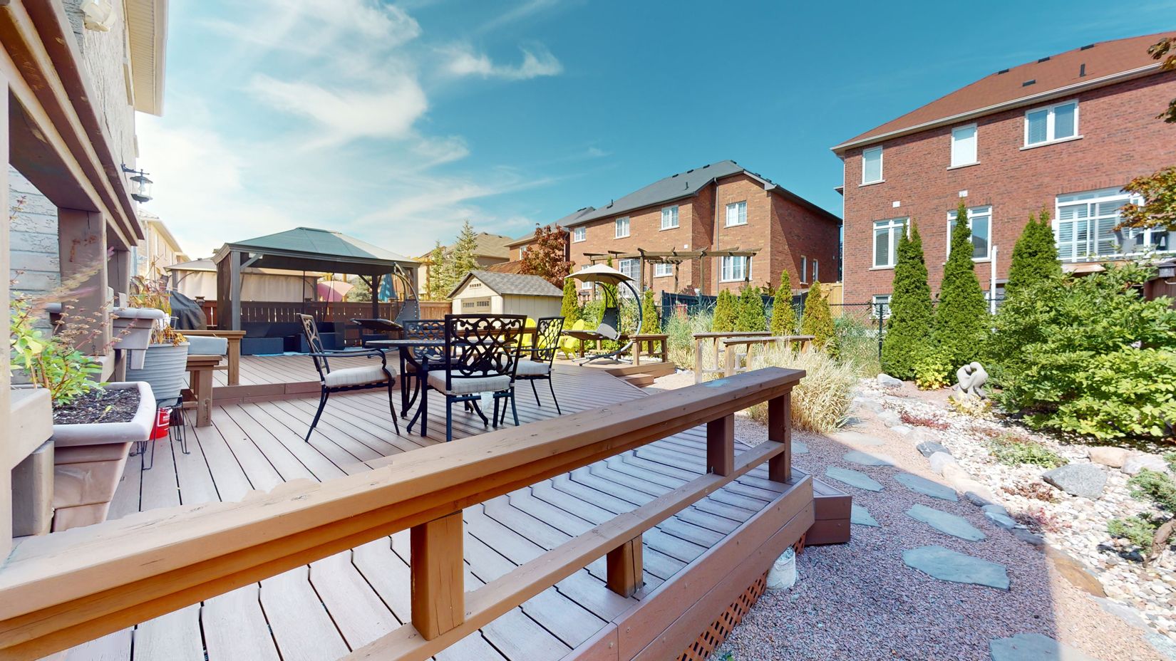 • Beautiful backyard featuring a huge composite deck and gazebo.