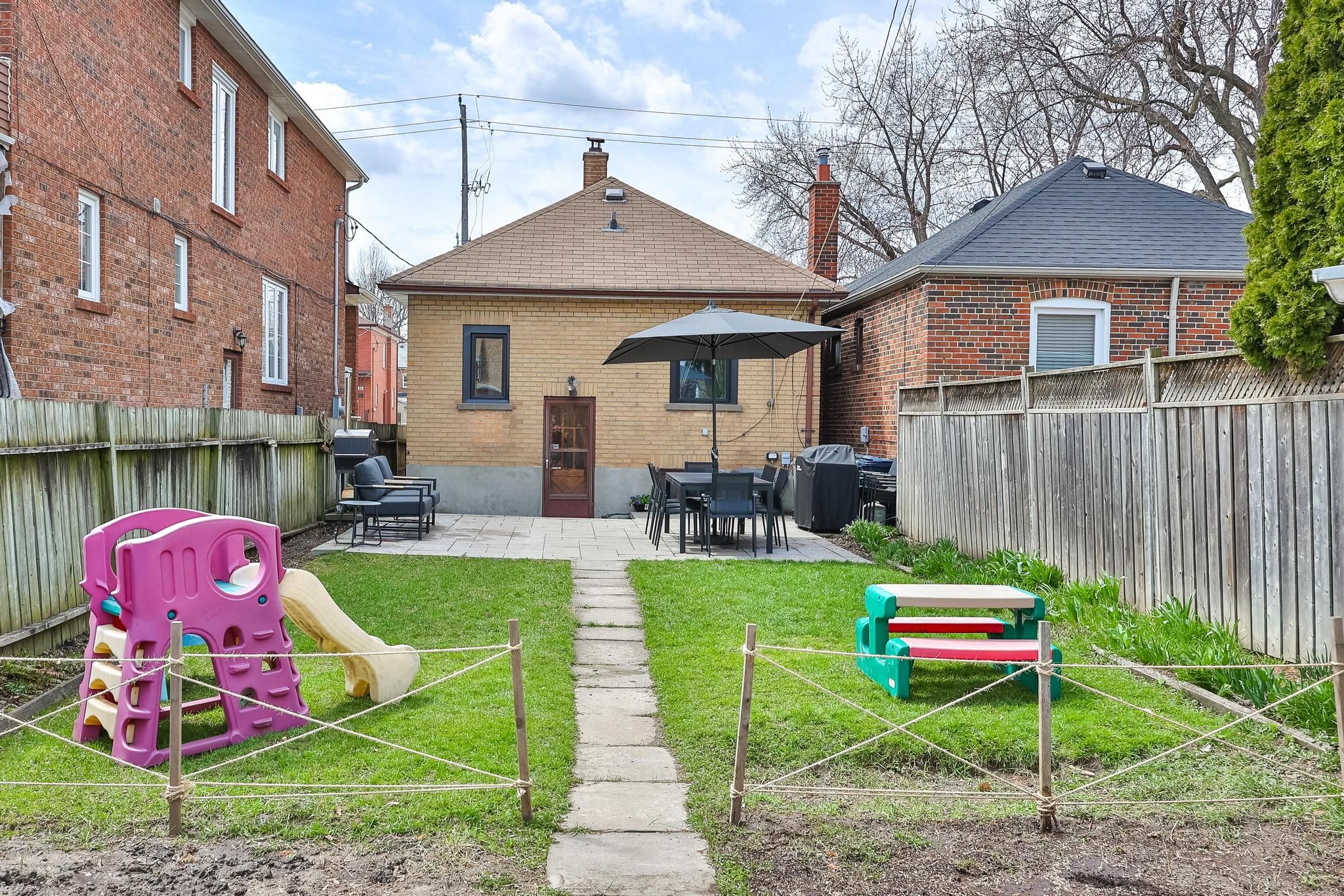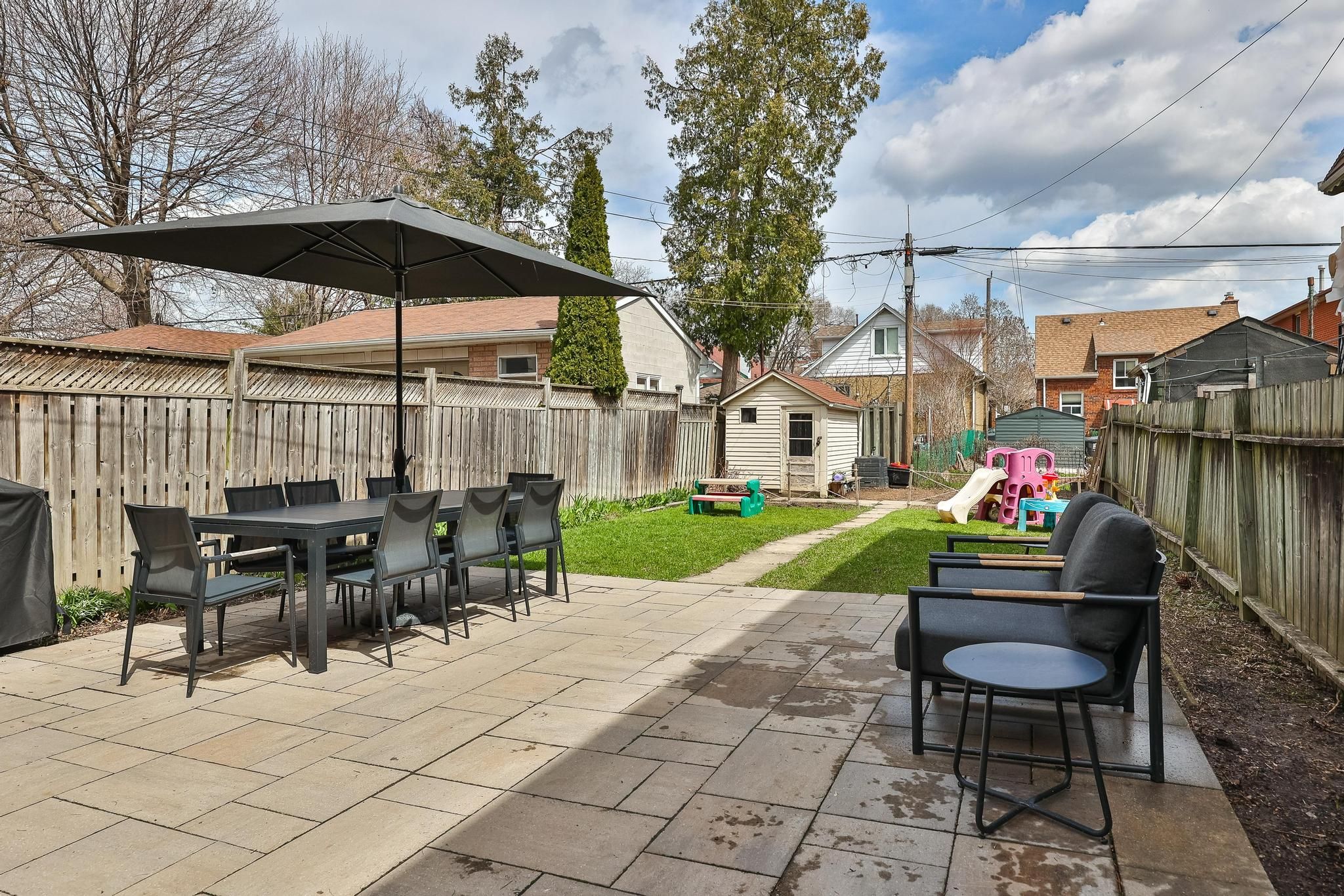 • Private backyard with a patio, perfect for entertaining or relaxing.