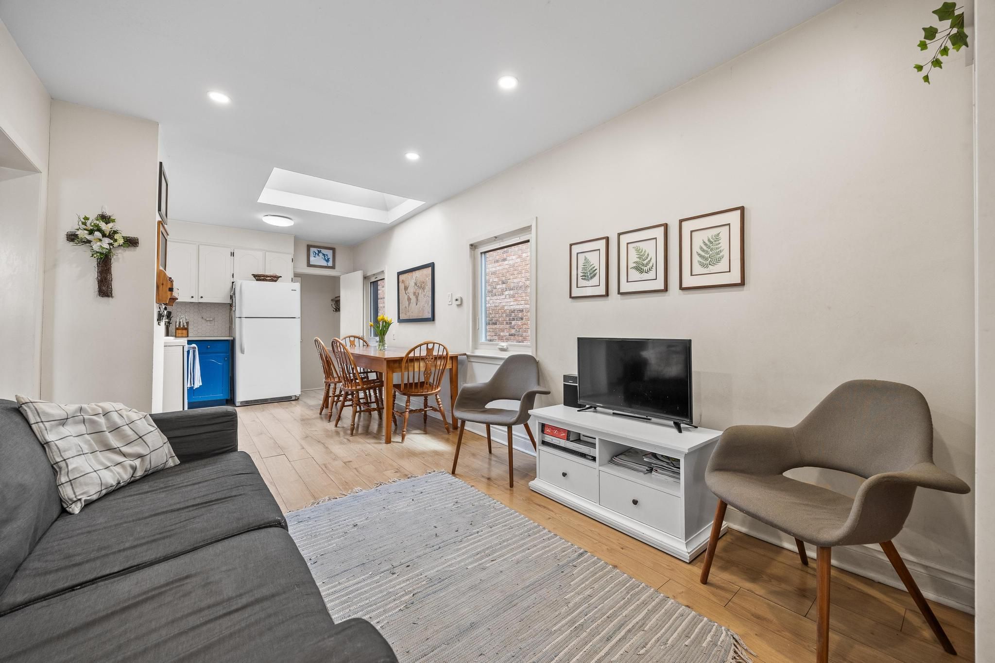 • Open-concept living area with a skylight for plenty of natural light.