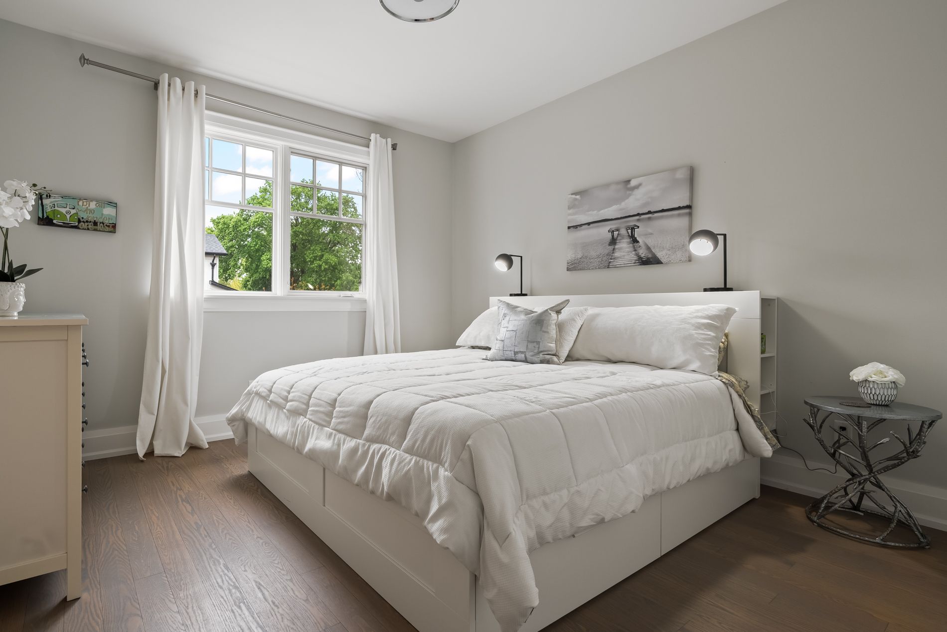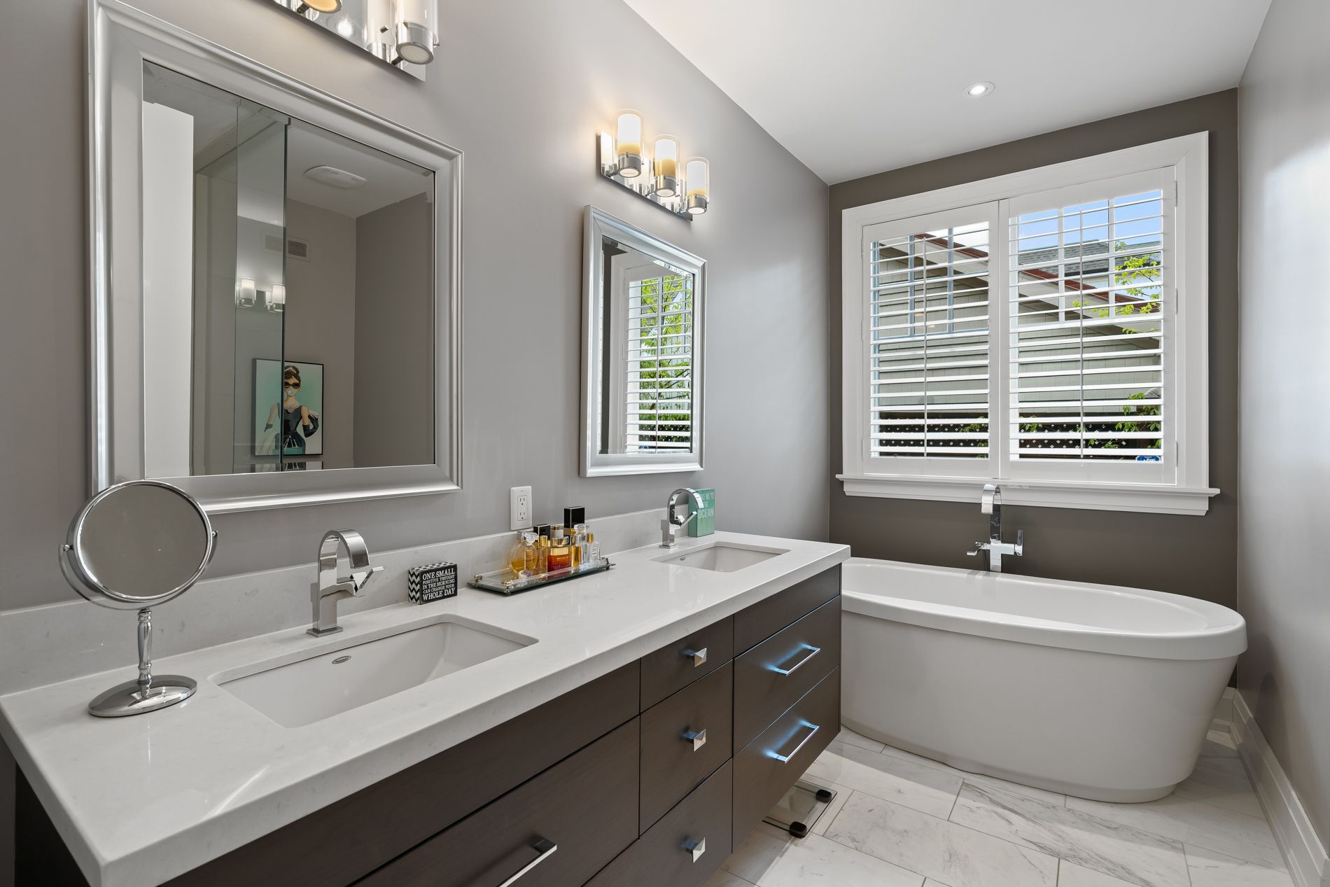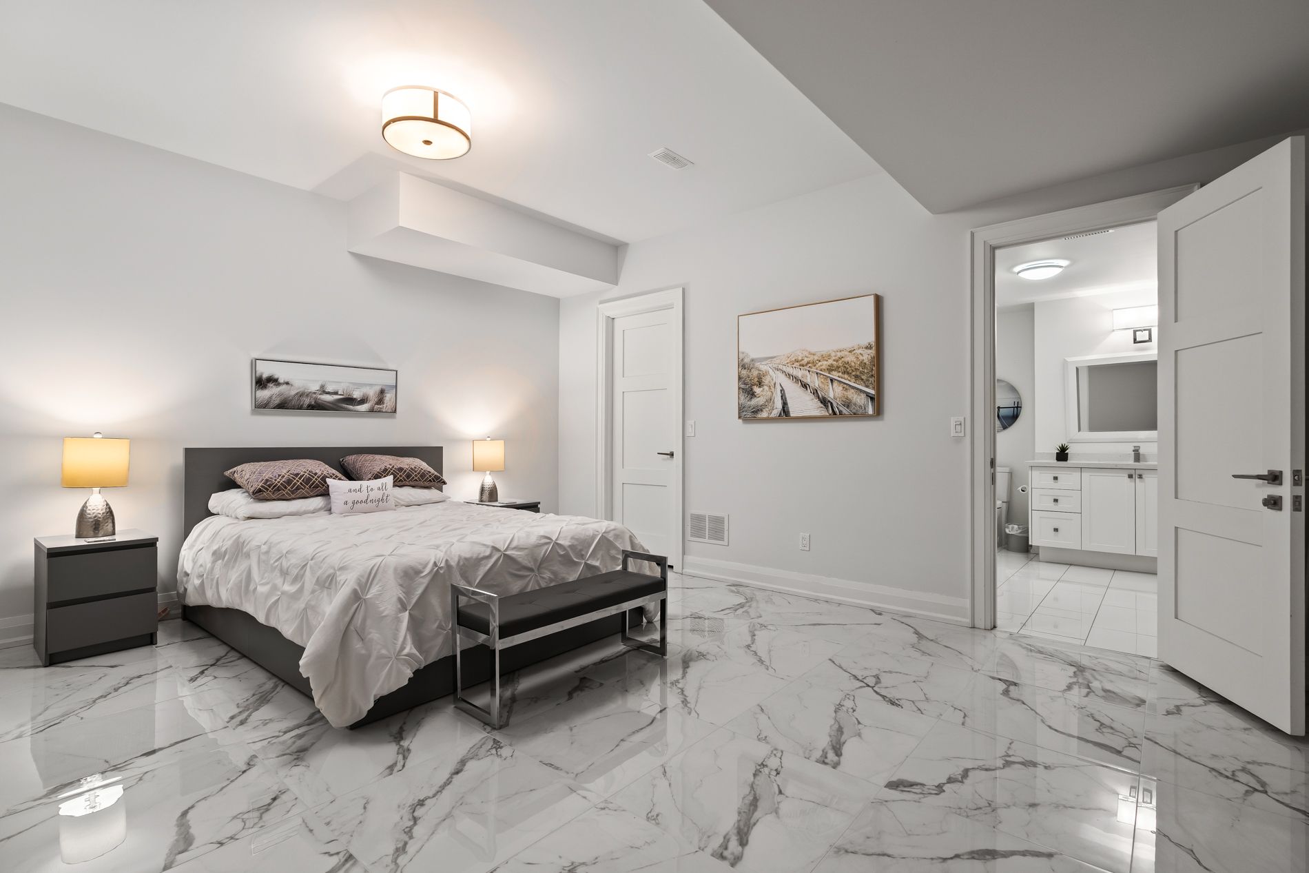• Luxurious primary bedroom retreat with direct access to the landscaped backyard.