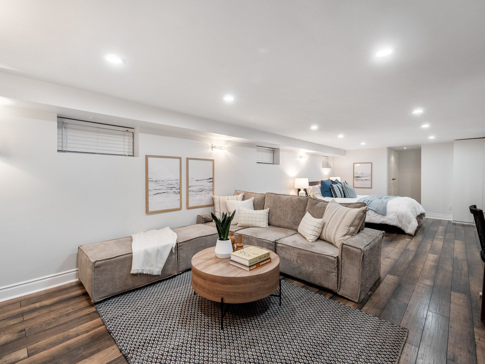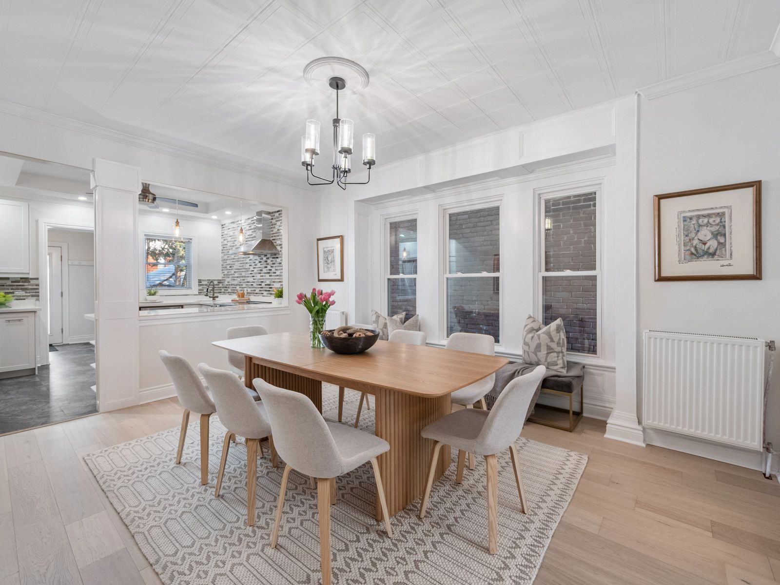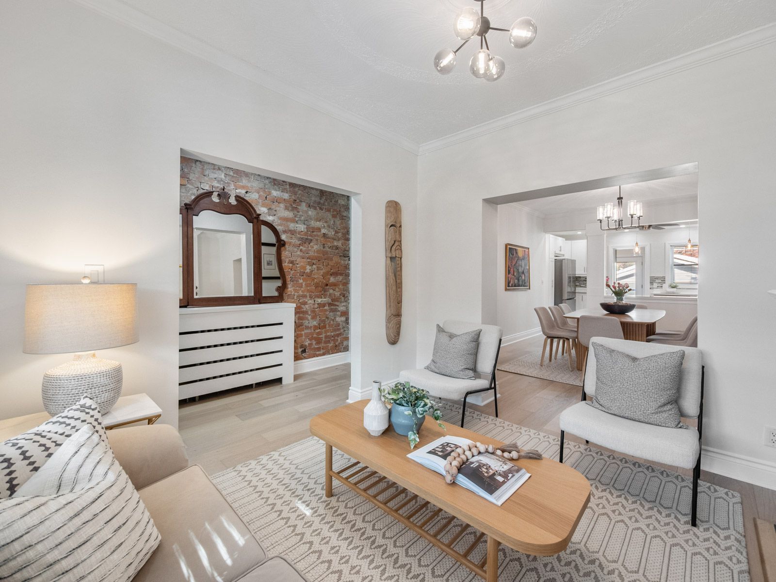 Timeless character meets thoughtful modern living in this beautifully renovated 2. 5 storey home in the heart of the junction. Built in 1910 and offering nearly 2600 square feet of living space, this exceptional residence blends original charm with stylish updates, creating a warm and inviting home designed for modern family life. Inside, original details have been carefully preserved and enhanced. New white oak hardwood floors and a striking exposed red brick feature wall add warmth and architectural character throughout. The open concept main floor is bright and welcoming, anchored by a modern kitchen with new stainless steel appliances and effortless flow into the spacious living and oversized dining areas, perfect for everyday living and entertaining. The second floor offers exceptional space and versatility, featuring a large bedroom at the front of the home with a bay window and custom built in closets, a spacious middle bedroom, and a flexible fourth room ideal as an additional bedroom, home office, or den. A well appointed family bathroom completes the level. The third floor is dedicated entirely to an extraordinary primary retreat spanning approximately 600 sqft. This private sanctuary features a comfortable sitting area, an ensuite bathroom, and an enormous walk in closet, creating a true escape within the home. The lower level provides additional open concept living space currently set up as a bachelor style suite with a bedroom area, living space, three piece bathroom, and a rear kitchenette that can easily function as laundry or additional kitchen space, with direct access to the backyard, currently covered, for added flexibility. Outside, professionally landscaped front and back yards create beautiful spaces to relax and entertain. Enjoy morning coffee on the covered front porch while watching the neighbourhood go by, or host unforgettable summer gatherings with a built in outdoor kitchen and bbq area at the rear. A 1. 5 car garage is accessed from laneway.
