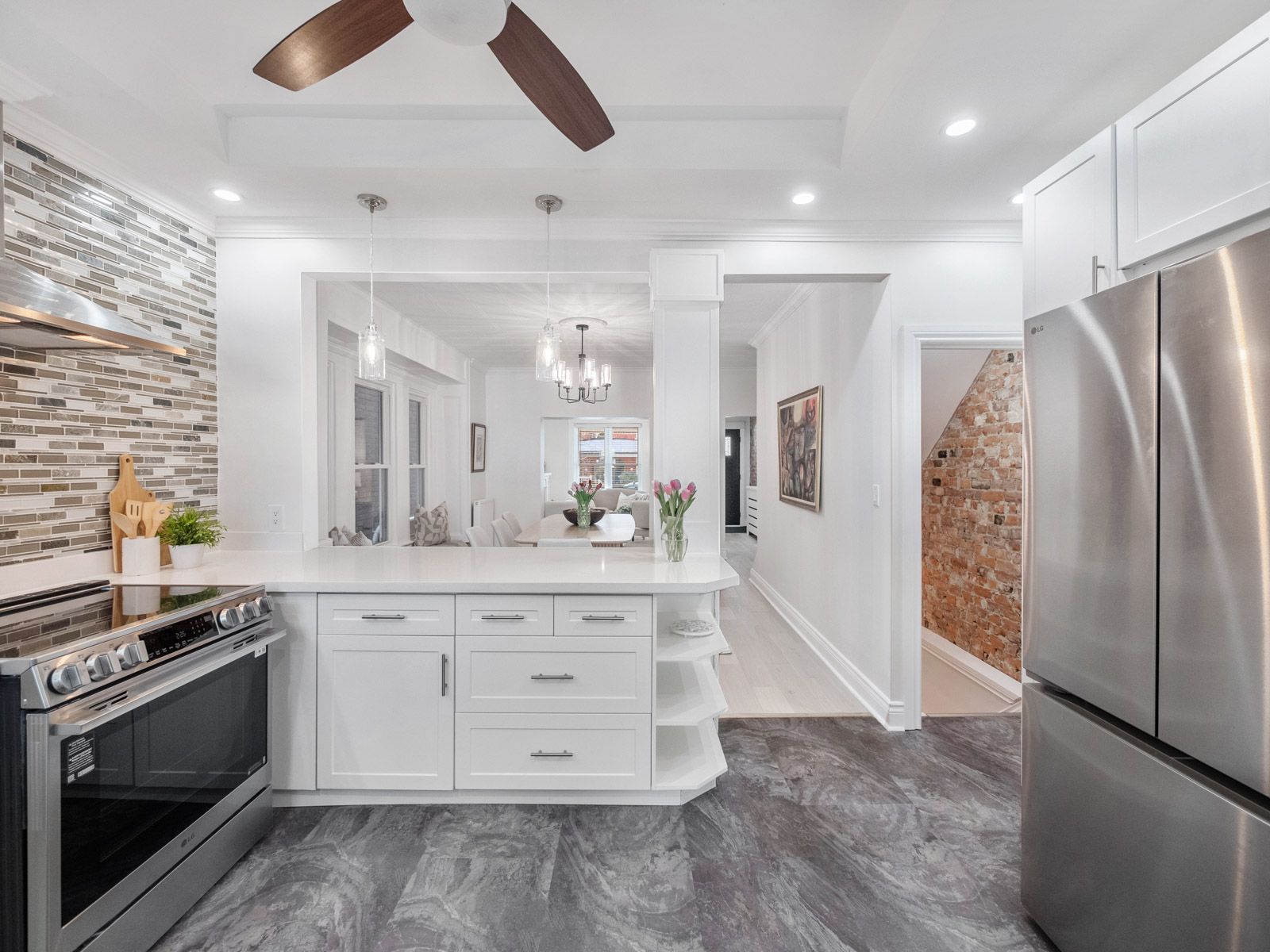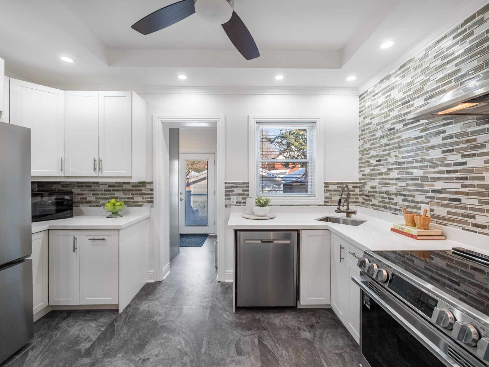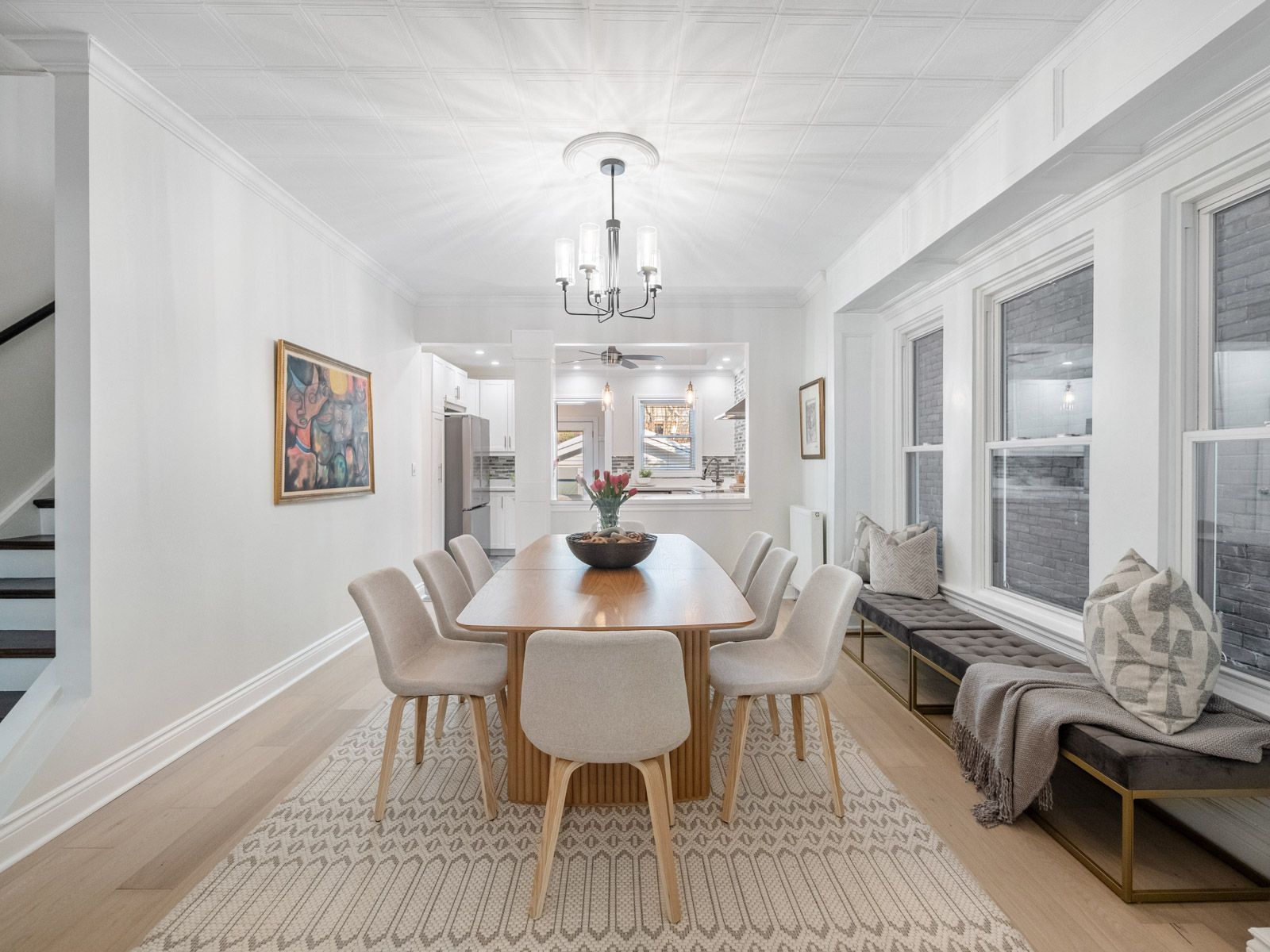 Timeless character meets thoughtful modern living in this beautifully renovated 2. 5 storey home in the heart of the junction. Built in 1910 and offering nearly 2600 square feet of living space, this exceptional residence blends original charm with stylish updates, creating a warm and inviting home designed for modern family life. Inside, original details have been carefully preserved and enhanced. New white oak hardwood floors and a striking exposed red brick feature wall add warmth and architectural character throughout. The open concept main floor is bright and welcoming, anchored by a modern kitchen with new stainless steel appliances and effortless flow into the spacious living and oversized dining areas, perfect for everyday living and entertaining. The second floor offers exceptional space and versatility, featuring a large bedroom at the front of the home with a bay window and custom built in closets, a spacious middle bedroom, and a flexible fourth room ideal as an additional bedroom, home office, or den. A well appointed family bathroom completes the level. The third floor is dedicated entirely to an extraordinary primary retreat spanning approximately 600 sqft. This private sanctuary features a comfortable sitting area, an ensuite bathroom, and an enormous walk in closet, creating a true escape within the home. The lower level provides additional open concept living space currently set up as a bachelor style suite with a bedroom area, living space, three piece bathroom, and a rear kitchenette that can easily function as laundry or additional kitchen space, with direct access to the backyard, currently covered, for added flexibility. Outside, professionally landscaped front and back yards create beautiful spaces to relax and entertain. Enjoy morning coffee on the covered front porch while watching the neighbourhood go by, or host unforgettable summer gatherings with a built in outdoor kitchen and bbq area at the rear. A 1. 5 car garage is accessed from laneway.