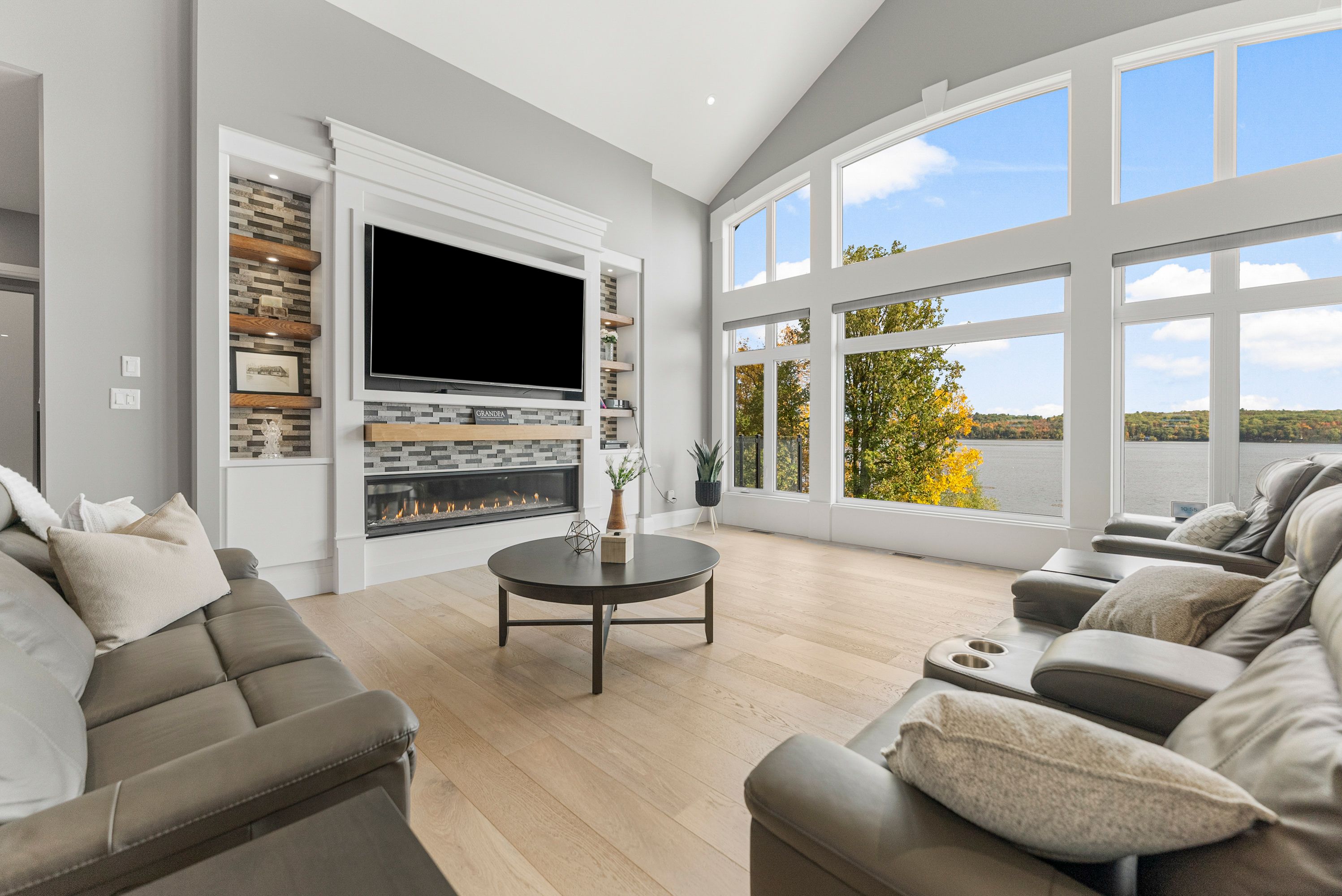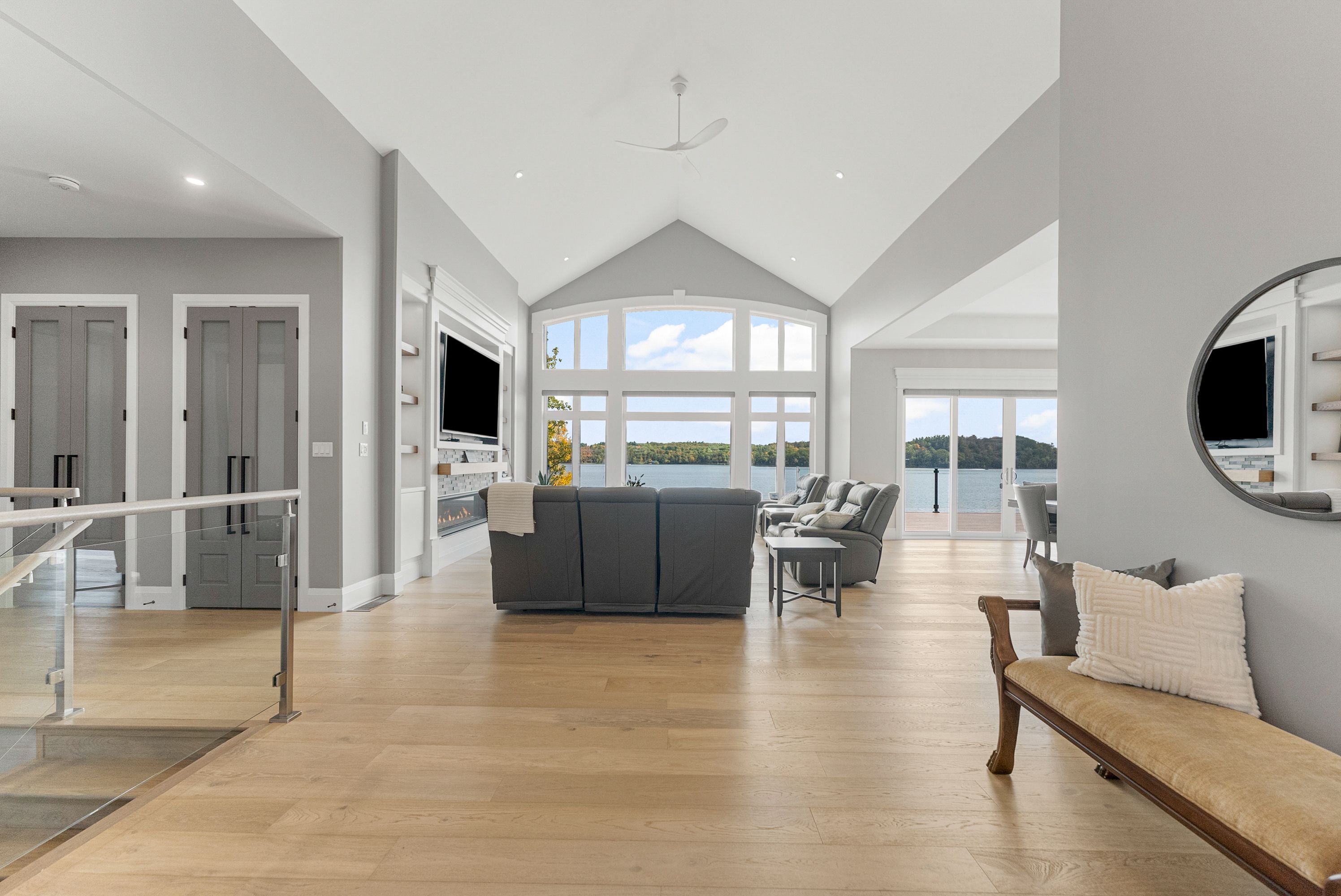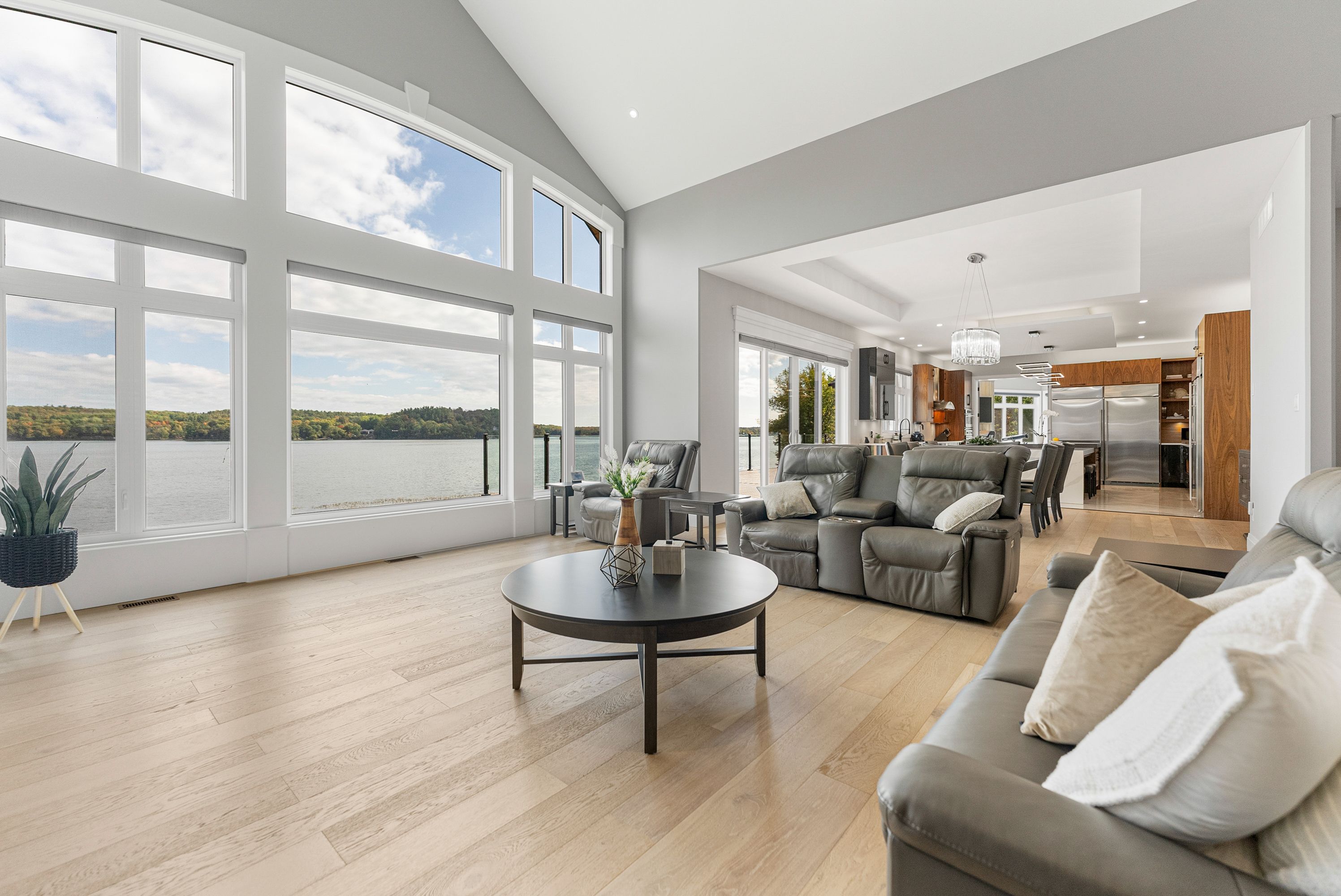 • Custom waterfront home with impressive scale and privacy for comfortable living.