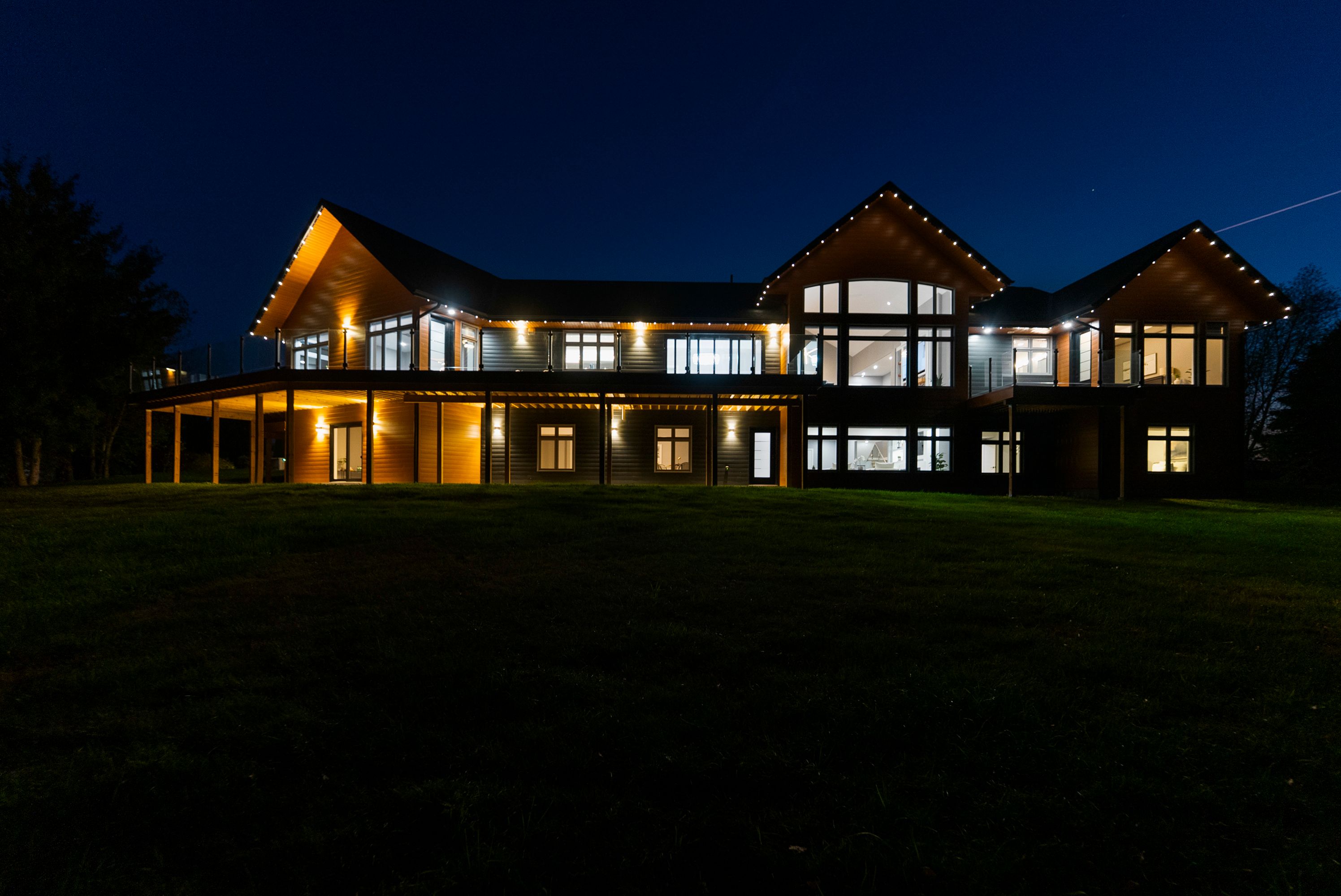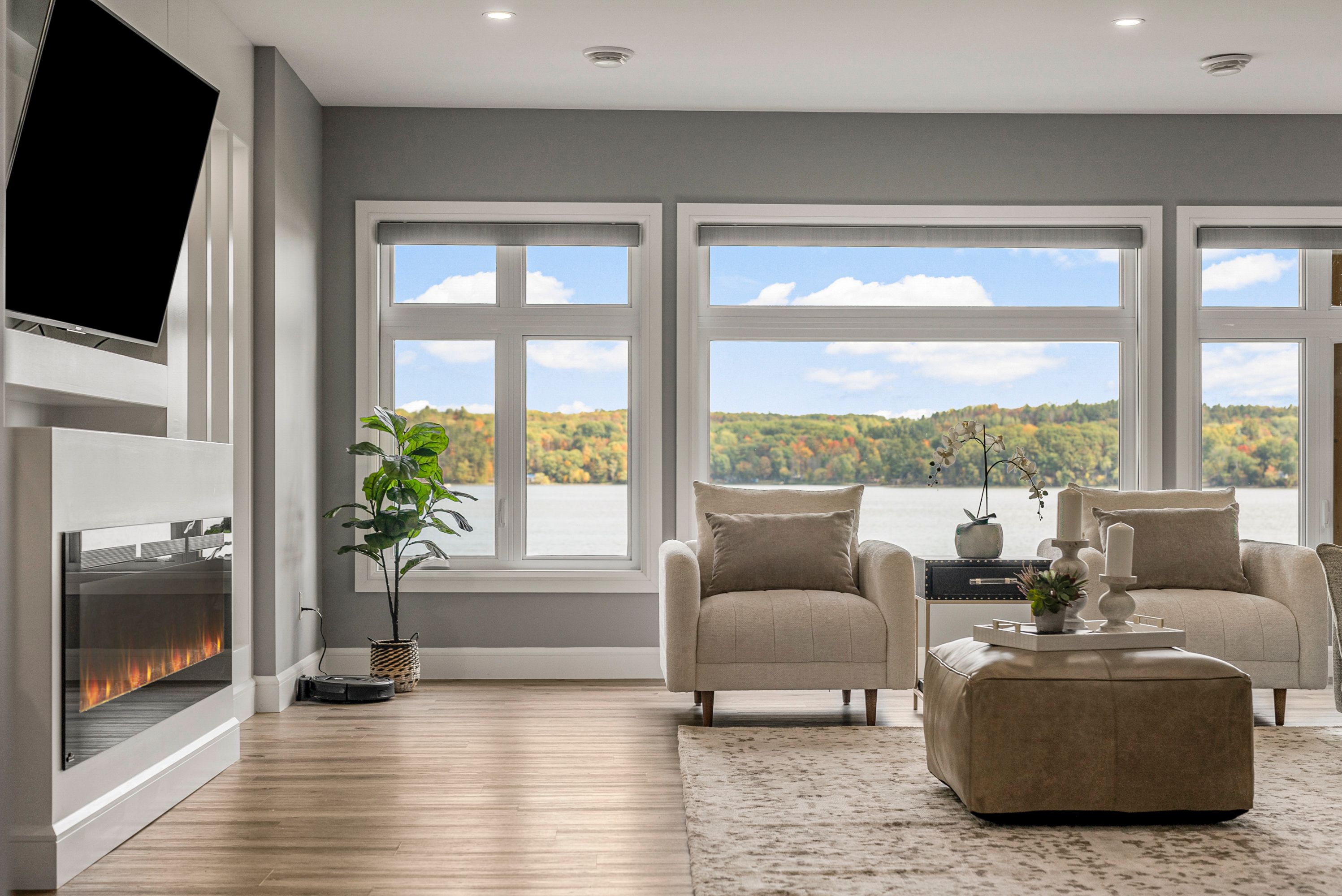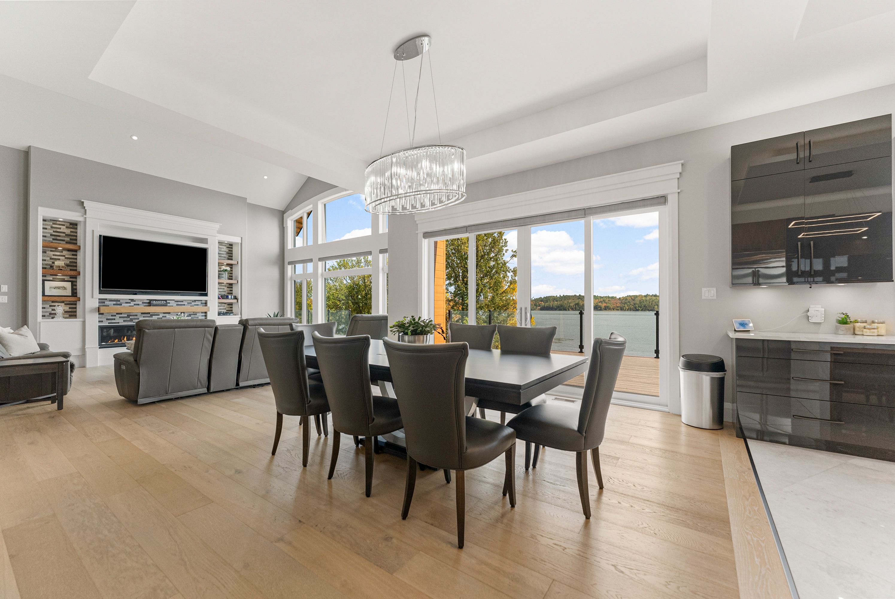 • Custom waterfront home with impressive scale and privacy for comfortable living.