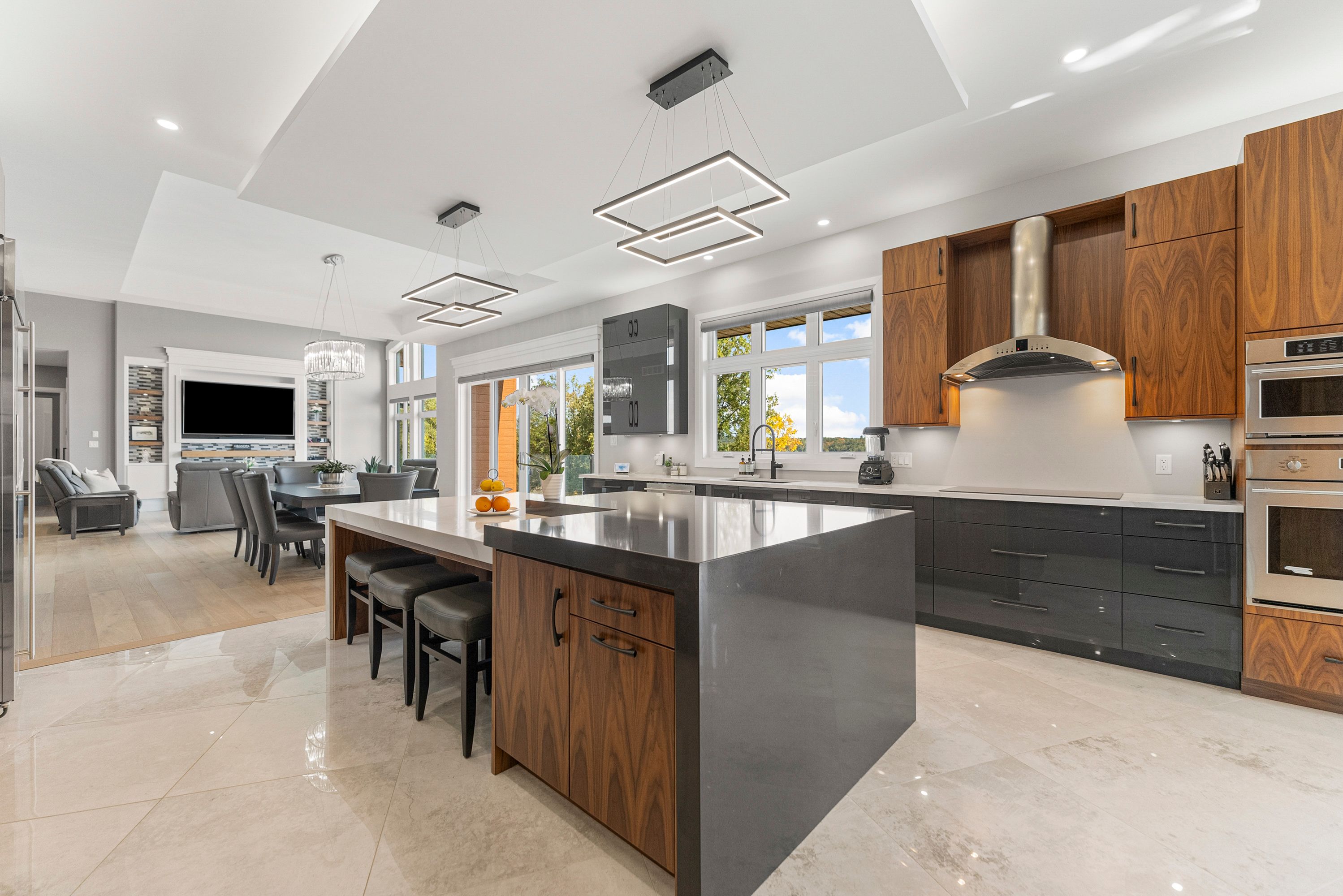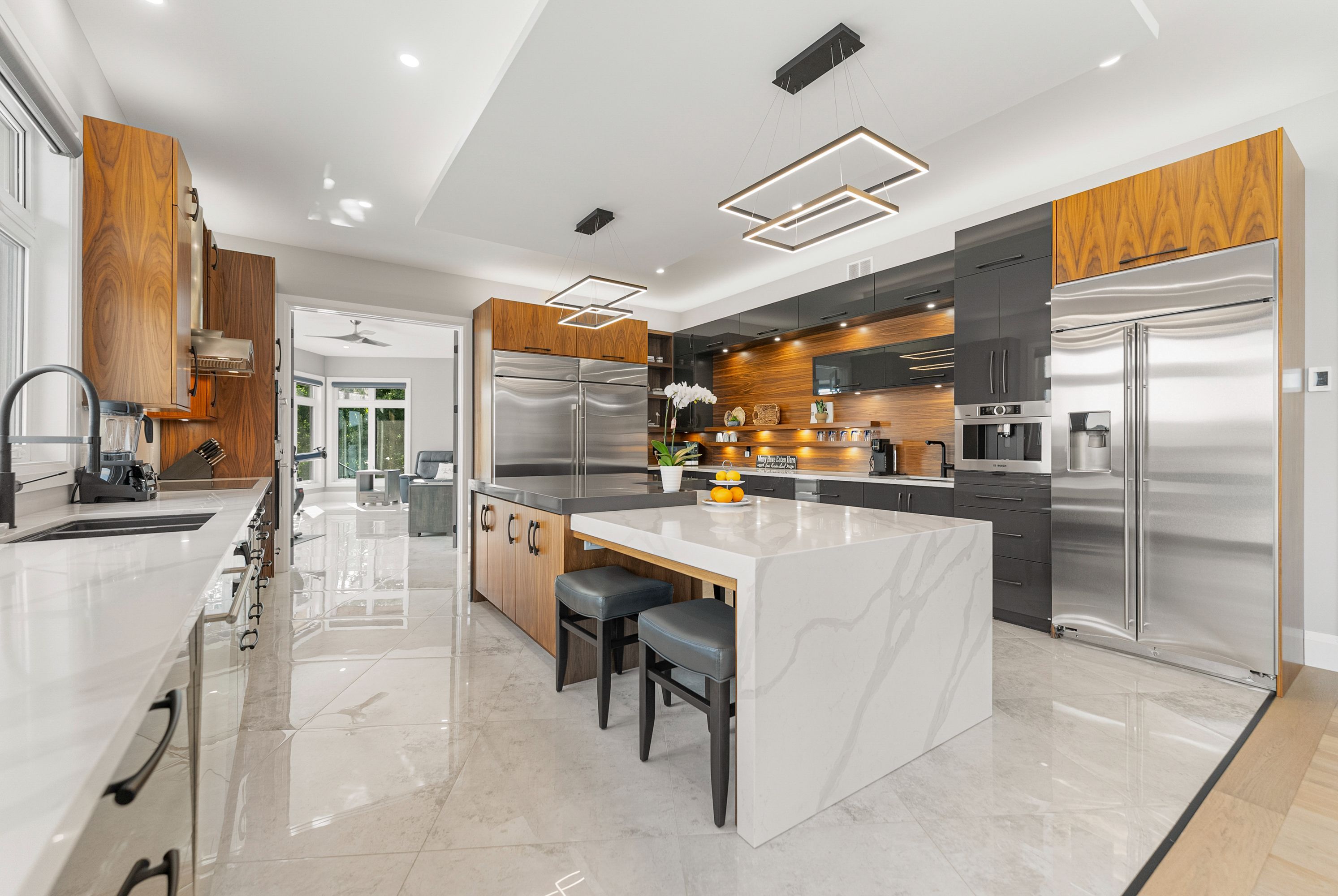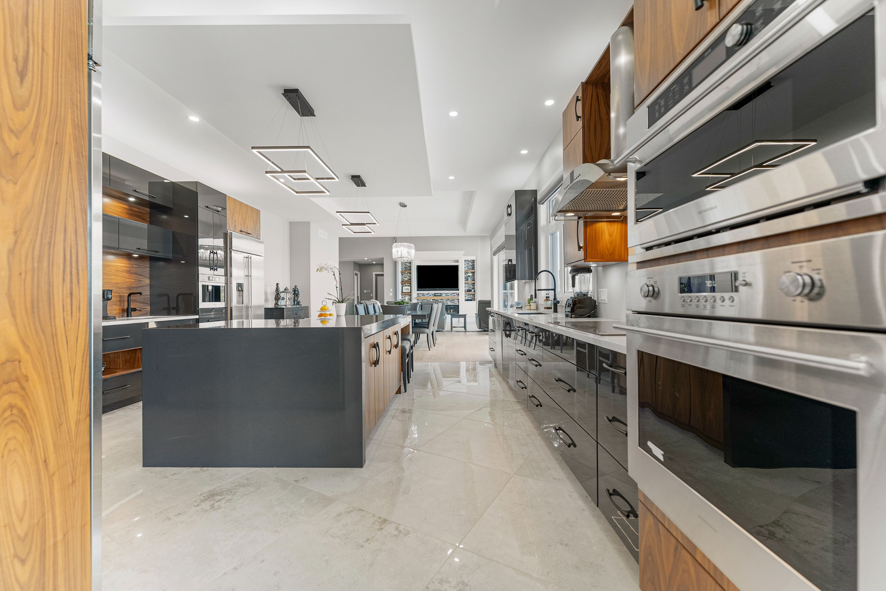 • Modern kitchen with premium appliances and dual-sink layout for cooking efficiency.