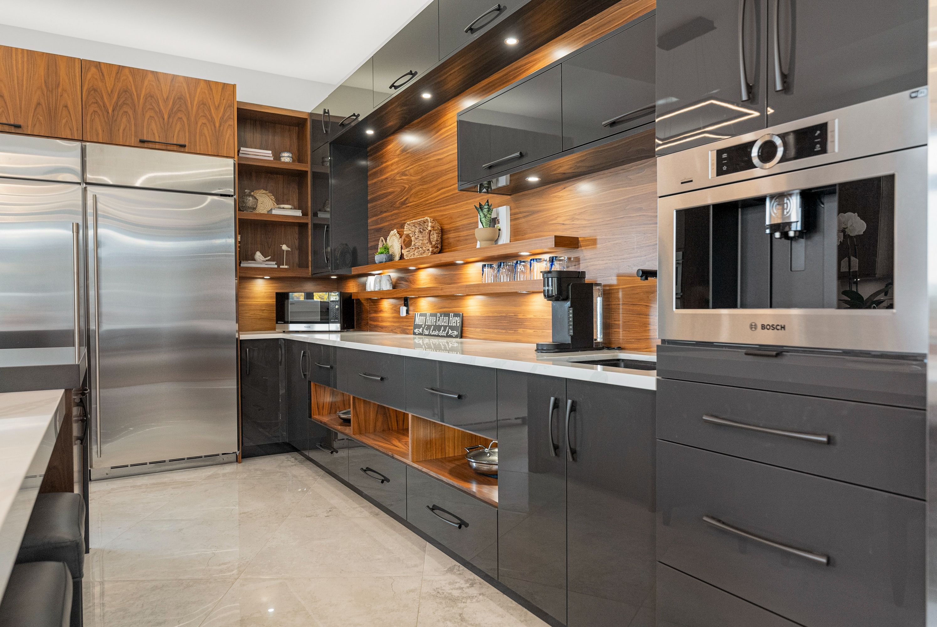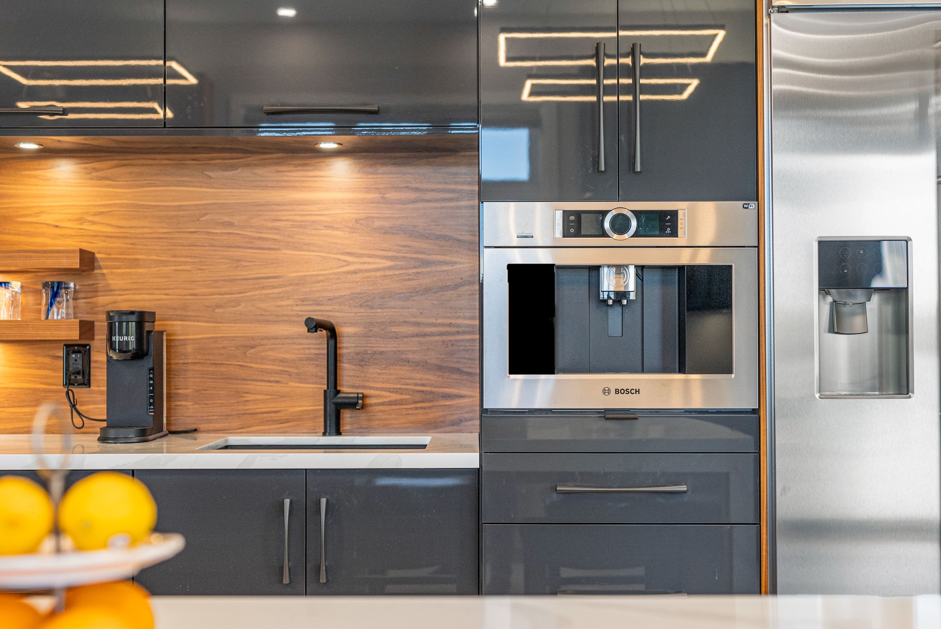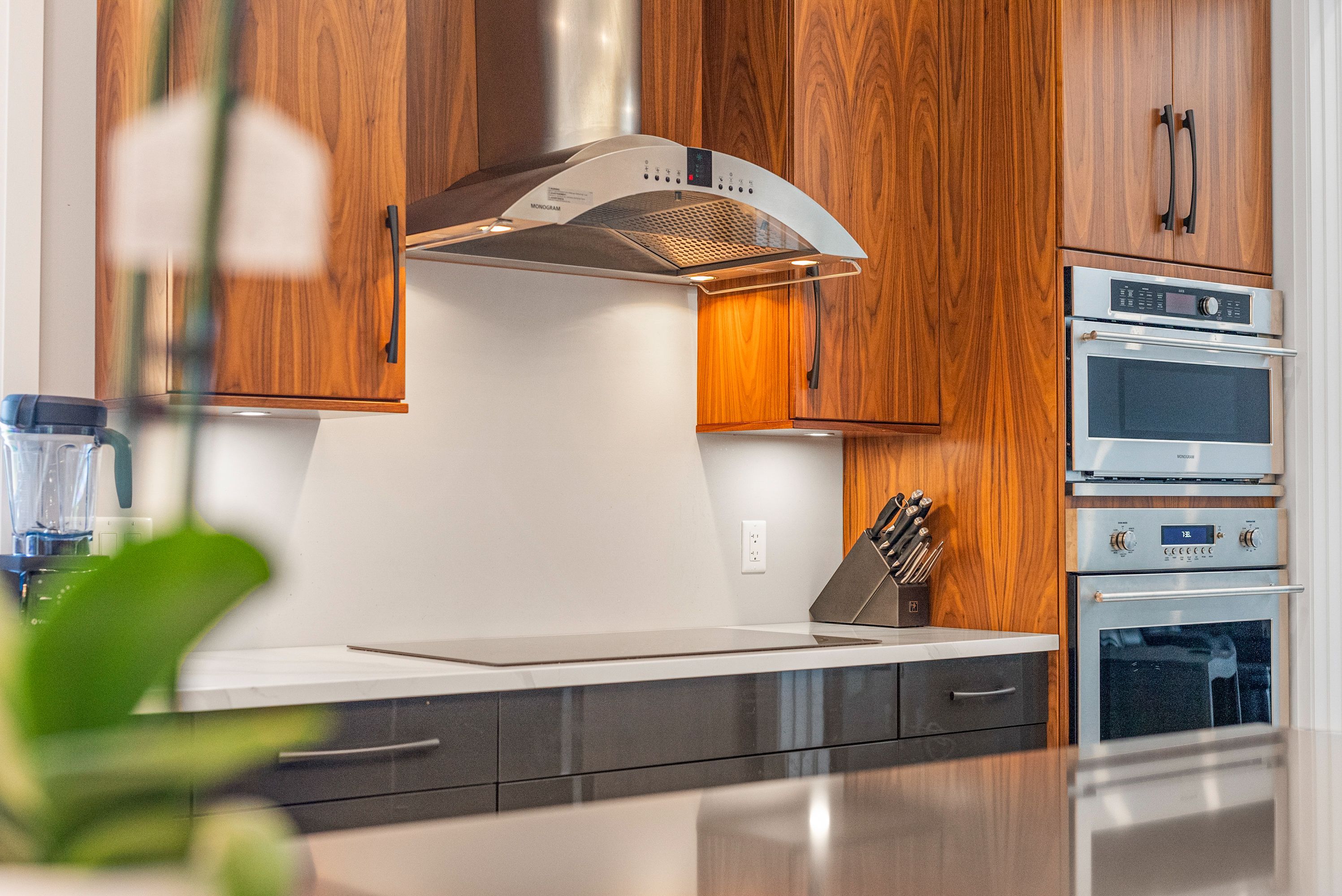 • Modern kitchen with premium appliances and dual-sink layout for cooking efficiency.