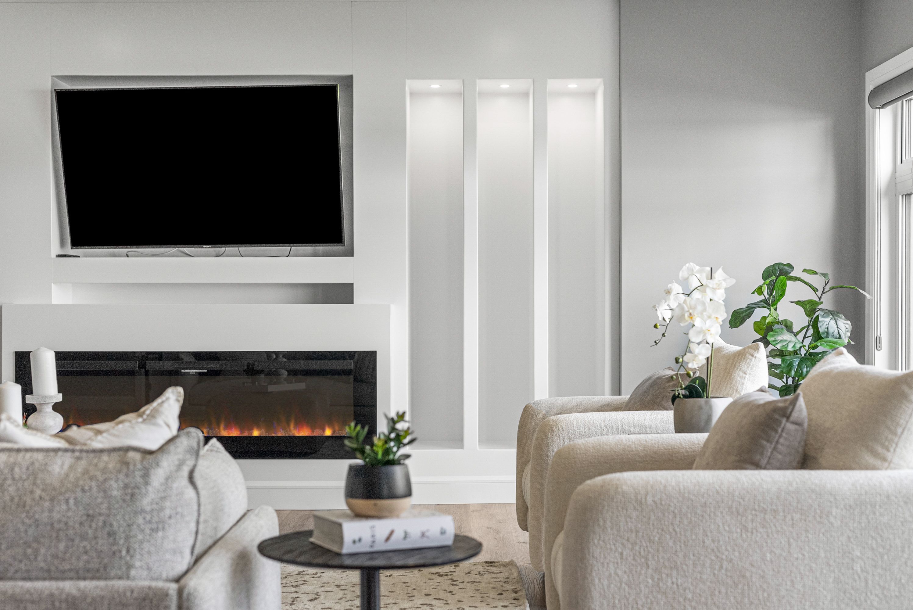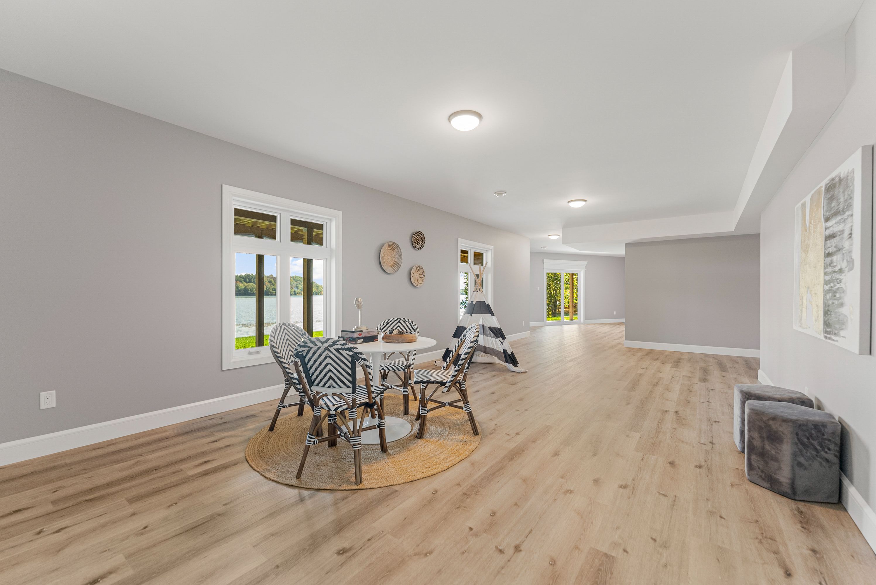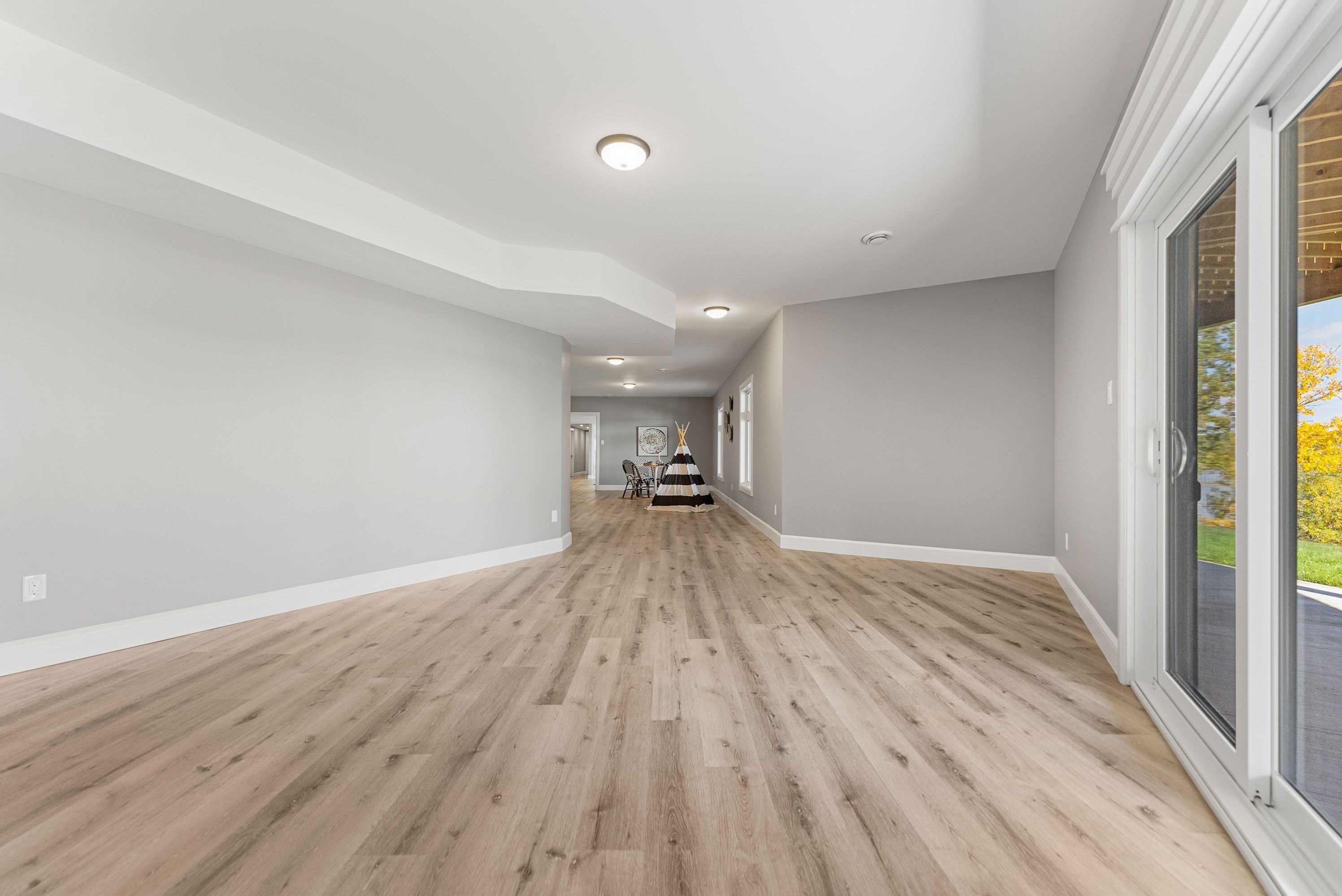 • Spacious triple-bay garage provides ample storage for vehicles and recreational gear.