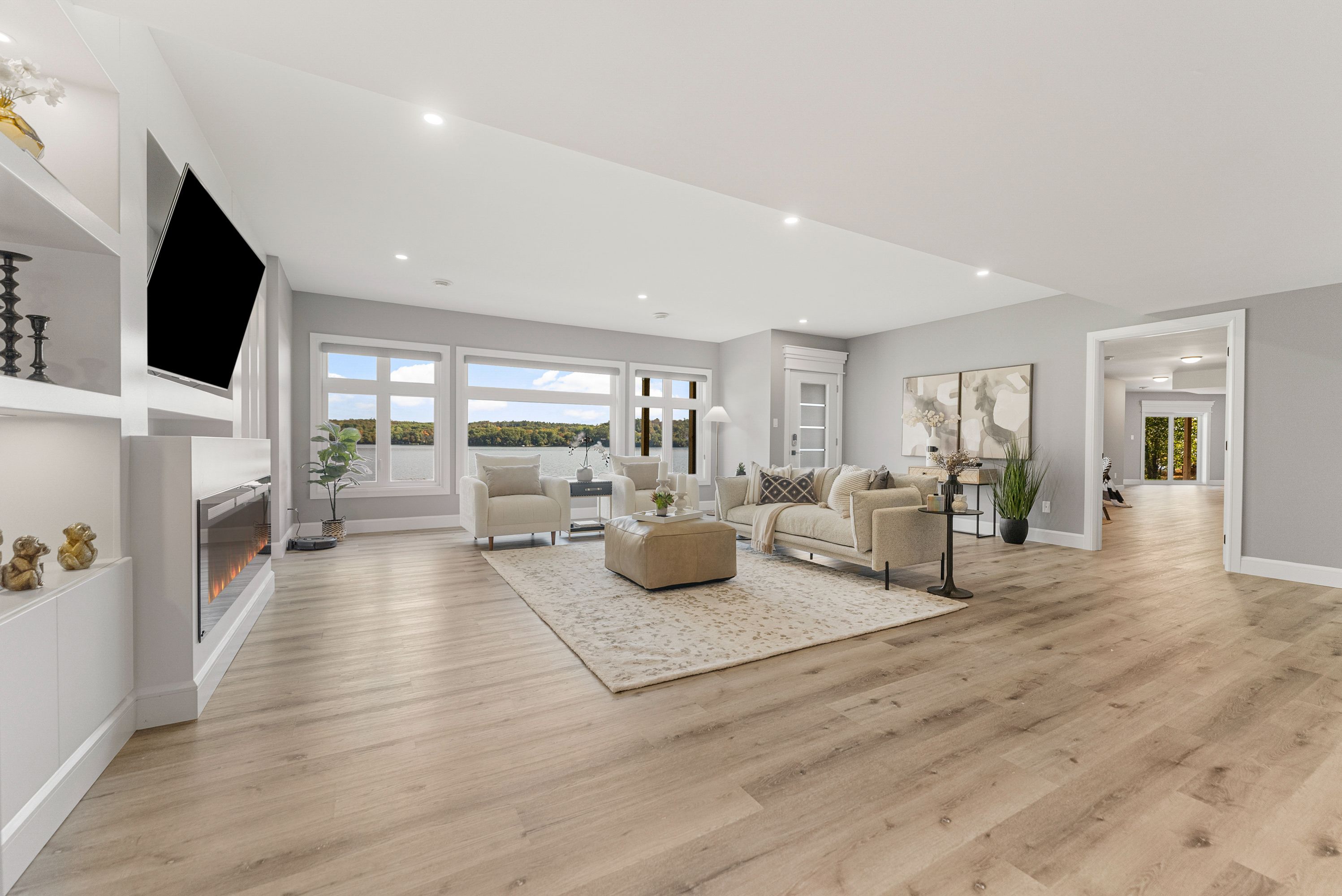Substantial custom waterfront home offering exceptional scale, privacy, and quality. Approximately 2,900 sq ft per level with impressive volume throughout, complemented by a 1,300 sq ft triple-bay garage. Recently installed glow getters exterior lighting enhances curb appeal and creates a striking nighttime presence. Set on west-facing direct waterfront with tranquil water views at the rear and open fields at the front, this property is located on a private road shared with six residences, offering a mature and private setting. The thoughtfully designed kitchen offers a highly functional dual-sink layout and a complete suite of premium integrated appliances, including dual refrigeration and a bosch built-in coffee station. Interior finishes include oversized porcelain tile, engineered hardwood throughout, and triple-pane windows, selected for quality, comfort, and timeless design. A generac generator provides peace of mind. Ideally positioned approximately one hour from ottawa's west end, with convenient access via hwy 17, 25 minutes to renfrew hospital, and 20 minutes to pembroke regional hospital and major shopping. Close to whitewater brewing co., oaks of cobden golf club, beaches, algonquin trail access, and quality local schools. A rare offering combining scale, and lifestyle.