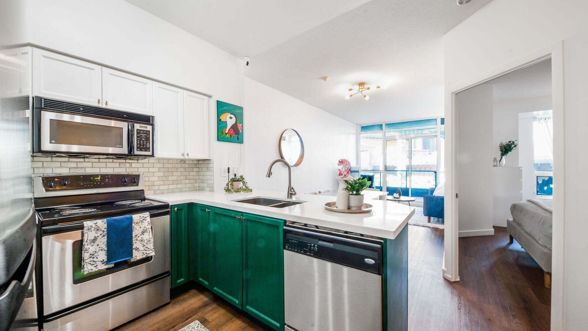 • Bright west-facing suite with natural light and beautiful sunset views.