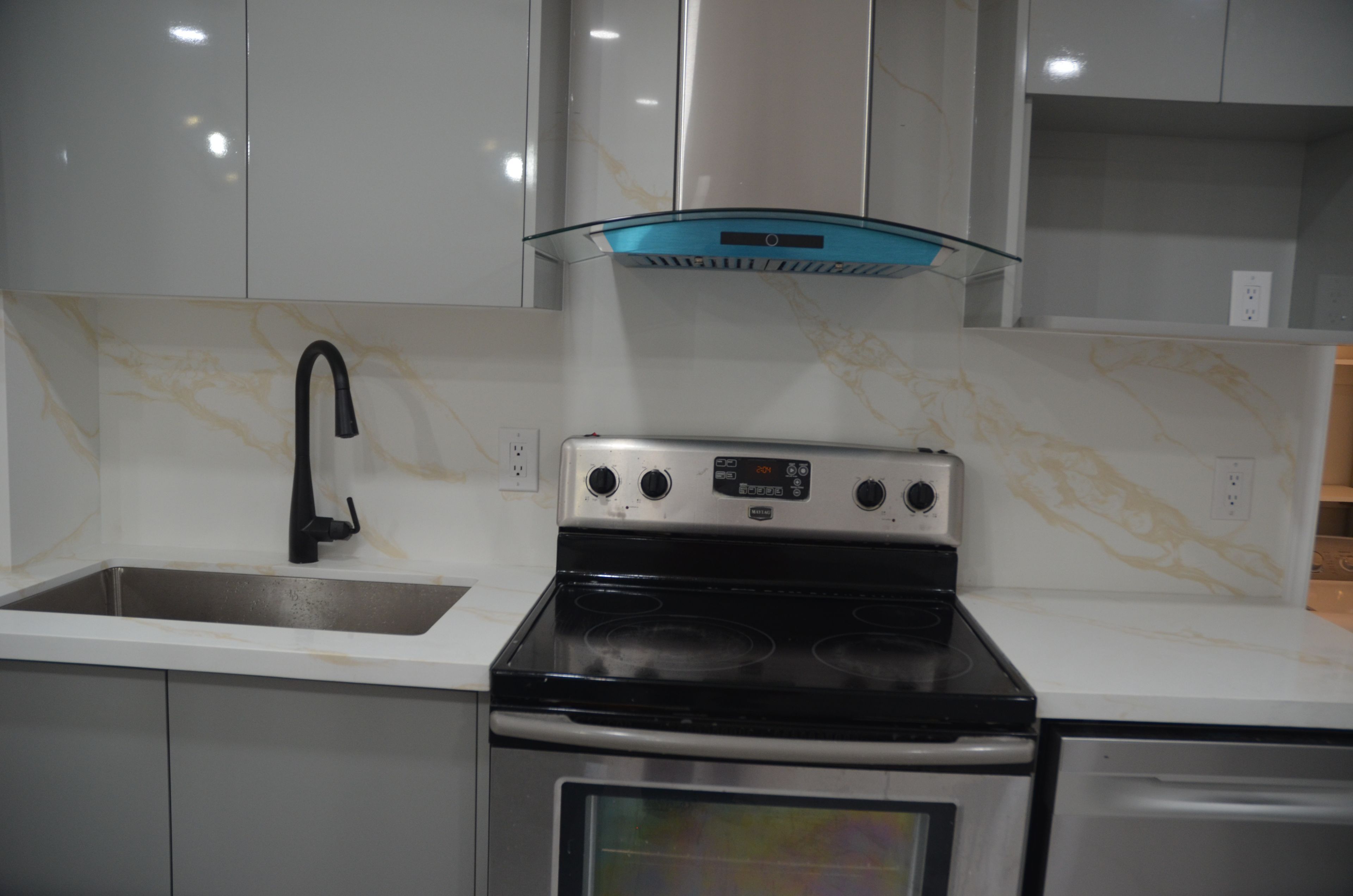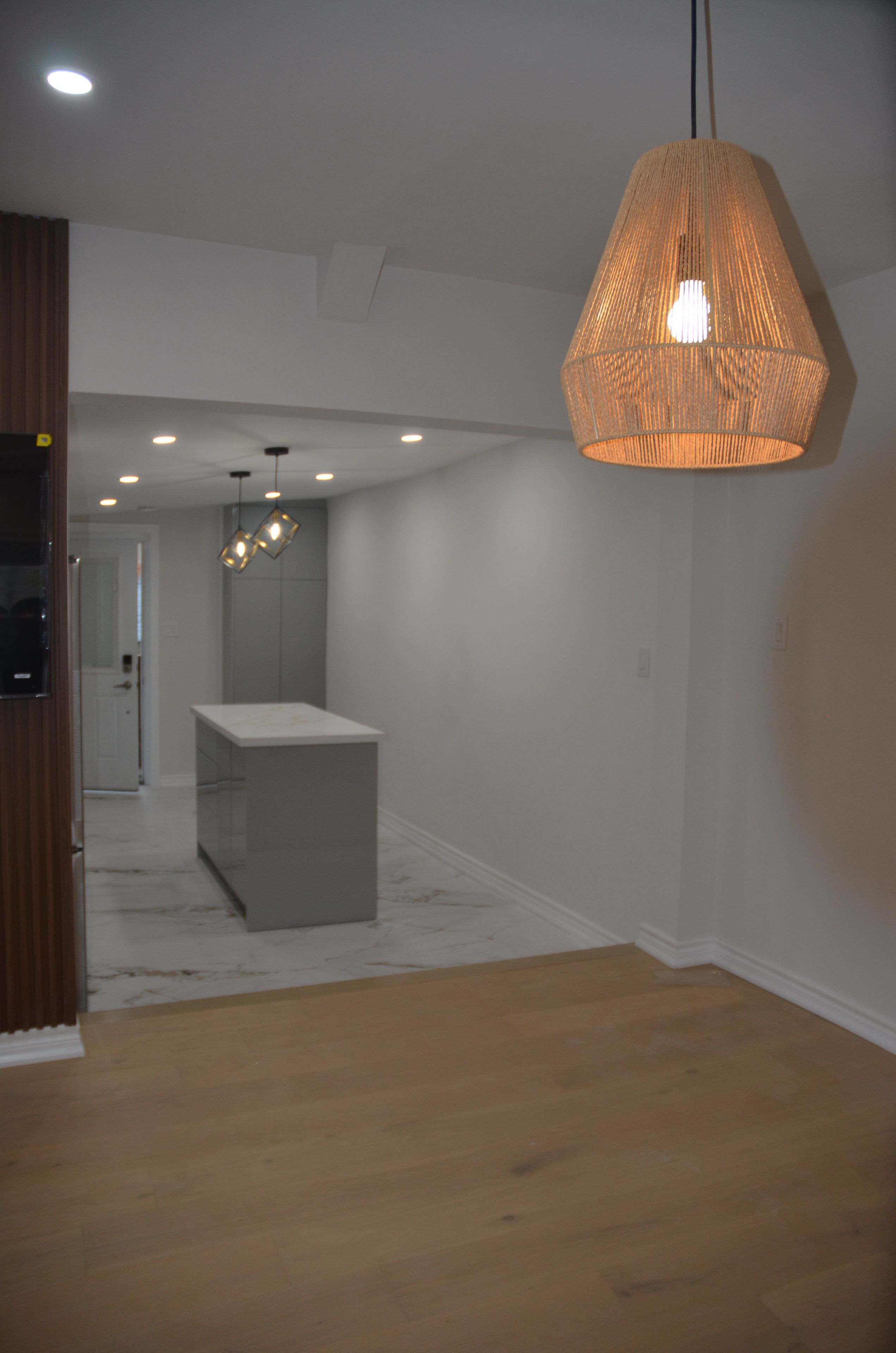 • Renovated 1350 sq. ft. unit with three bedrooms and large kitchen.