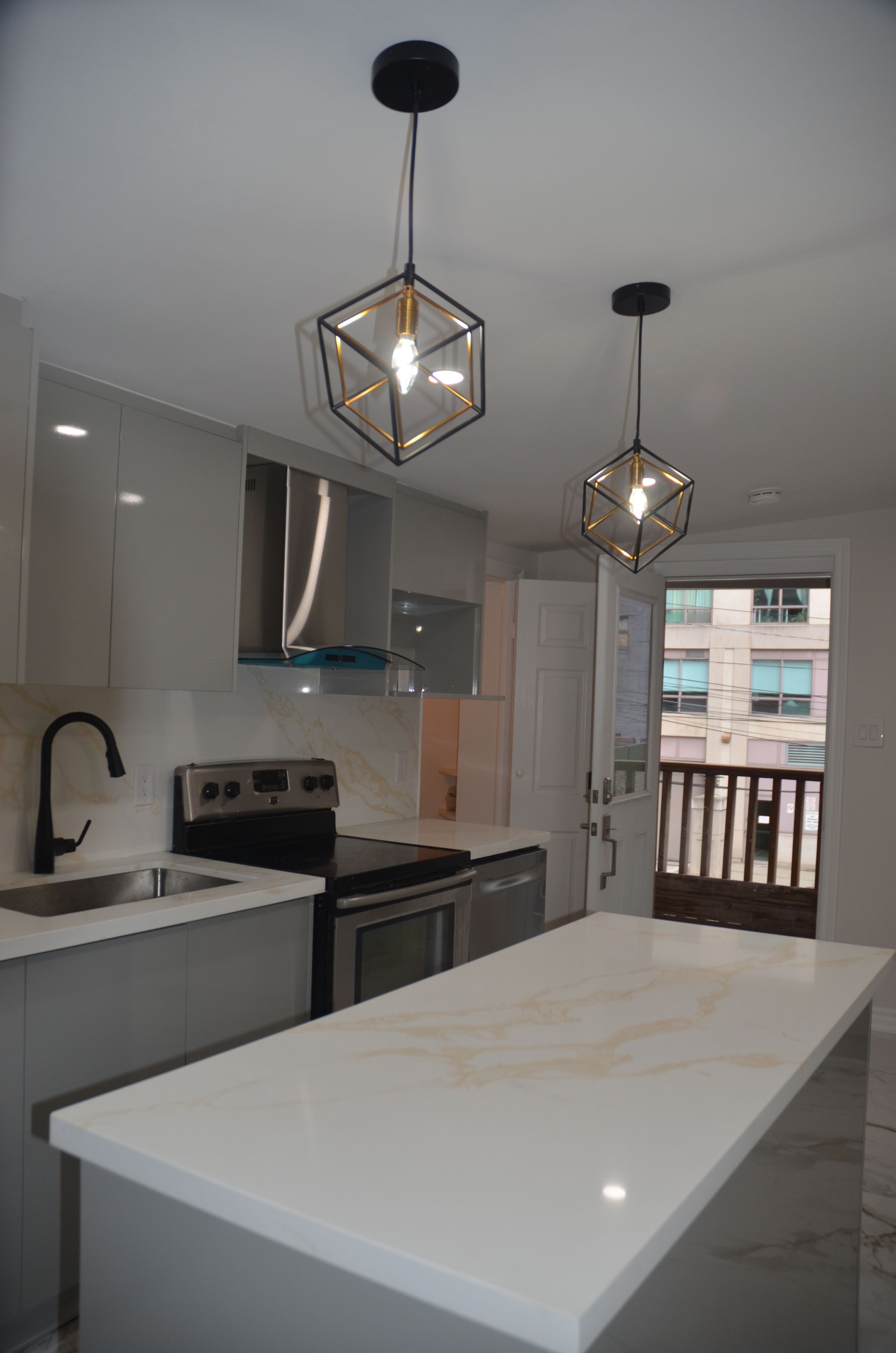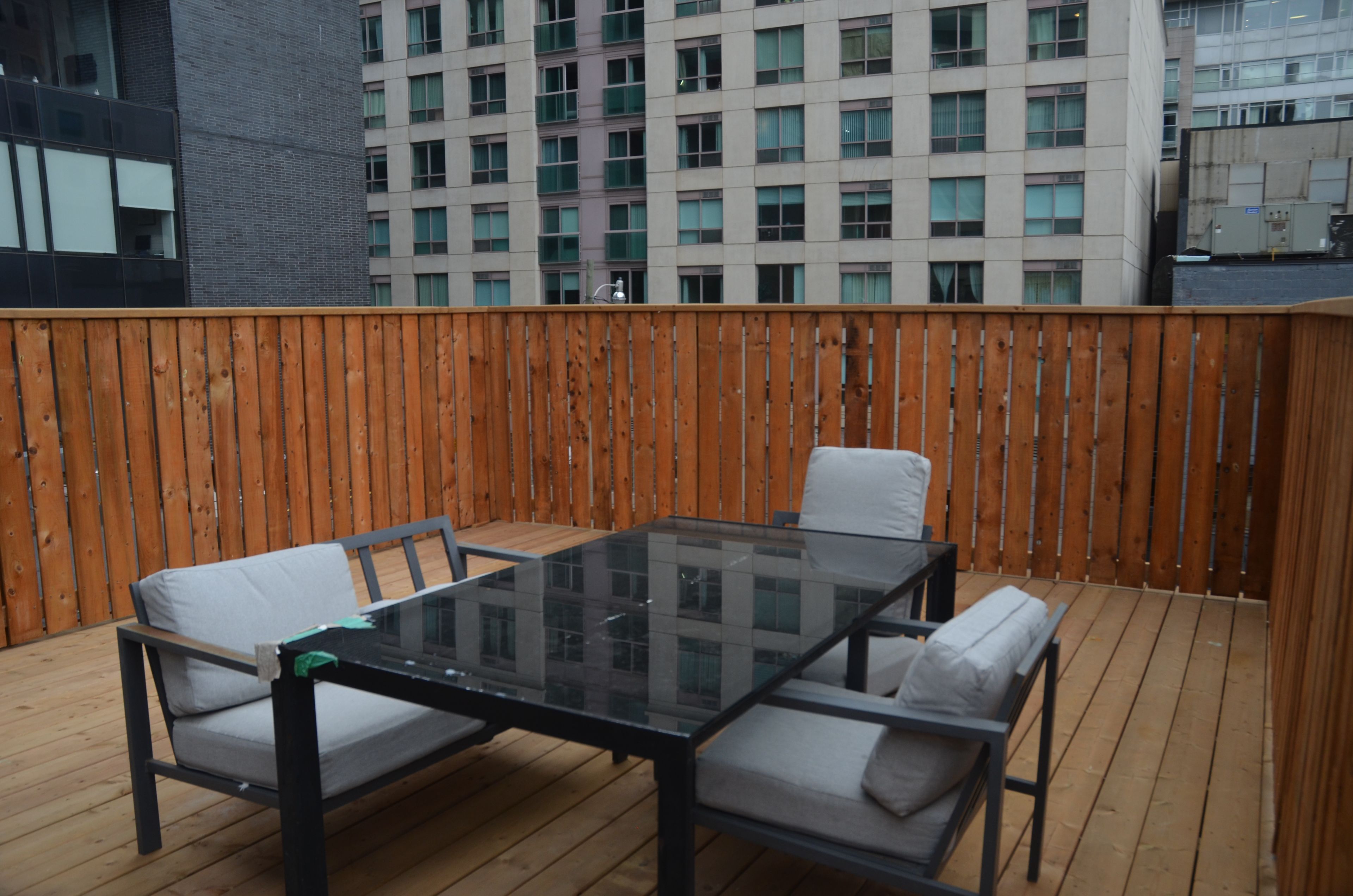Fully new renovated appro. 1350 s. F. Two levels unit with 3 bedrooms, large kitchen, open space living room. A large rooftop terrance at the back of the building to enjoy sunlgihts and bbq party with friends in the city. Fully renovated with modern design, move in condition. The most convenient location steps away to subway, restaurants, hospitals, university, finacial & entertainment district. Private entrance from the back of the building. Parking space may be available for $200/month per space. Tenant pays all utilities: water & gas bills fixed for $200/month and the tenant pays his hydro bills base on separate hydro meter.