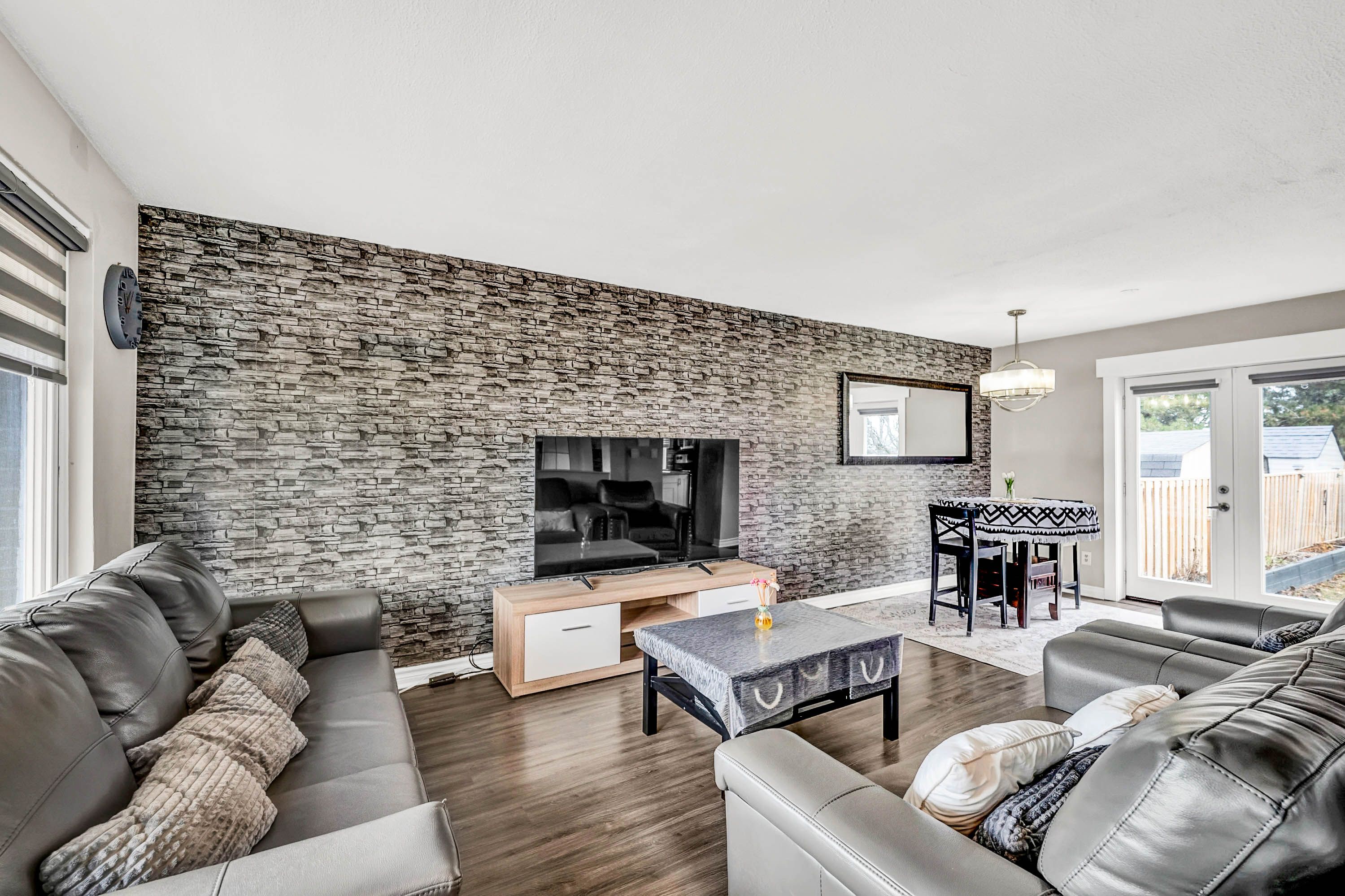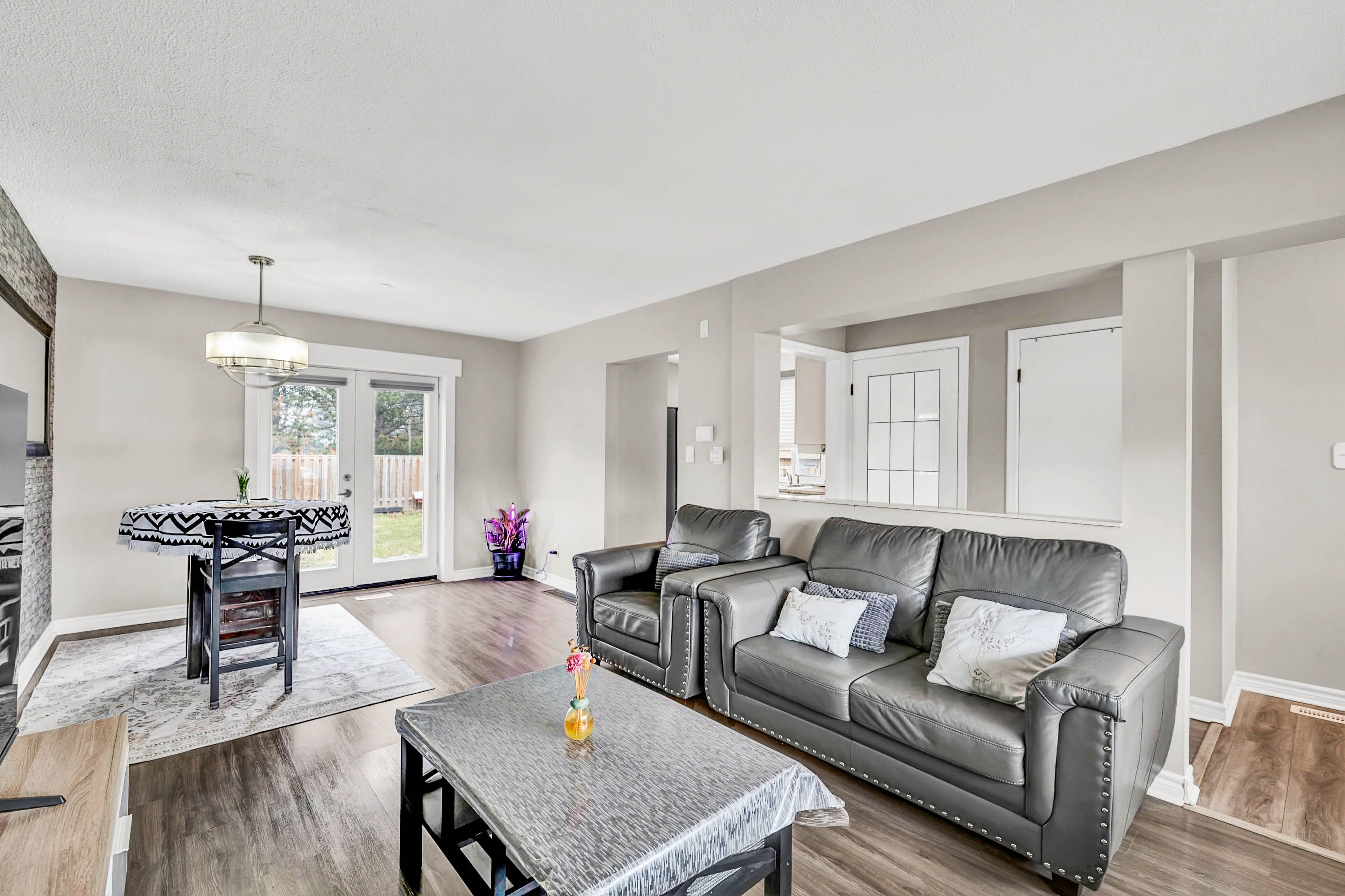 • Bright open-concept living and dining area filled with natural light.