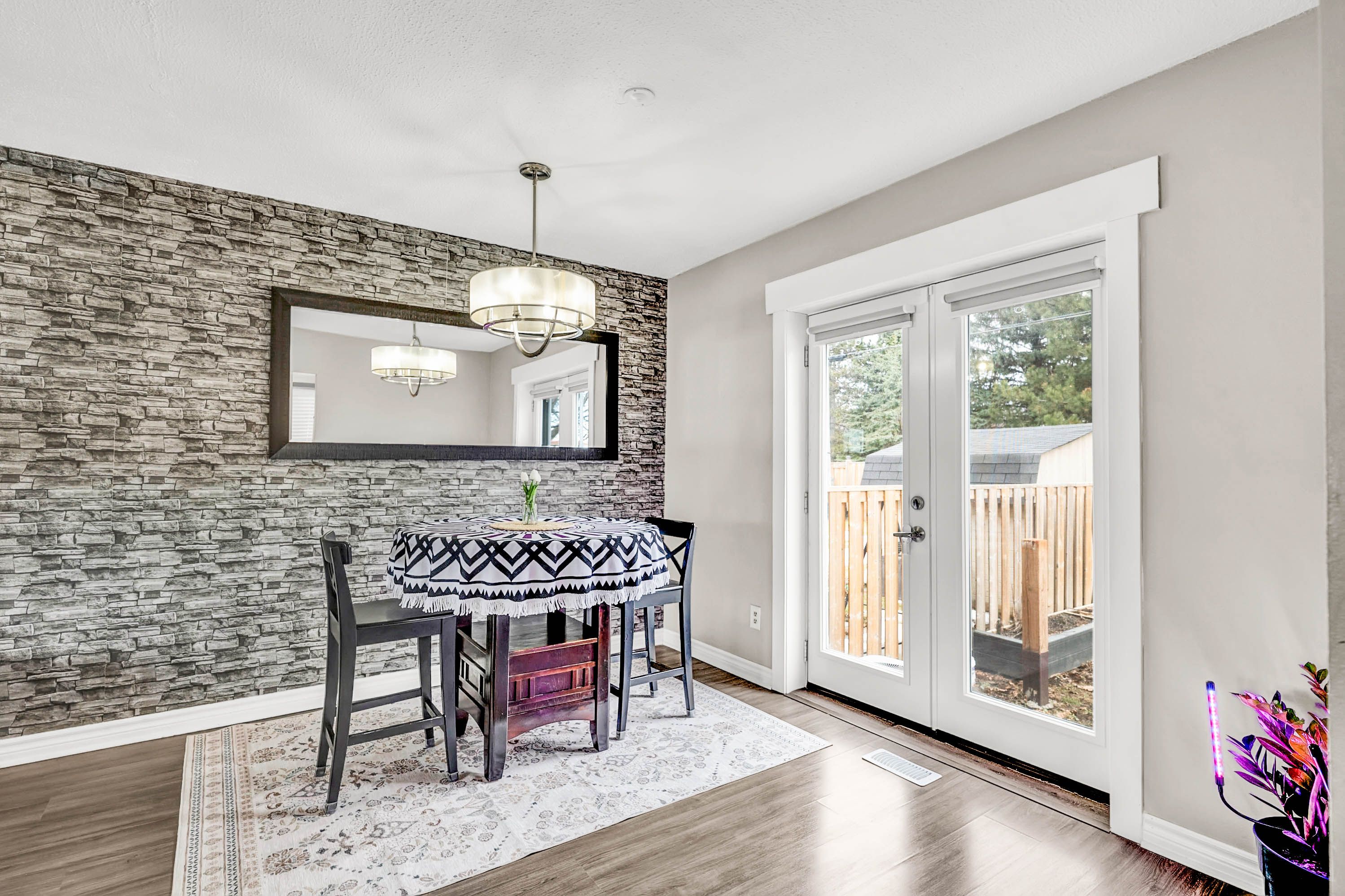 • Private fenced backyard backing onto green space for added privacy.