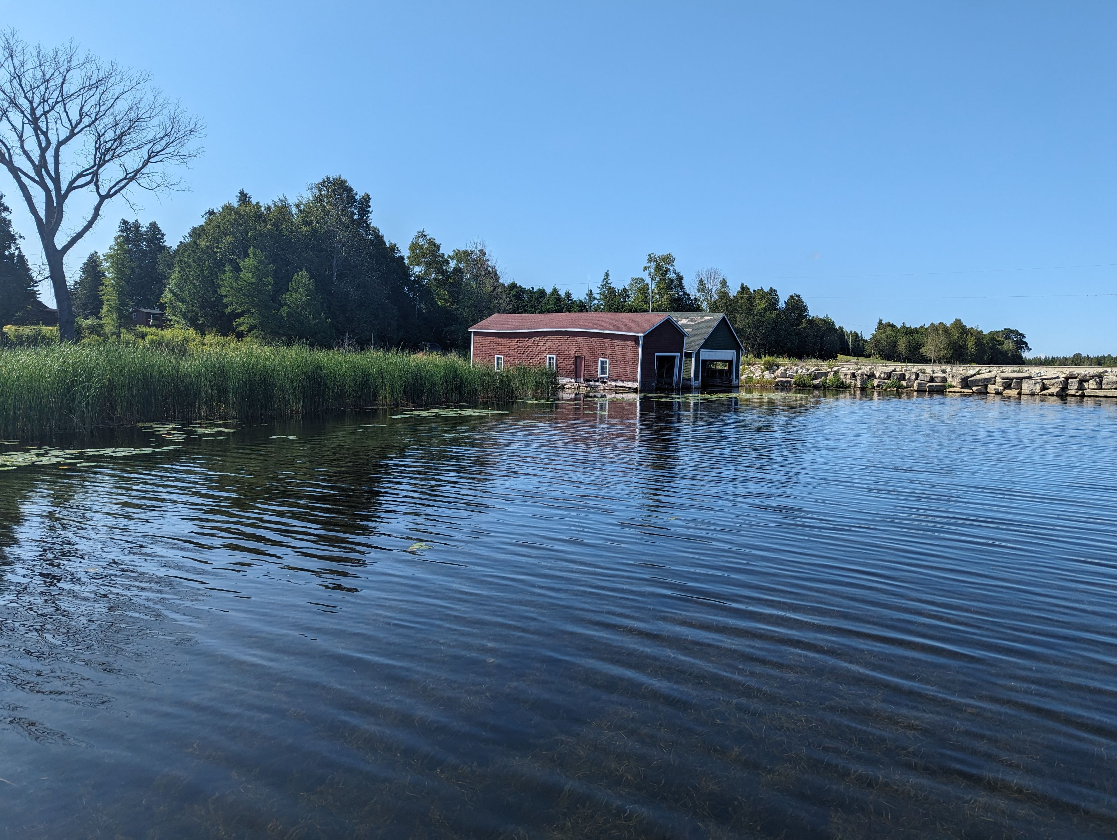 • Iconic red boathouse adds character and charm to the property.