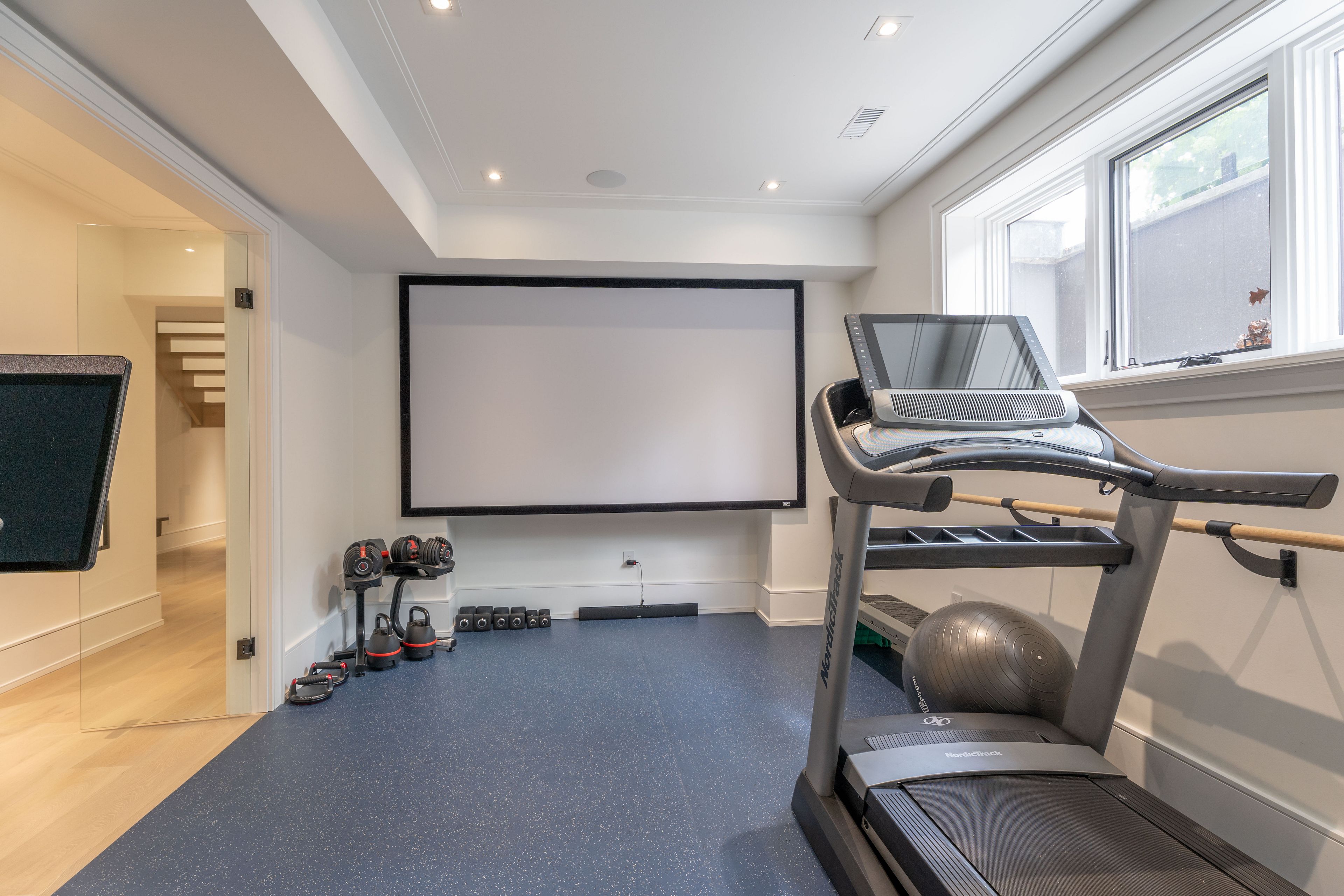• Walk-up lower level includes a gym, home theatre, and wine cellar.