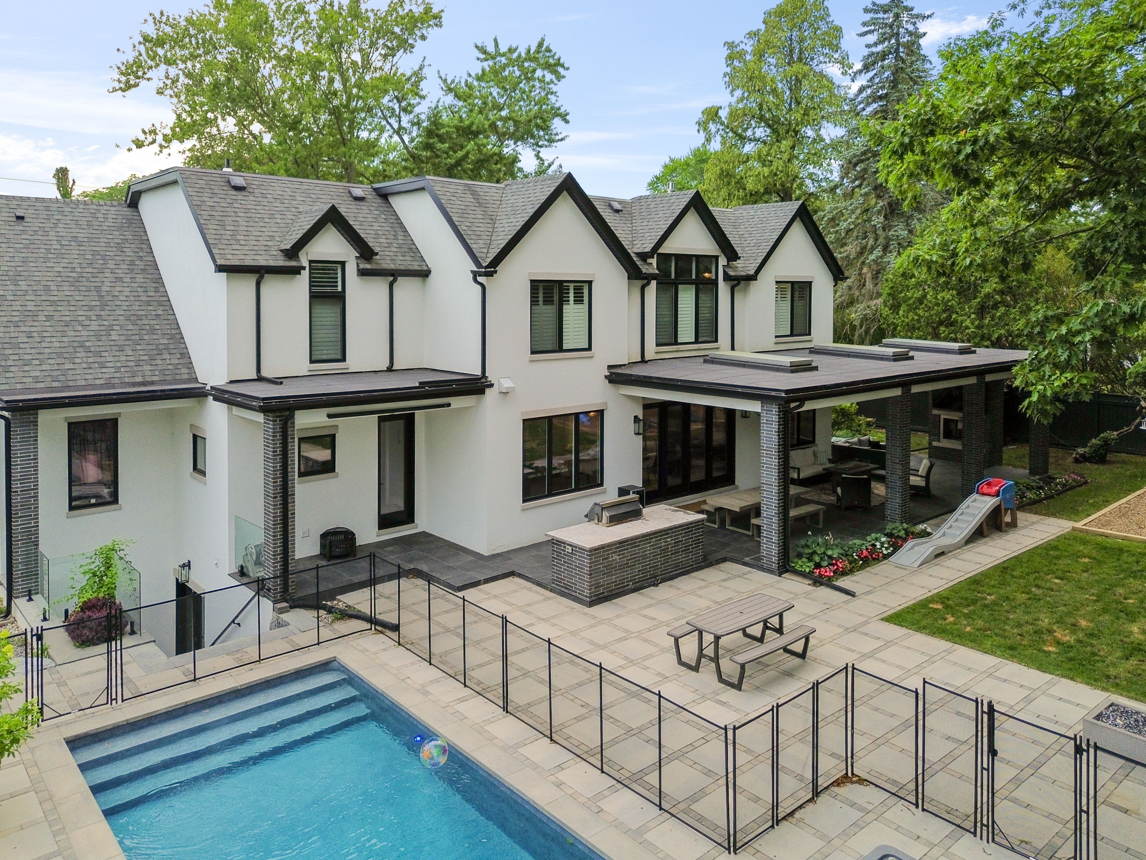 Welcome to an approx. 7,500 sq ft of exceptional living in southeast oakville! Set on a professionally landscaped almost half-acre lot in the prestigious eastlake, this custom hightower-built estate offers thoughtfully designed, luxurious space. The crown jewel of the home is a newly upgraded, million-dollar backyard oasis. Including a 600 sq ft covered patio with a built-in kitchen with a napoleon bbq, a gas fireplace, a saltwater pool with spillover spa, a dedicated play area, and lush perennial gardens. Retreat to an 800 sq ft primary retreat, delivering privacy and true wow factor with vaulted ceilings, two-sided fireplace, wet bar, sitting area, boutique walk-in closet, and a spa-like ensuite featuring heated floors, a soaker tub, and a glass shower. The main floor is designed for both grand entertaining and everyday comfort with natural light pouring through oversized windows. Interior features include 10-foot ceilings, chevron-patterned wide plank hardwood, led pot lights, built-in speakers, and designer chandeliers. The chef's kitchen is finished in dual-tone lacquered cabinetry with caesarstone counters, premium dacor appliances, a bright breakfast area, and a butlers server that connects to the sophisticated dining room. A sleek linear fireplace anchors the family room. The home office stands out with 15-foot cathedral ceilings, a fireplace, custom built-ins, and a walkout to the gardens. Above, you'll find three generously sized bedrooms, each with radiant heated ensuite baths and custom closets. Downstairs, the walk-up lower level is built to impress with a full wet bar, wine cellar, large rec room, two guest bedrooms, a gym with cushioned flooring, cedar infrared sauna, and a new two-tiered home theatre. Additional features include a control4 smart home system, a two-car garage with car lift potential, and a location just minutes from top-rated public and private schools, lakefront parks, downtown oakville, and qew access for a seamless toronto commute.
