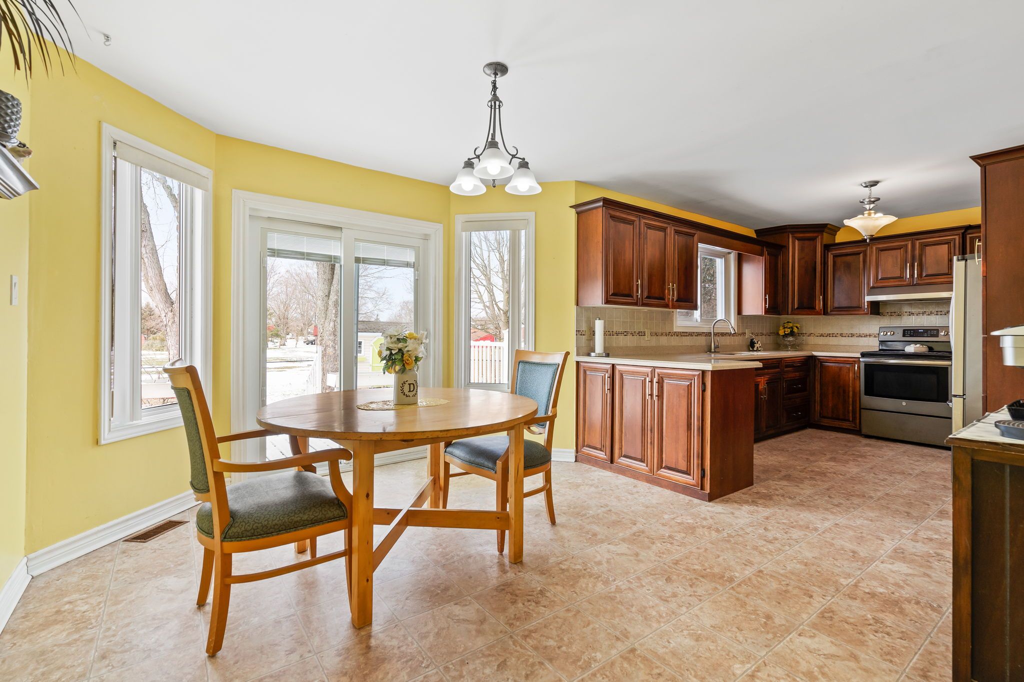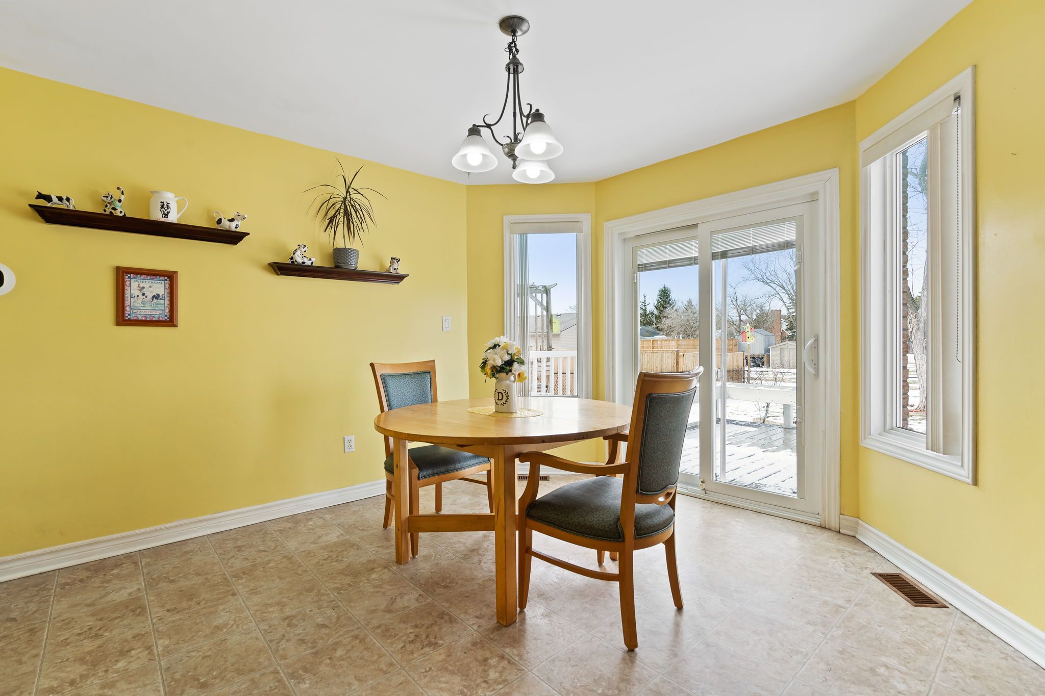 • Bright kitchen with breakfast nook and access to rear deck and yard.