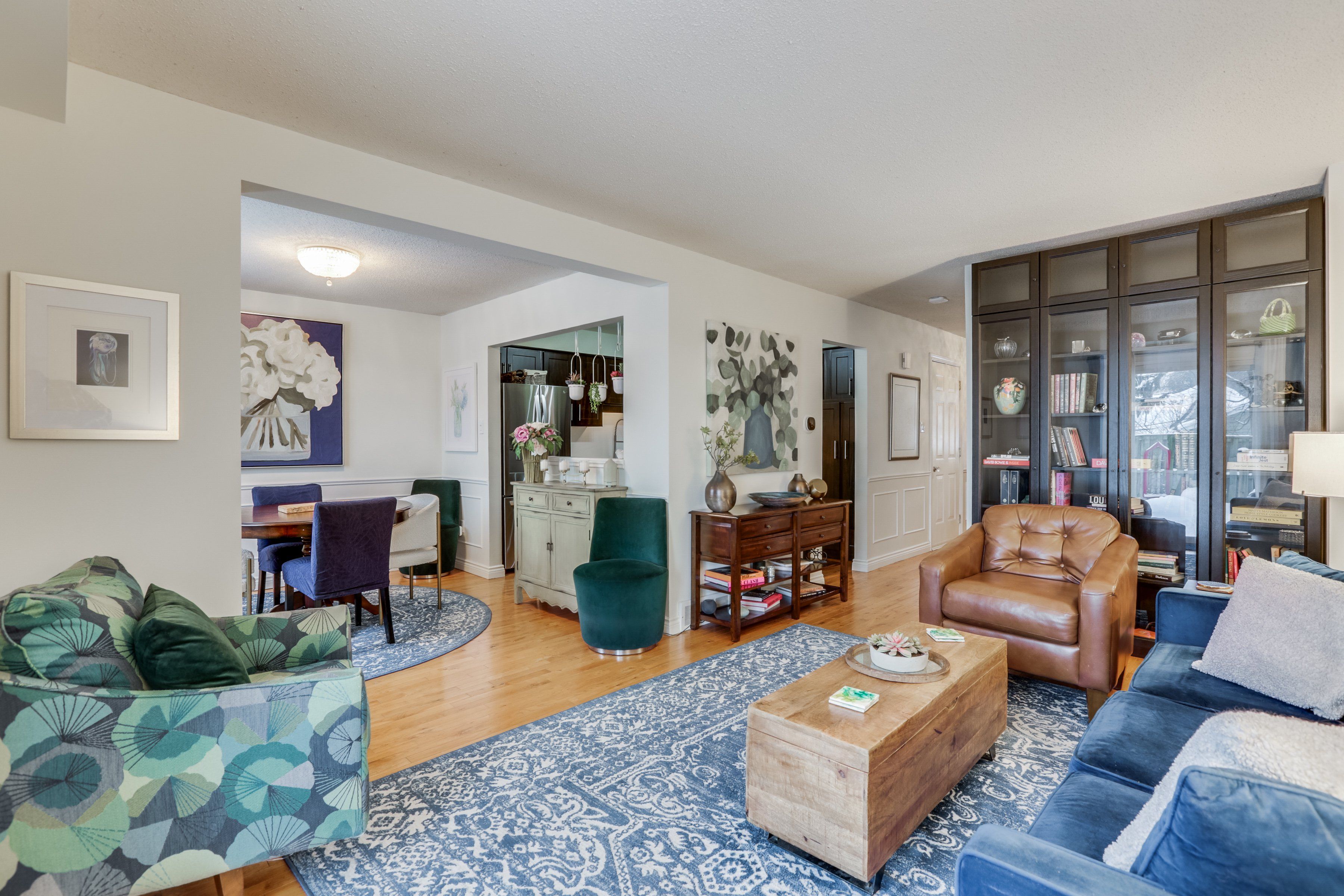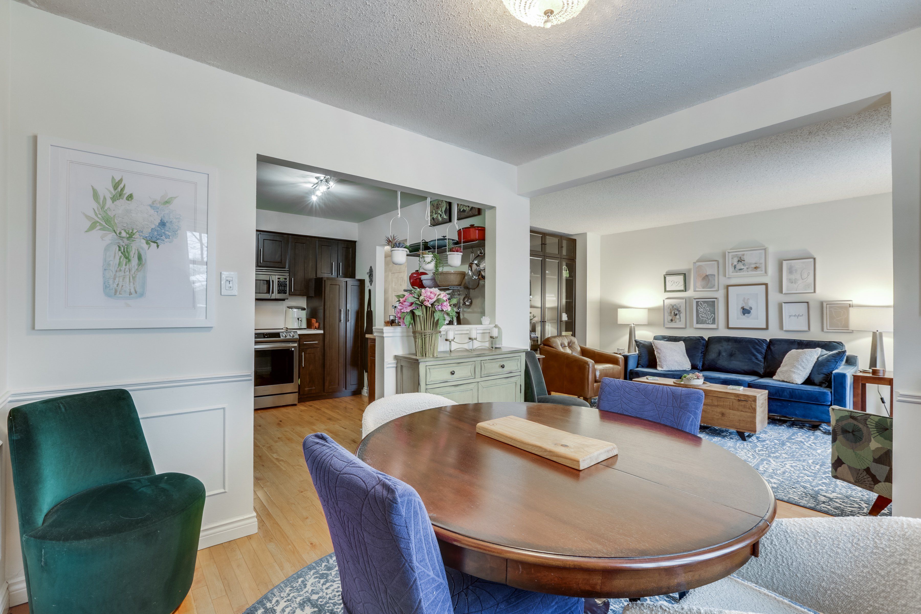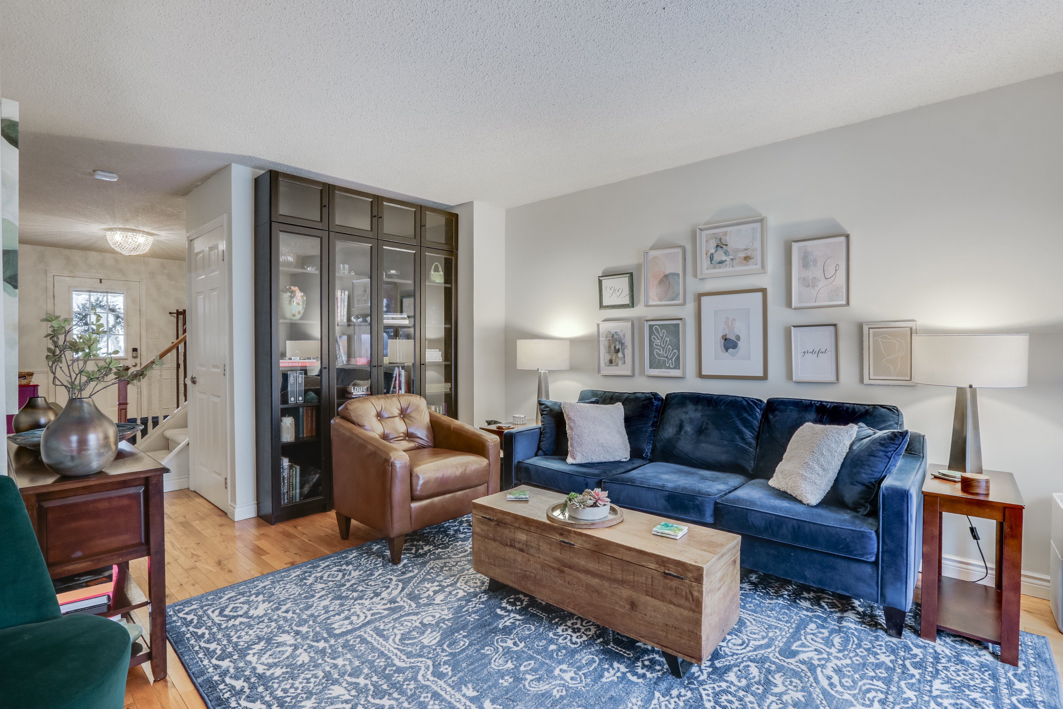 • Bright interior with hardwood floors and a cozy living room.
