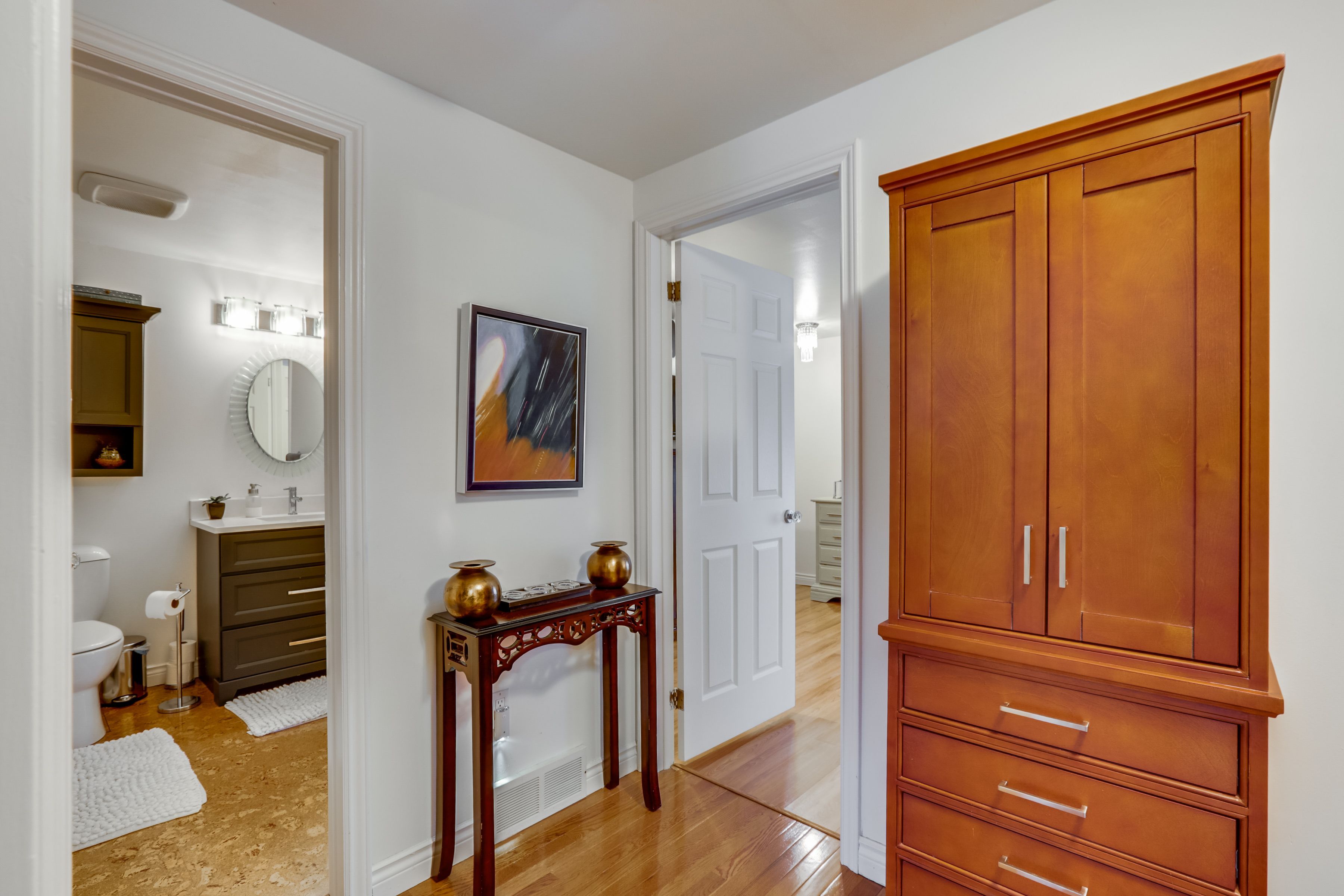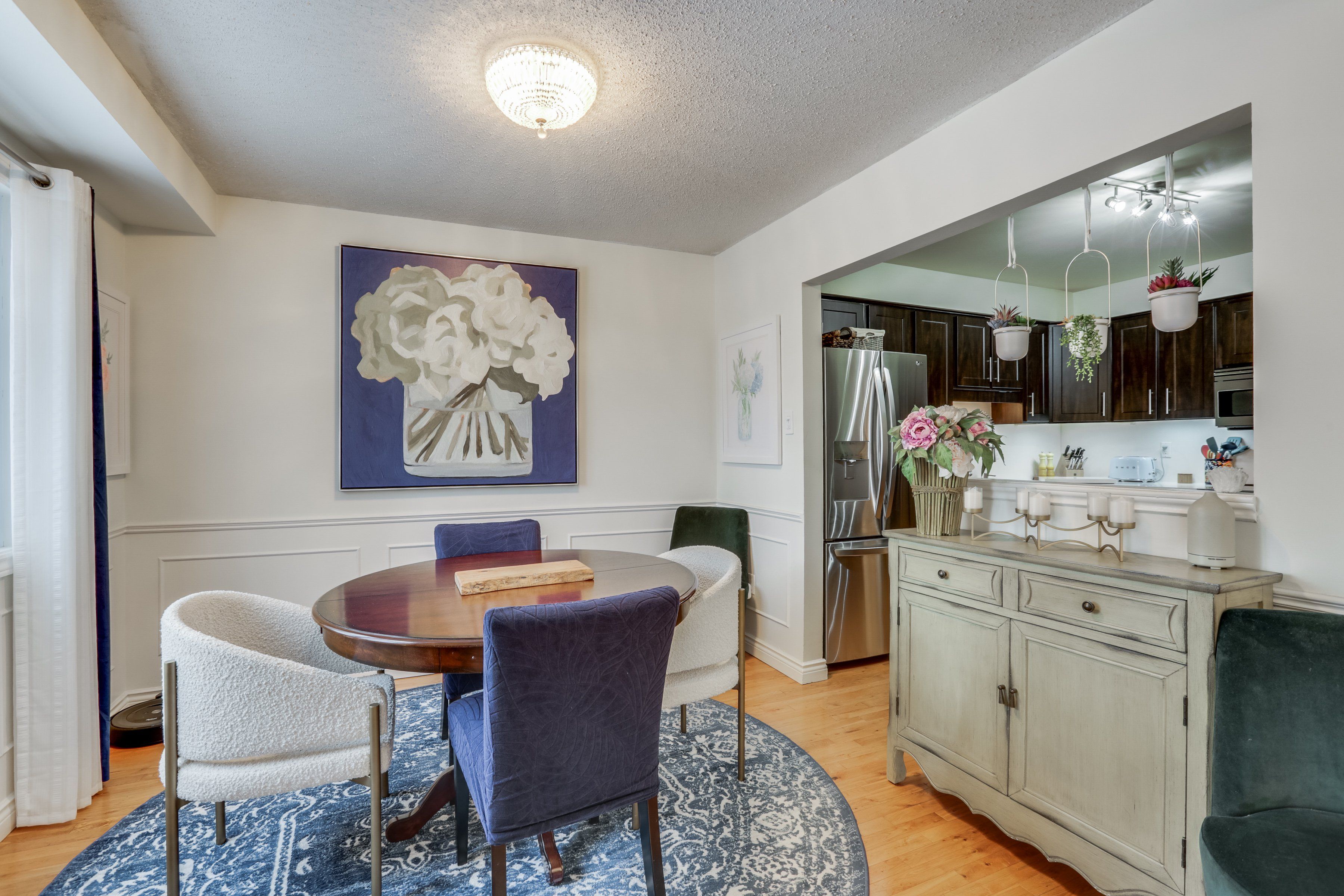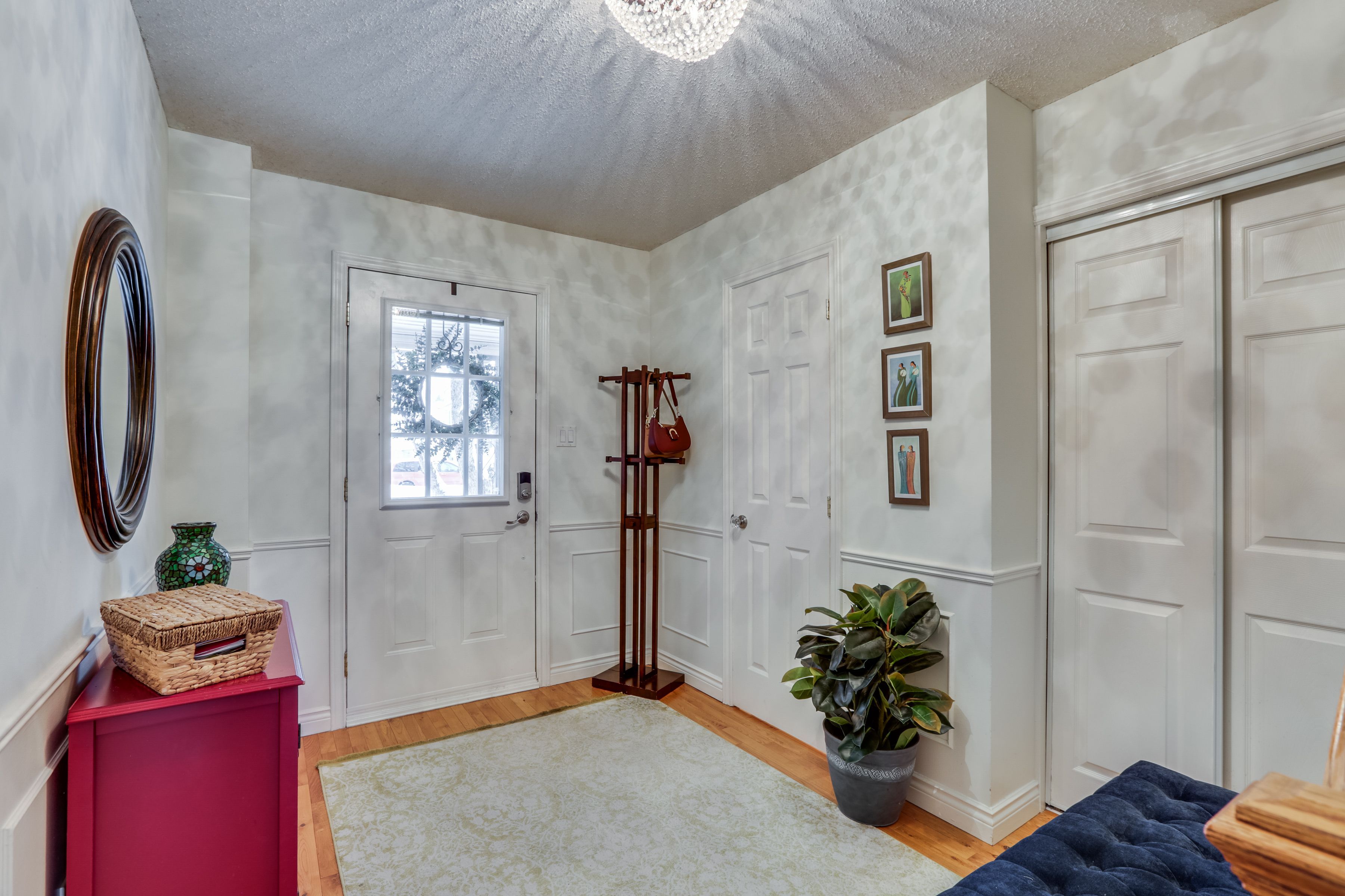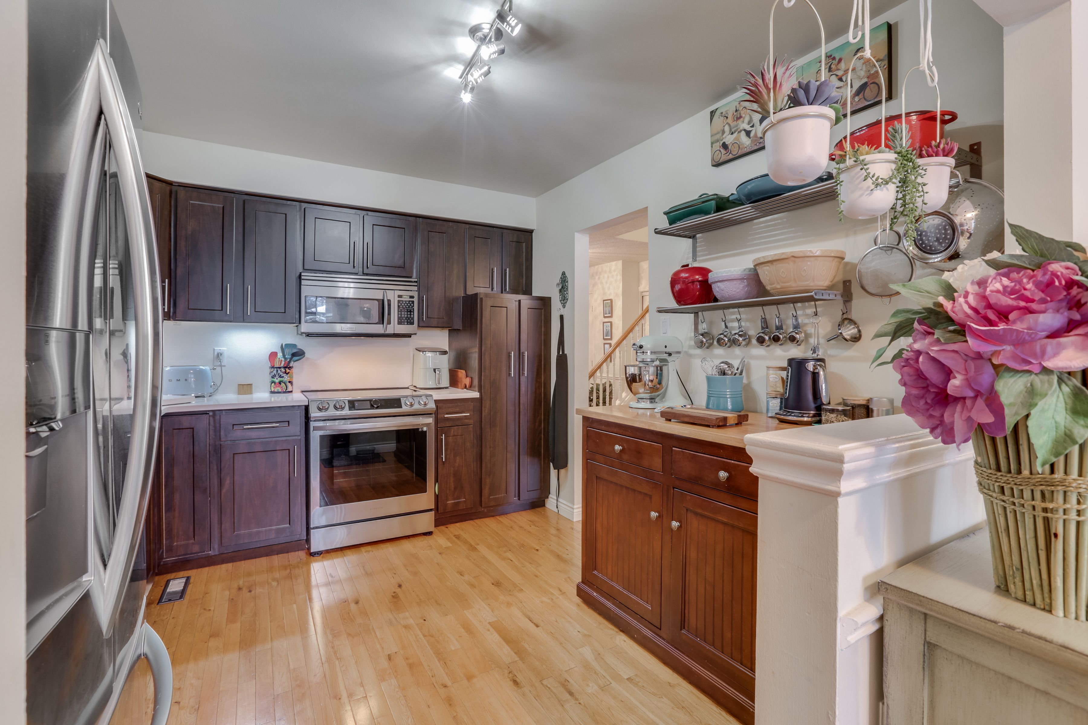 • Bright interior with hardwood floors and a cozy living room.