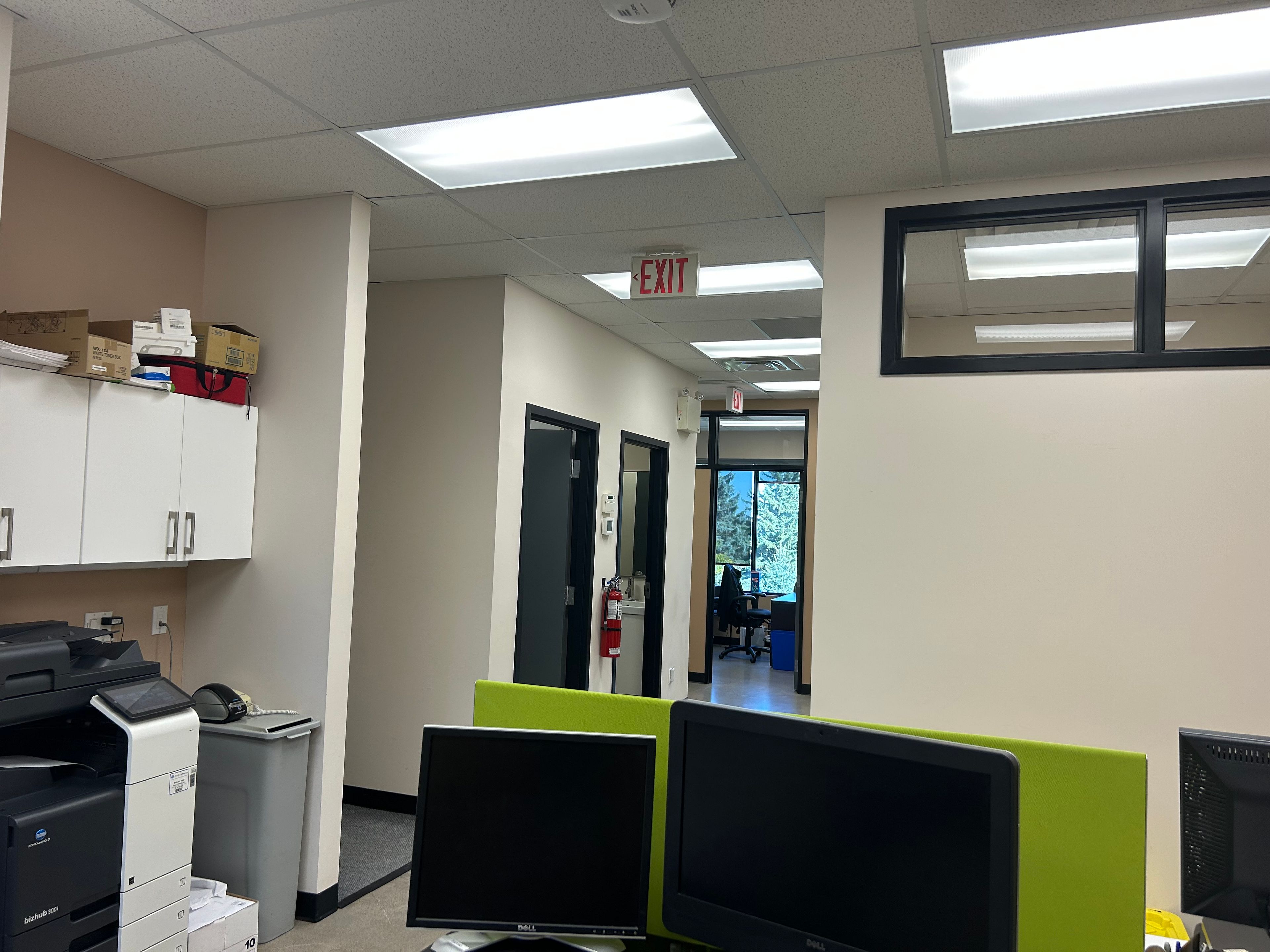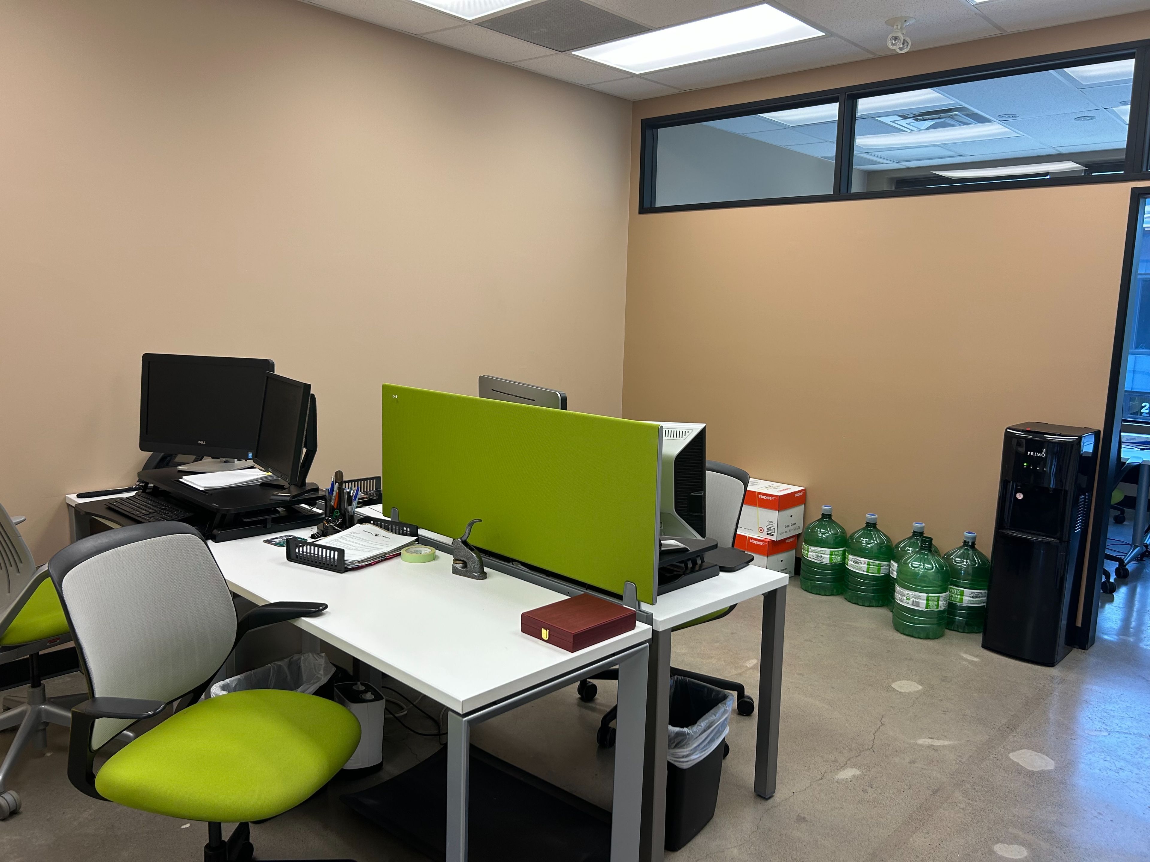 • Includes a board room, two offices, kitchenette, and open work area.