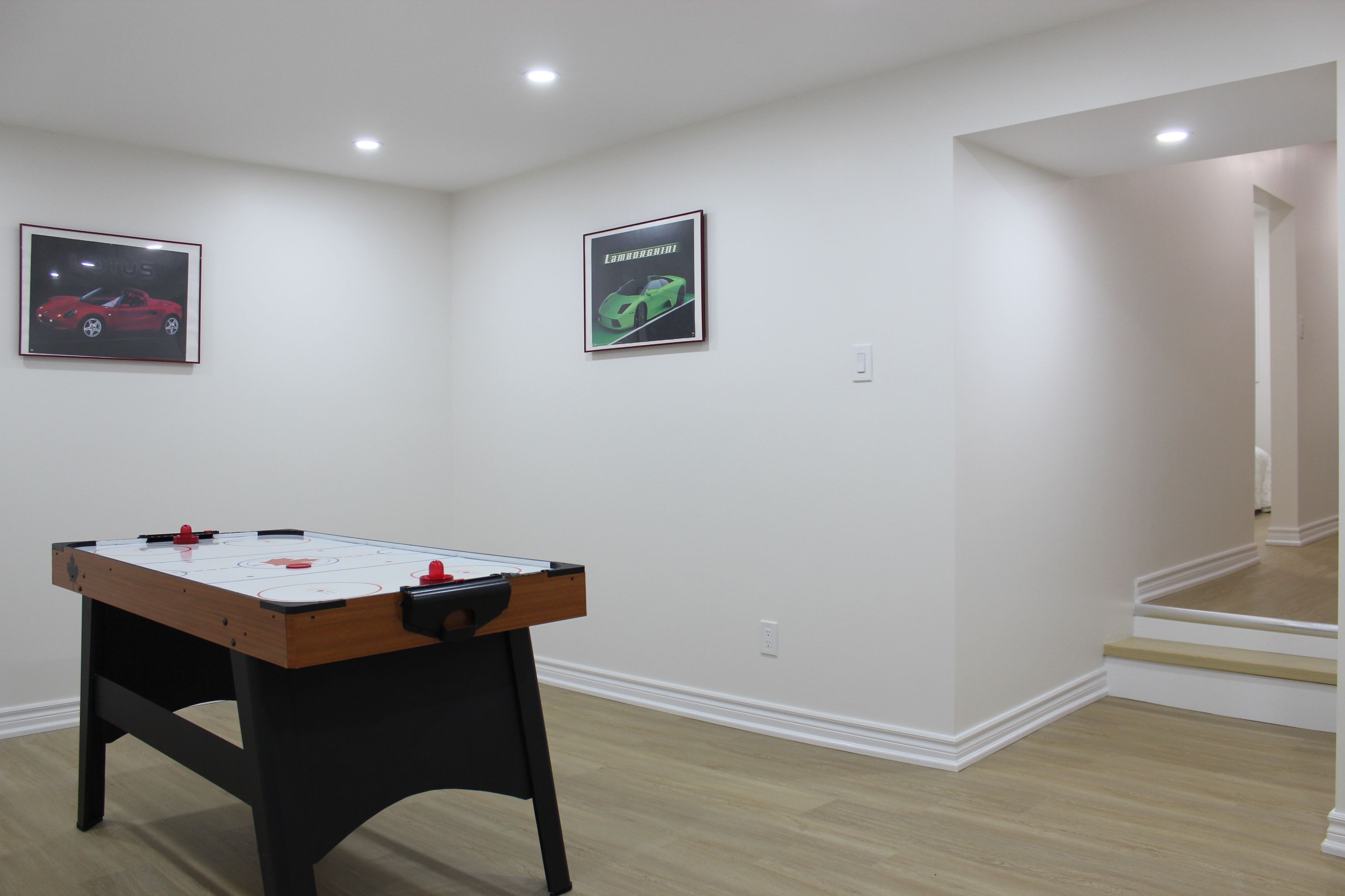 • Freshly renovated basement featuring a recreation room, bedroom, and study area.