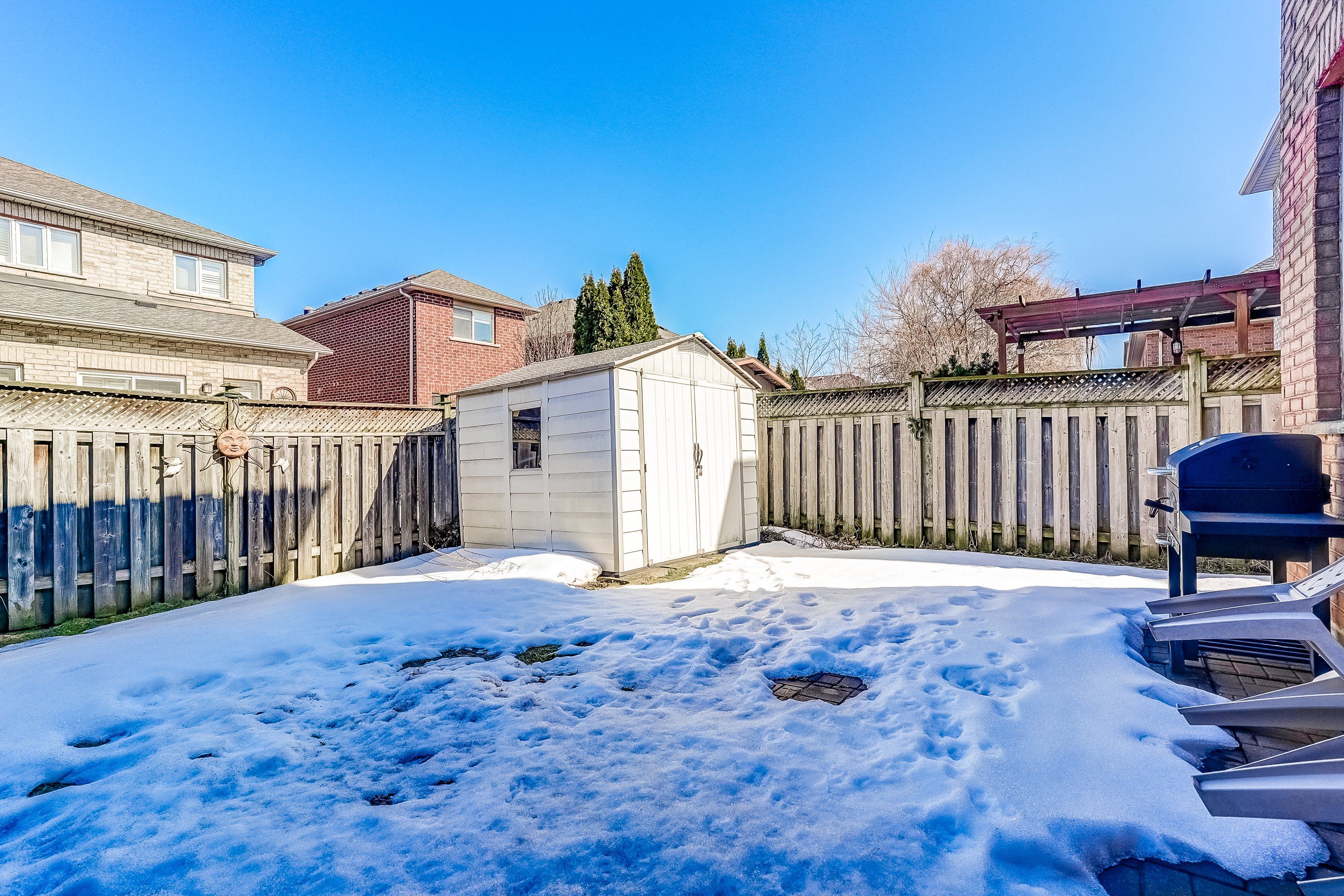 • Spacious fenced backyard, great for outdoor activities and family gatherings.