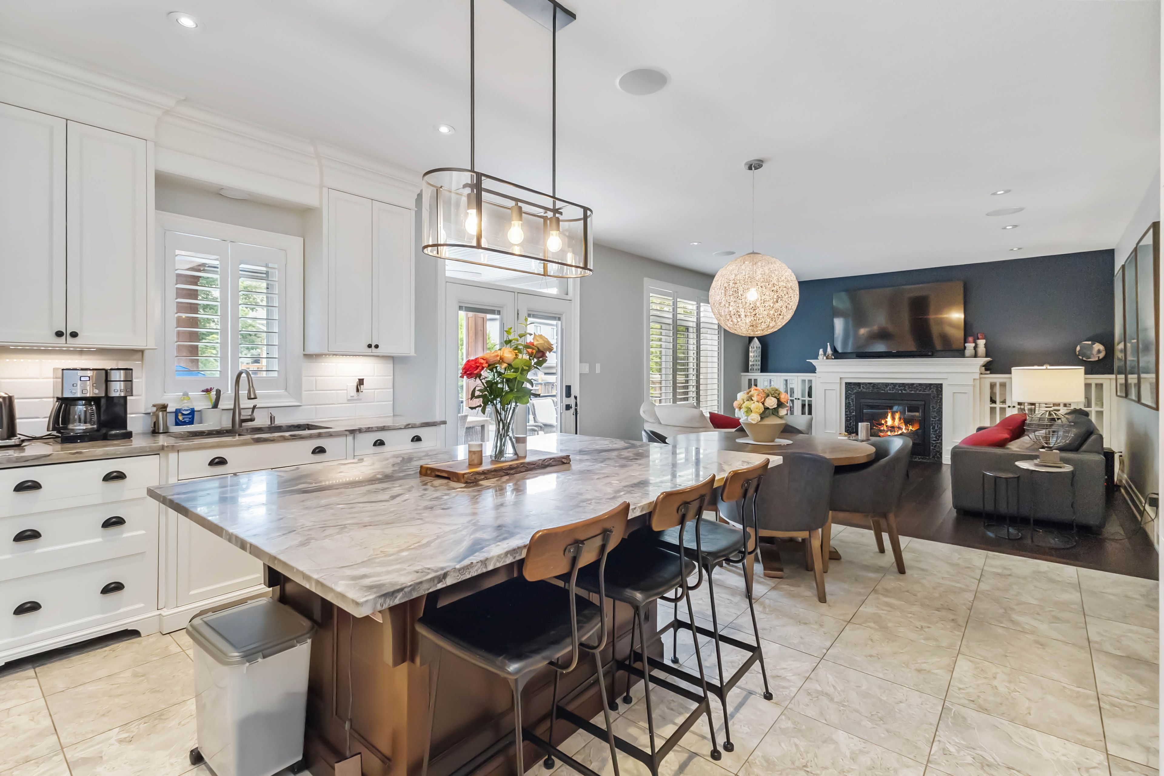 • Bright living room features a cozy gas fireplace for relaxation.