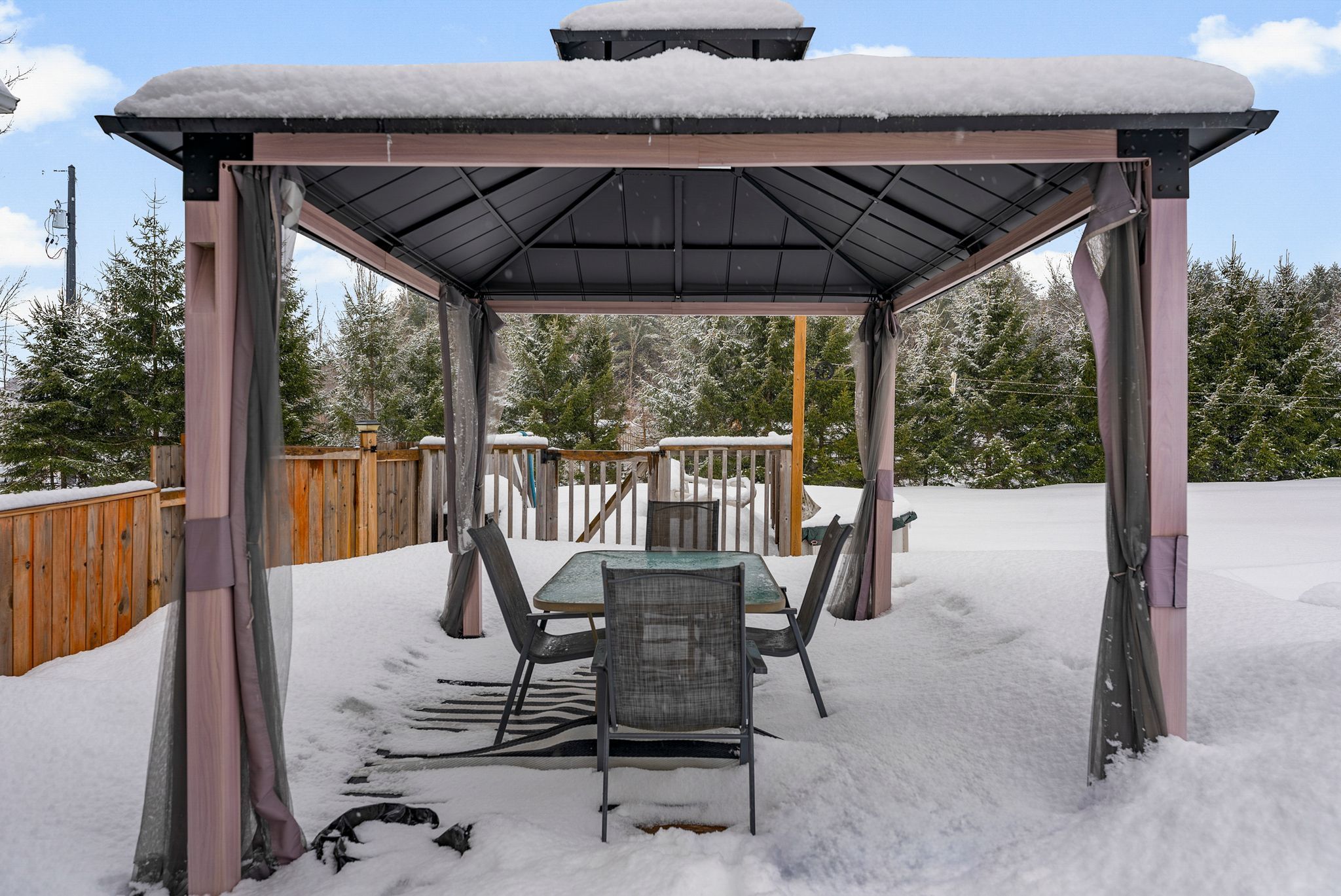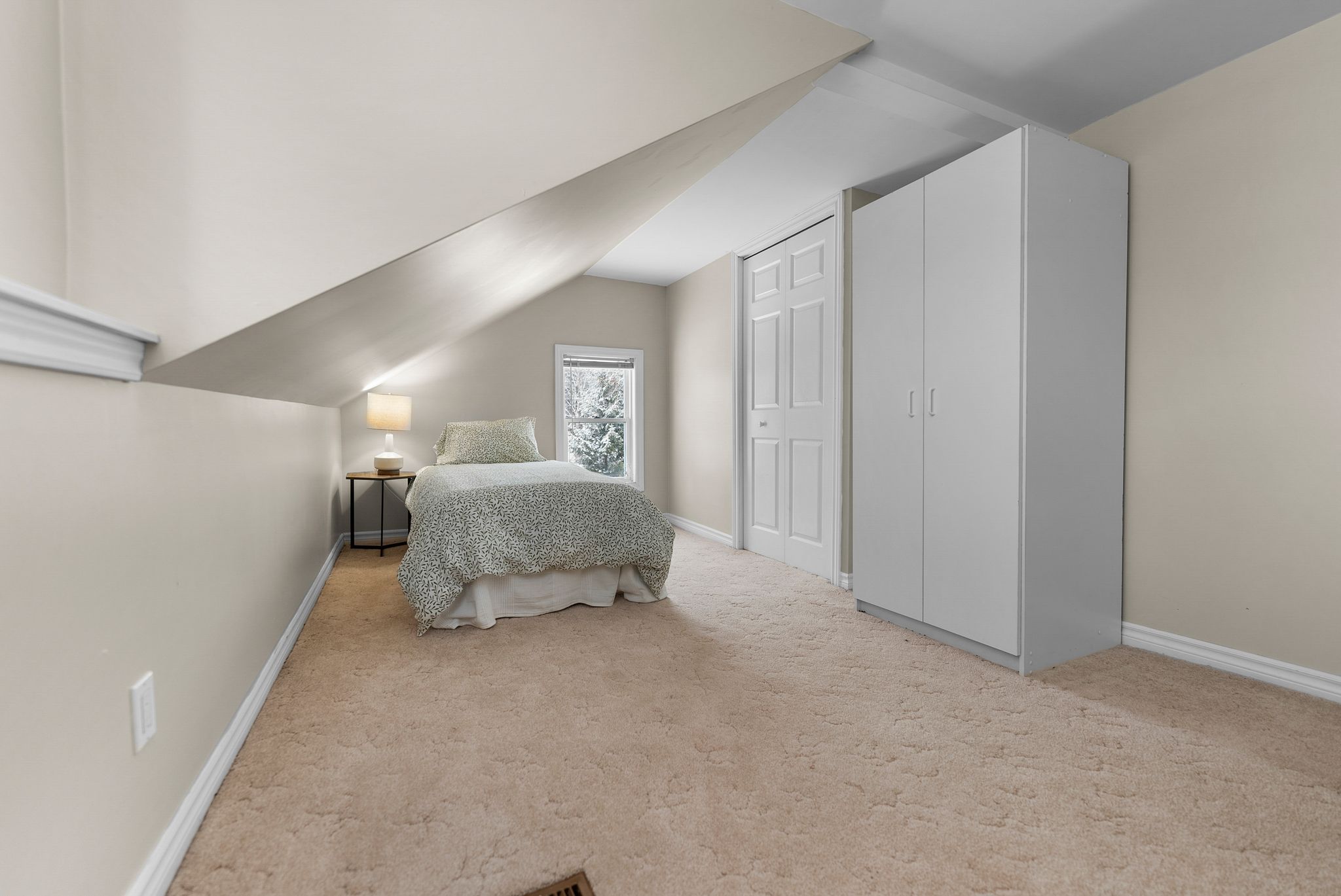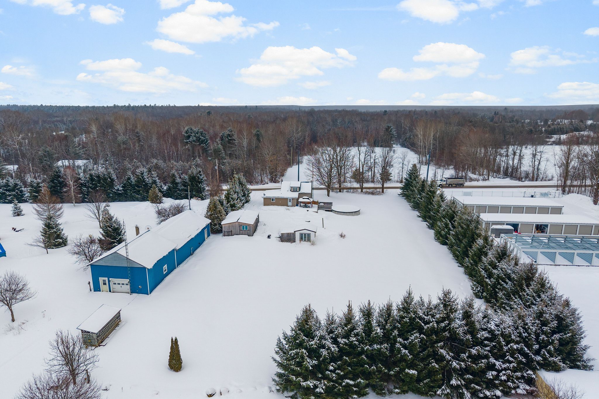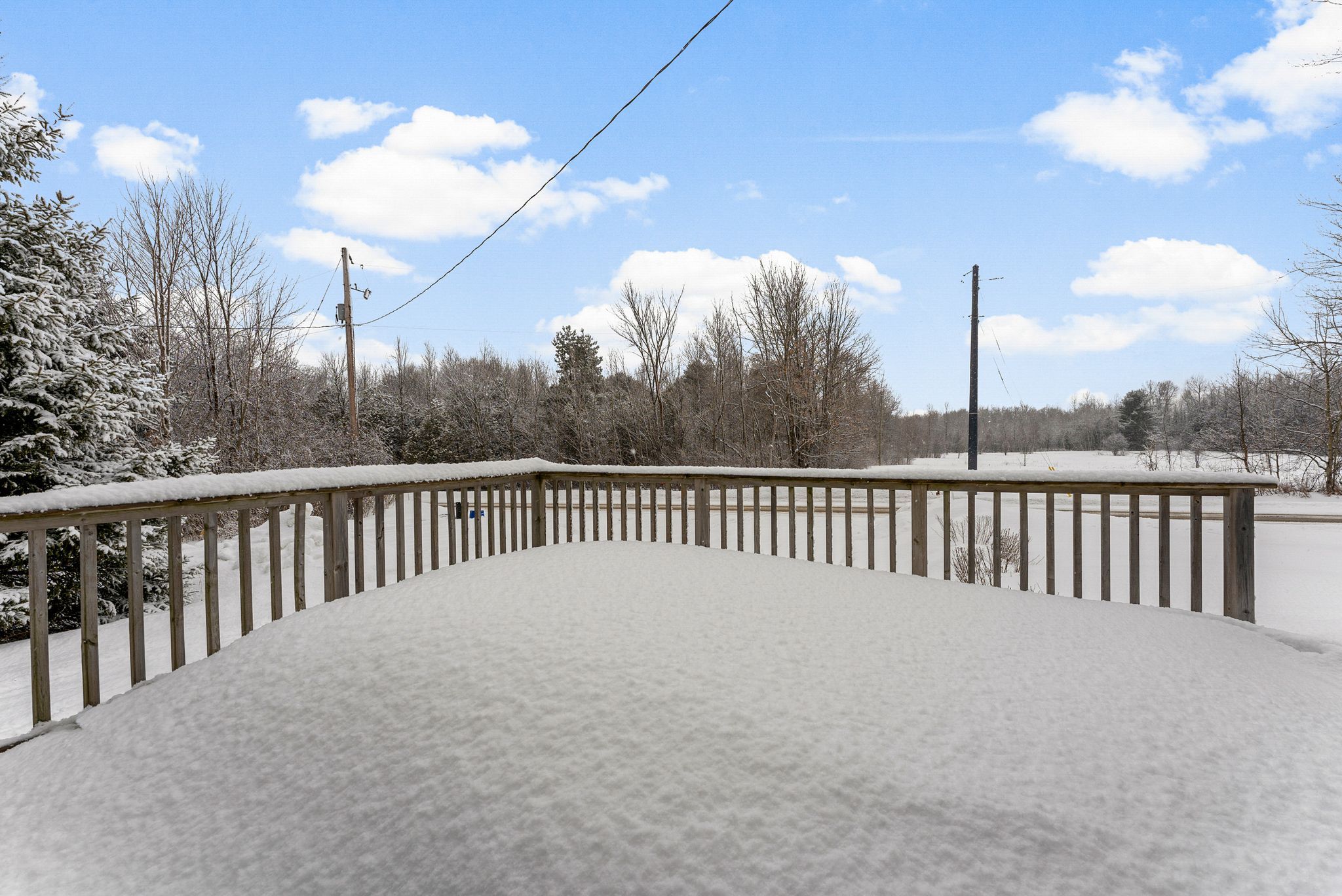 Welcome to this charming 1-1/2 storey country home on a beautifully treed 1-acre lot, offering a perfect blend of rural character and thoughtful updates. The back entrance opens to a spacious mudroom with access to 4-pc bath, while the sunny country kitchen features white cabinetry, a stylish backsplash, an oversized eating area with access to the front deck, and convenient laundry tucked behind closed doors. The main level also includes a primary suite with newly renovated 3-pc ensuite, plus a family room off the front entry with stairs to the upper level, where two generous bedrooms and a versatile loft await - perfect as a games room, office, or second living space. Enjoy summer days on the front and back decks, an above-ground pool, and easy access to the unfinished basement for storage or a home gym. A separate heated workshop (30' x 20') with hydro offers endless possibilities for a man cave, "she-shed," or storage for your country toys! Located in a desirable rural community just a short drive to local amenities, this home is a must-see for country living with modern comfort!