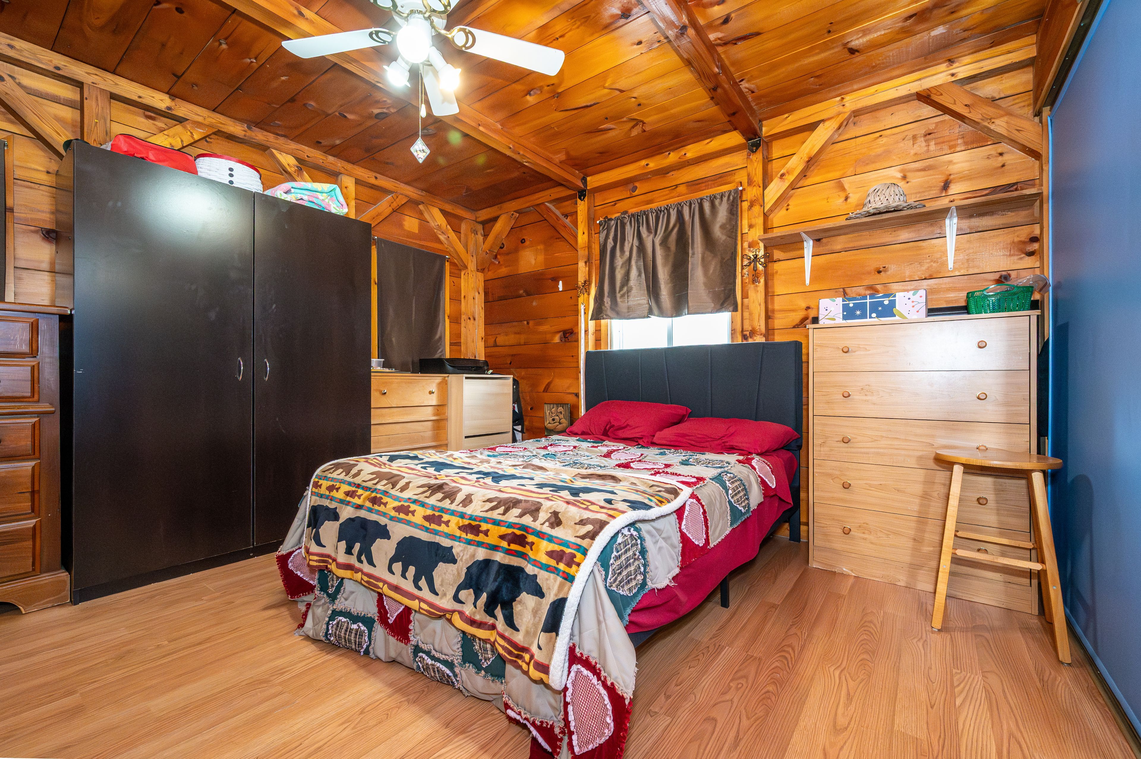 Discover the perfect blend of privacy and convenience with this beautiful country home set on 5 serene acres, only 10 minutes from downtown huntsville. This property offers space, character, and endless potential - ideal for families, nature lovers, or anyone seeking a peaceful retreat close to town. The home features 4 bedrooms and 2 bathrooms, a welcoming living room with a cozy gas fireplace and rustic wood accents that bring warmth and charm to every season. The separate dining room with built-ins, and large pantry room provide ample storage and functionality for everyday living. Step downstairs to a walkout basement leading to a covered porch, the perfect spot to relax or enjoy a hot tub overlooking the picturesque creek that winds through the property. An adorable cabin in the woods adds even more versatility - complete with hydro, kitchenette, bedroom, and composting toilet - ideal for overflow guests, a studio or office space, or "glamping" adventures. Outside, you'll find a detached garage, an additional shed, and plenty of parking for guests, rvs, or recreational toys. Efficient in-floor heating. The property is a beautiful mix of landscaped areas and natural forest, offering both charm and privacy in equal measure. Whether you're looking for a family home, hobby farm potential, or a peaceful weekend escape - this huntsville gem delivers it all.