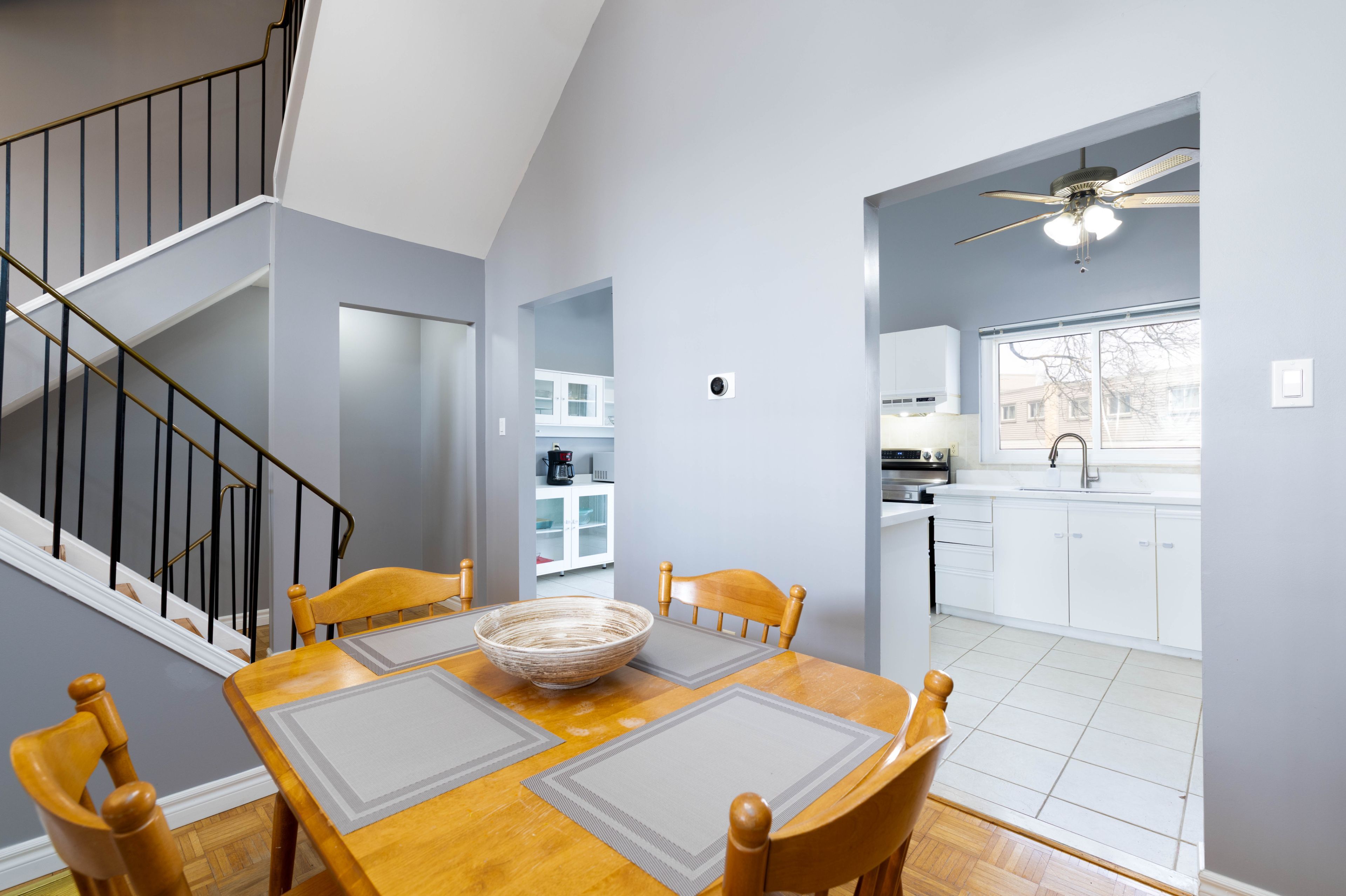 • Split level design separates living and dining while maintaining openness.