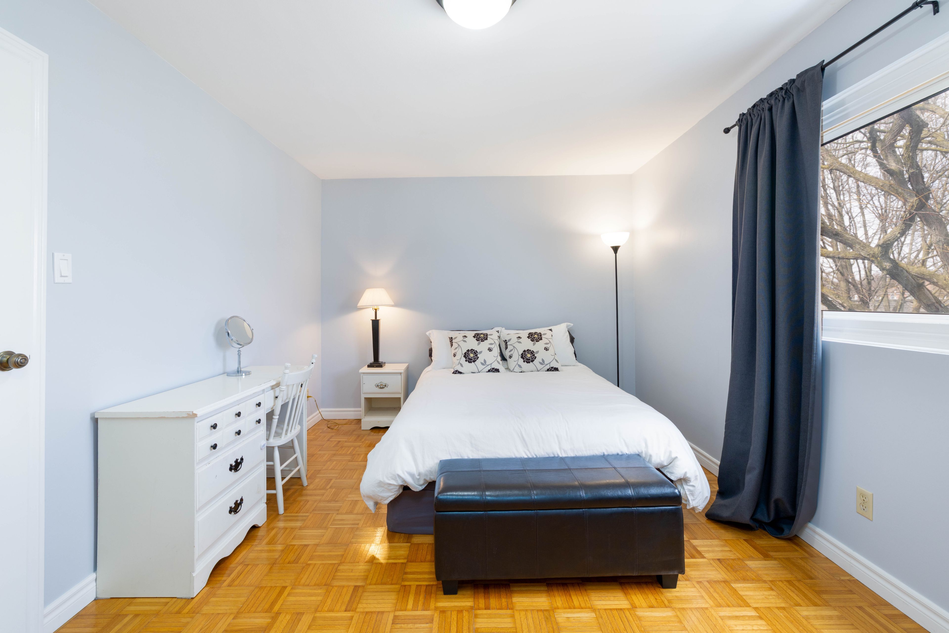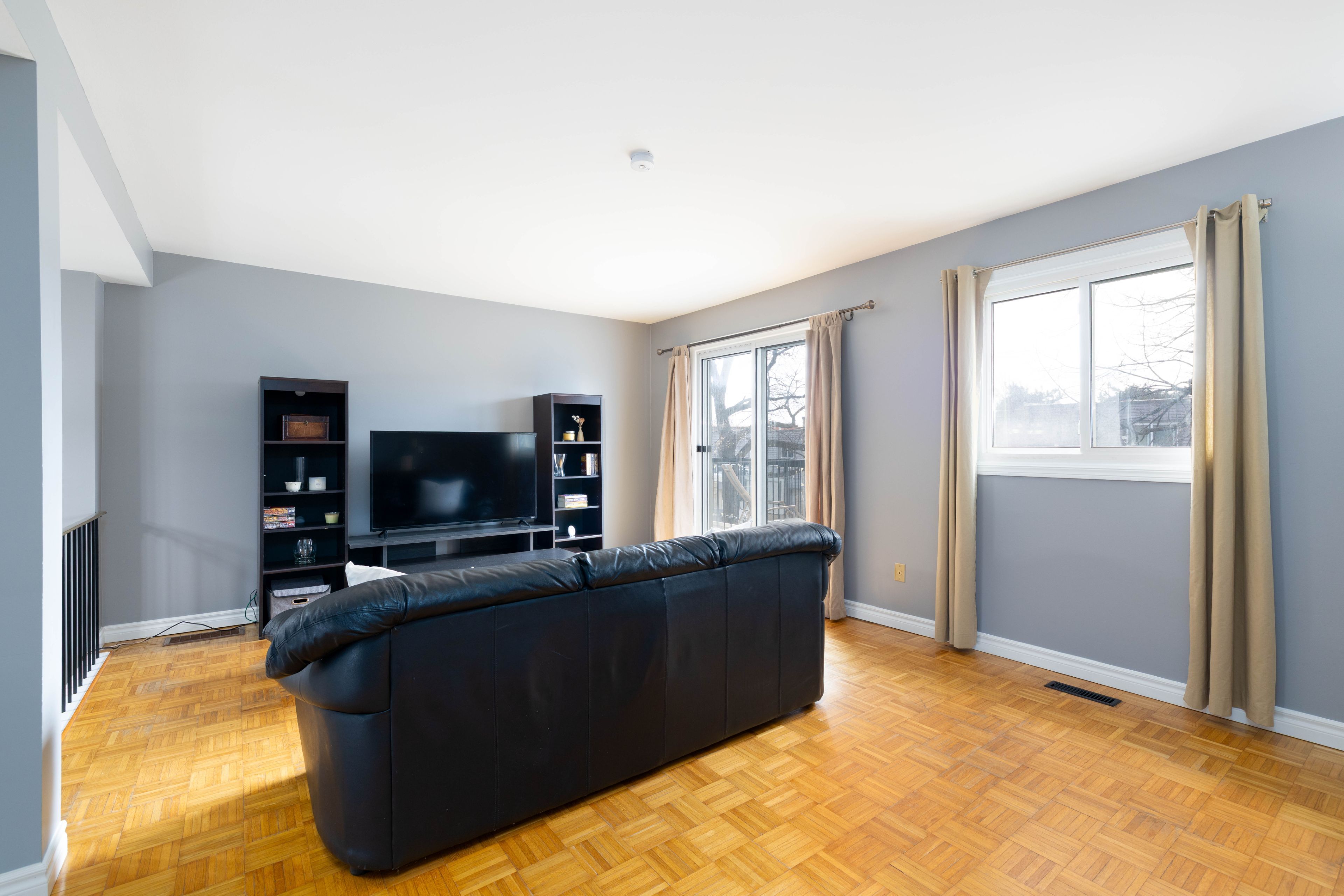 • Sun-filled living room with access to a private balcony.
