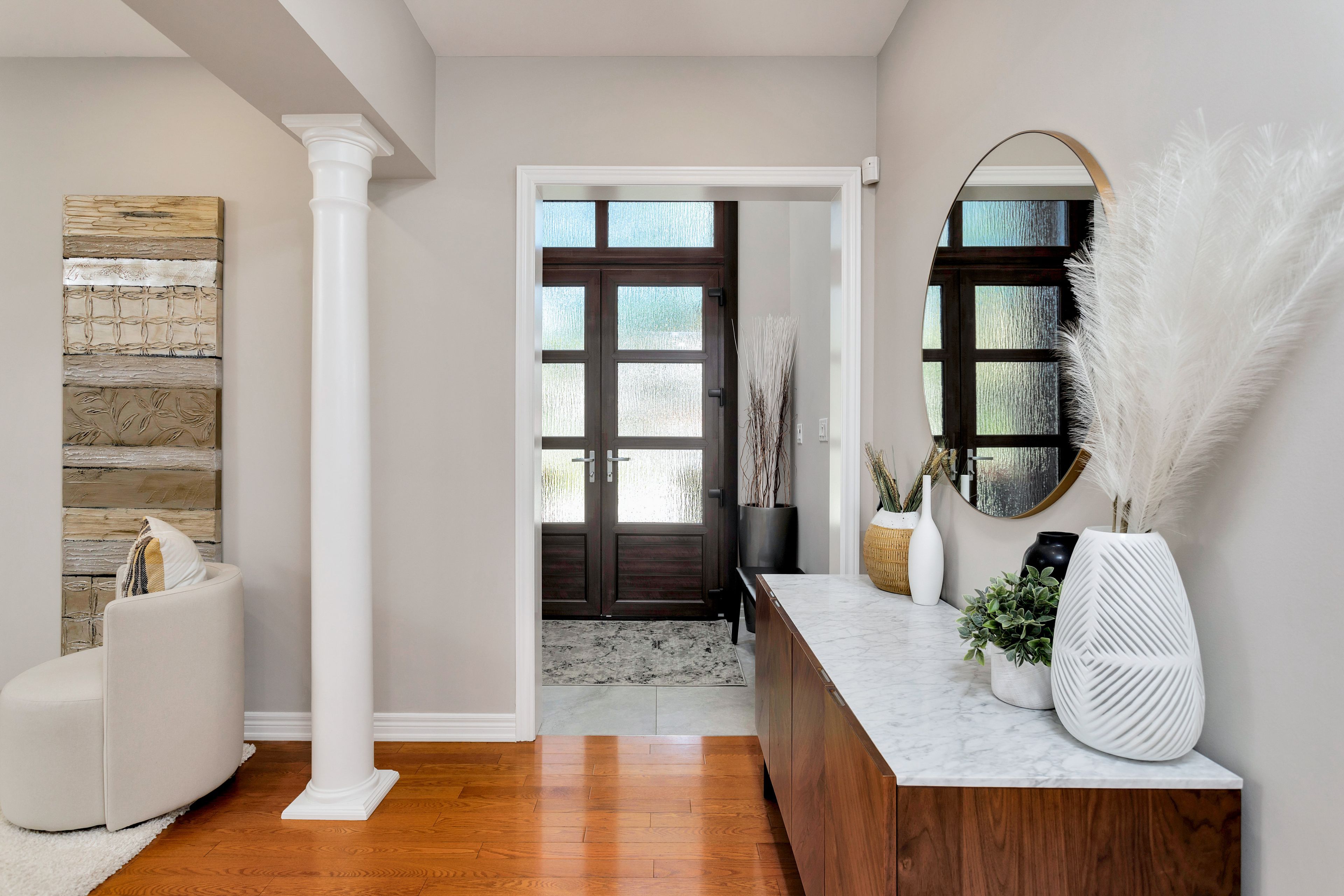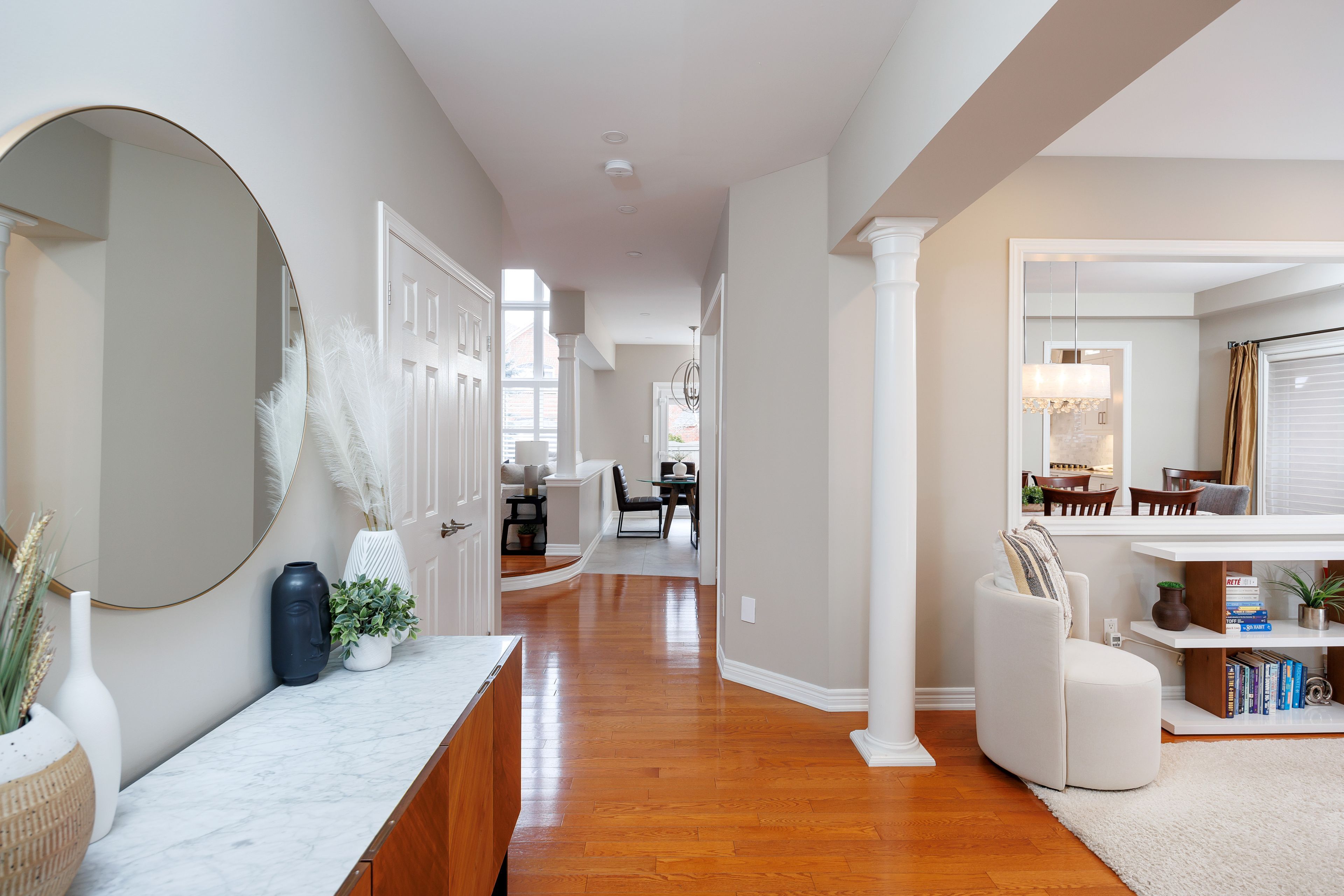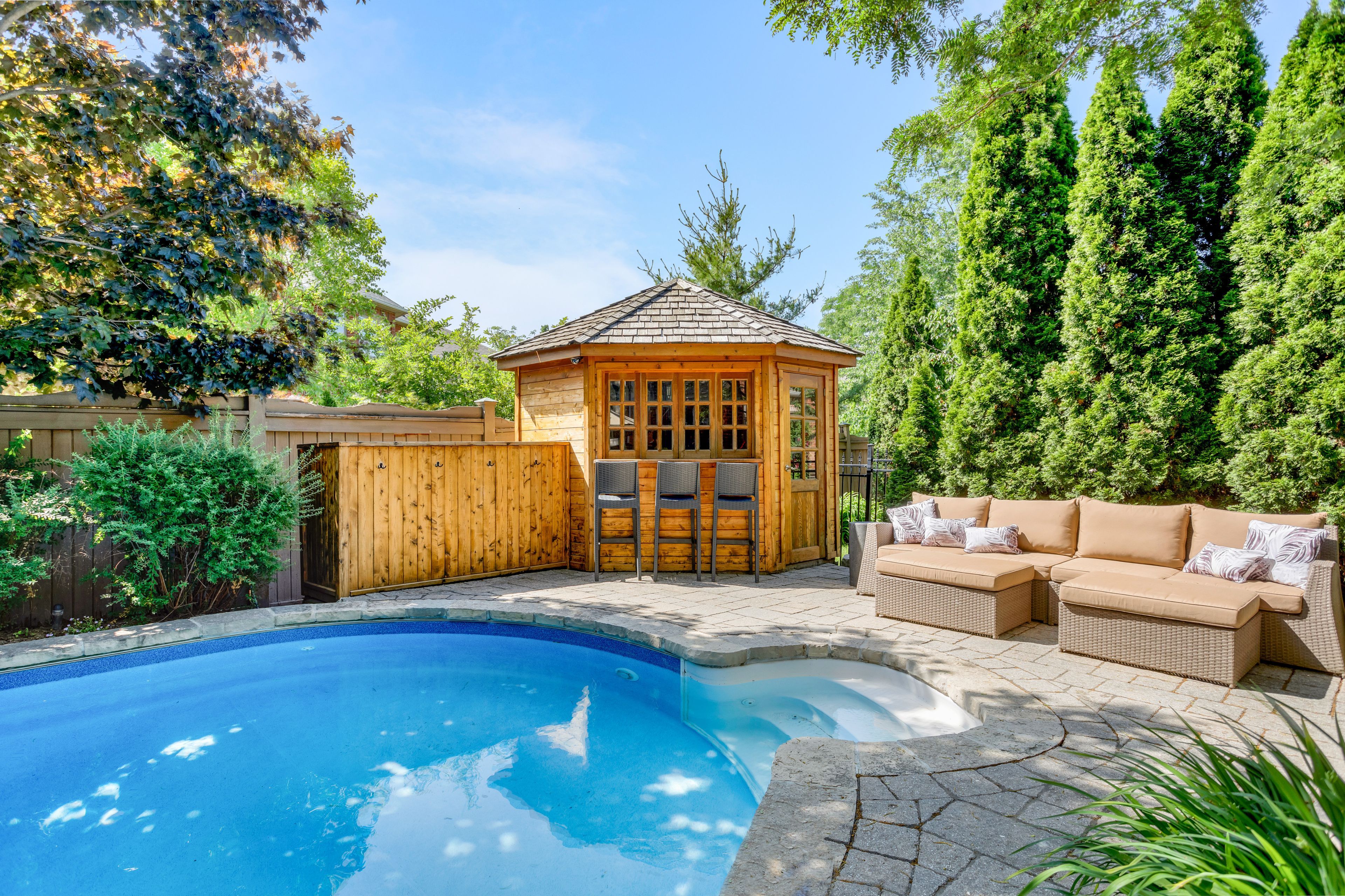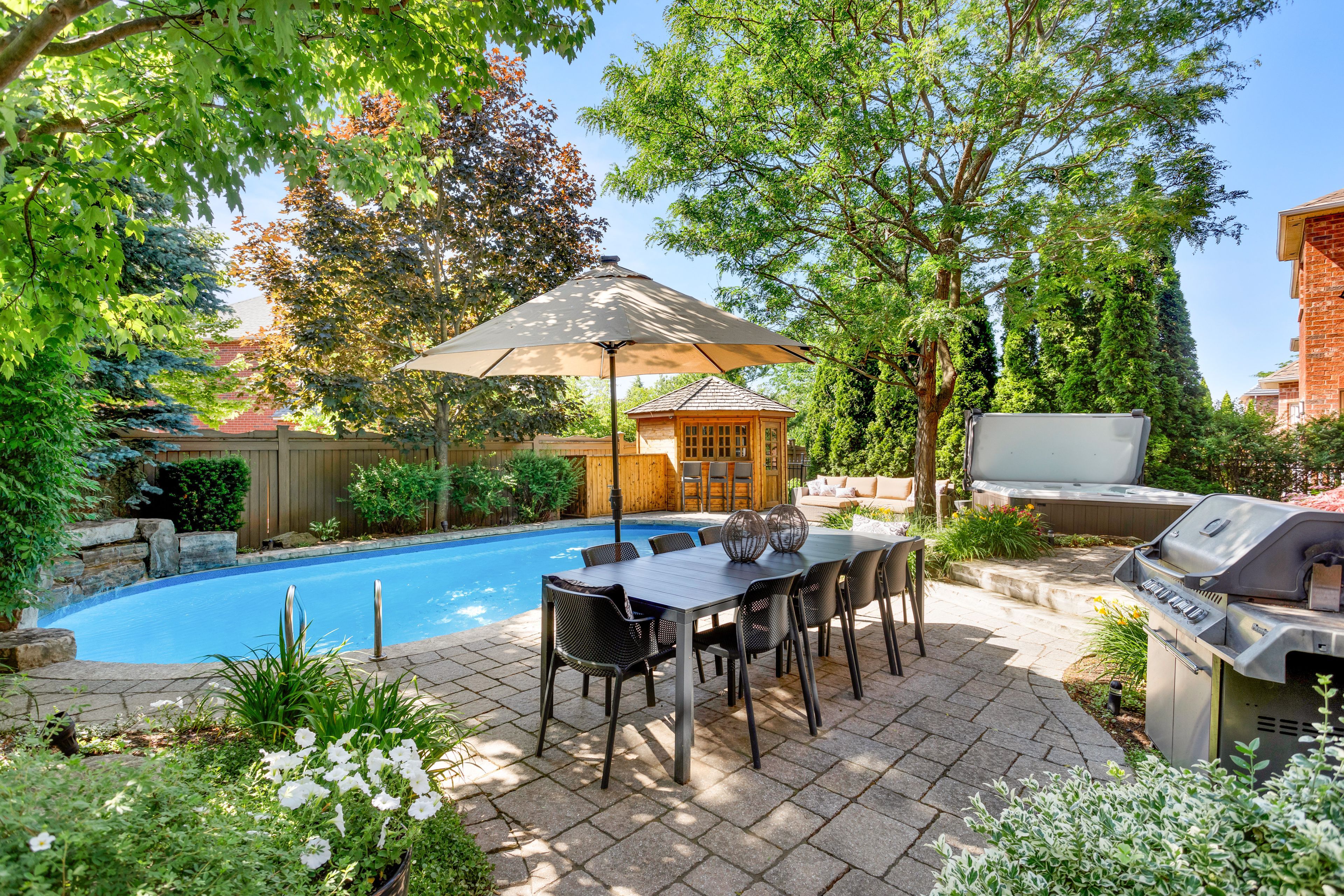First time ever offered. A rare opportunity in joshua creek. Featuring a private resort-style backyard with a saltwater pool and hot tub, a mature landscaped lot, a renovated luxury kitchen and bathrooms, exceptional main-floor versatility, and a finished lower level, this home offers a rare blend of lifestyle and function. A private backyard oasis defines the lifestyle, featuring a fully automated saltwater pool and a new hot tub designed for entertaining and everyday relaxation. The mature, landscaped lot offers exceptional privacy, creating a peaceful retreat for summer gatherings and quiet mornings. Inside, the home is anchored by a renovated luxury kitchen, thoughtfully appointed with built-in jennair appliances including a coffee maker, wine fridge, and panelled refrigerator. Updated washrooms, including the primary ensuite, complement the space with timeless finishes. A double-height family room adds volume and natural light, creating an inviting central gathering area. What truly sets this home apart is its main-floor versatility. In addition to the family room, dining area, and kitchen with breakfast space, the layout includes both a dedicated office and a separate den or living room, allowing the home to adapt seamlessly to work-from-home needs and daily living. The finished basement extends the living space with a media room, recreation area, gym, and three-piece washroom. New exterior doors with multi-point locking systems provide added security and peace of mind. Located in oakville's sought-after joshua creek community, the home offers excellent convenience with quick access to the qew, 403, and 407, proximity to the oakville go station, and nearby shopping, parks, and trails. Families are drawn to the area for its top-ranked schools, strong sense of community, and access to downtown oakville's waterfront. Electric vehicle charger included. A rare first-time offering combining privacy, flexibility, and refined living.