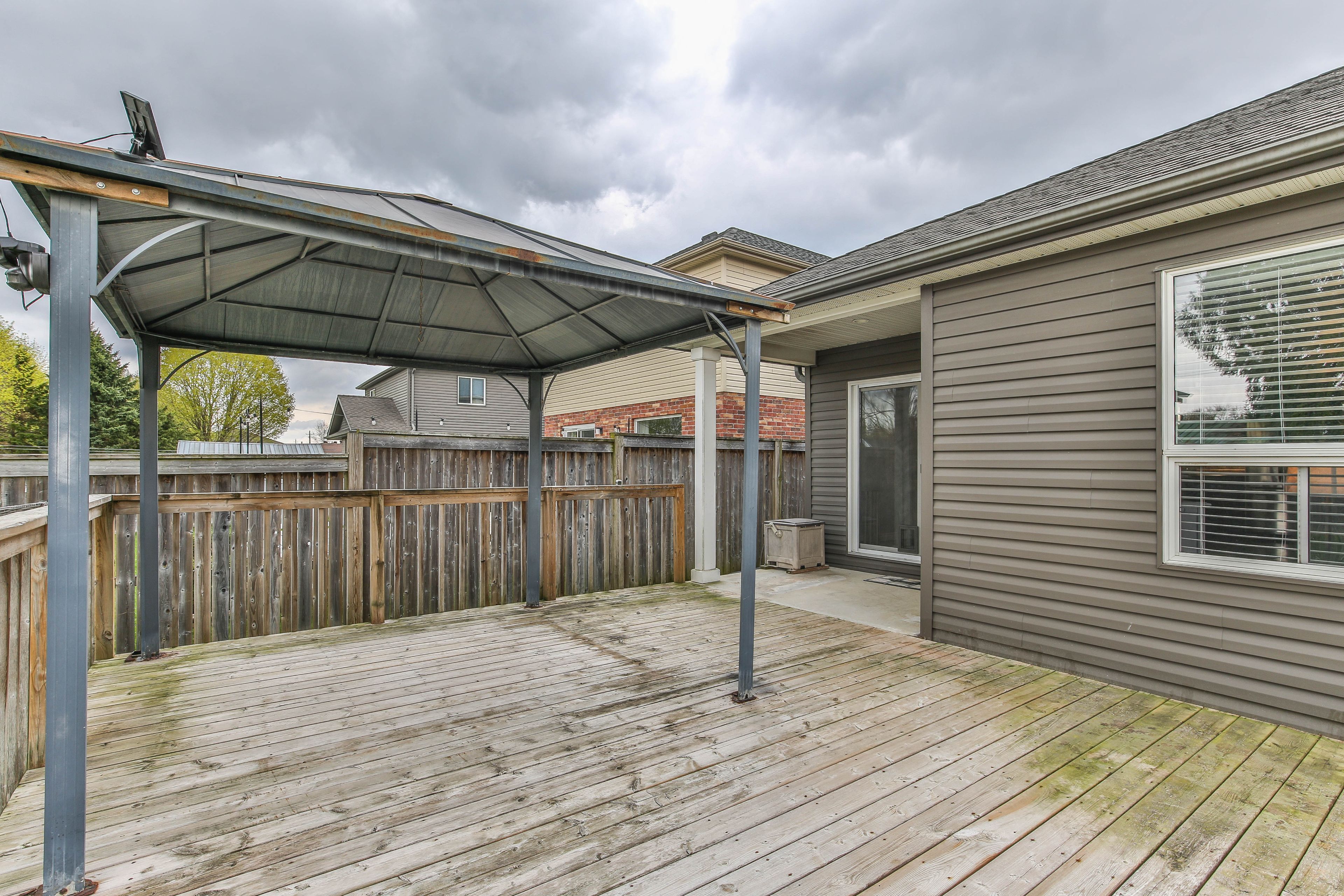 • Fully fenced backyard with a deck and gazebo for outdoor enjoyment.