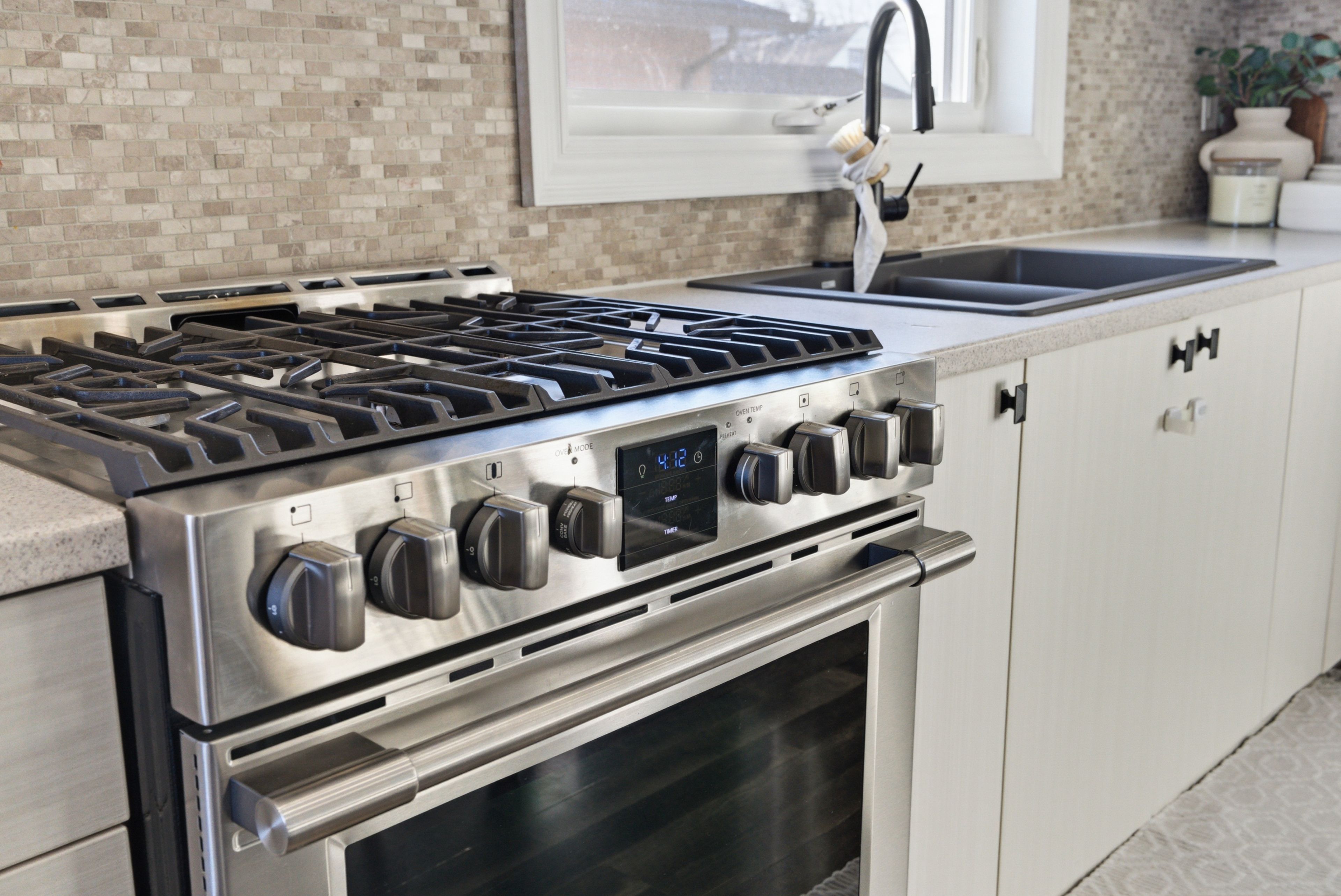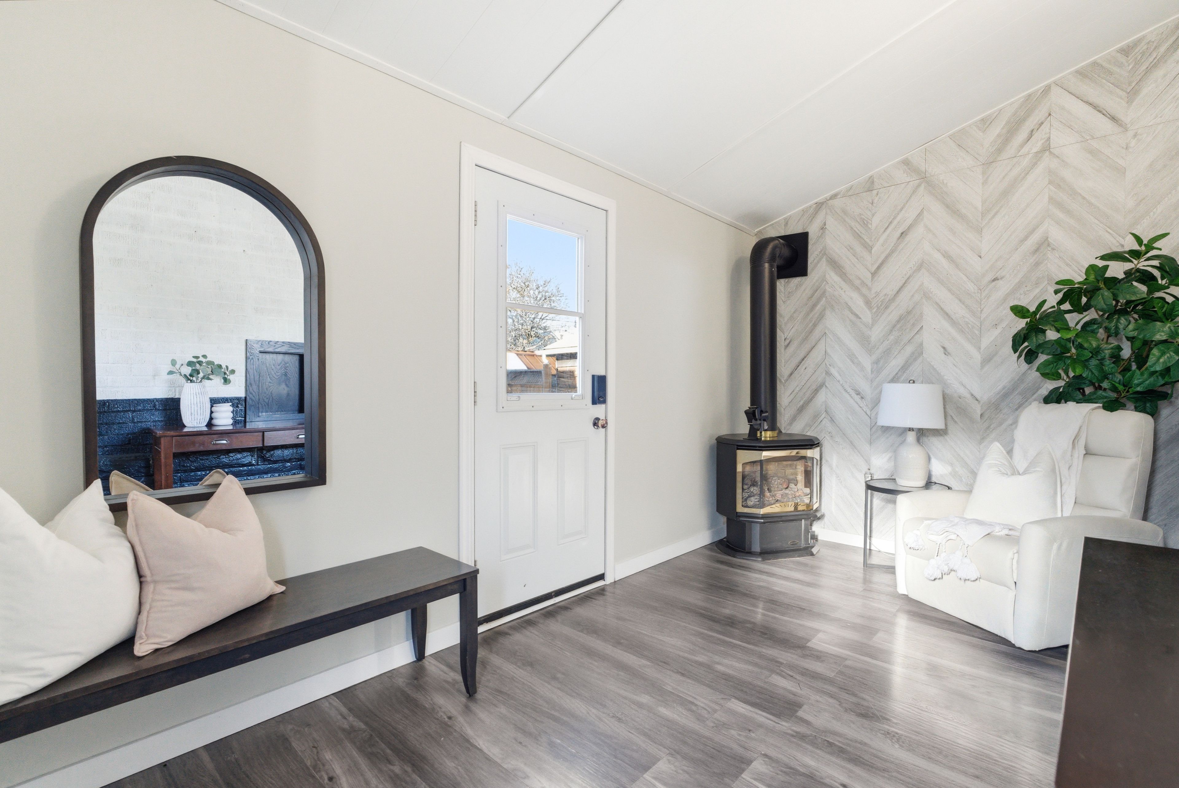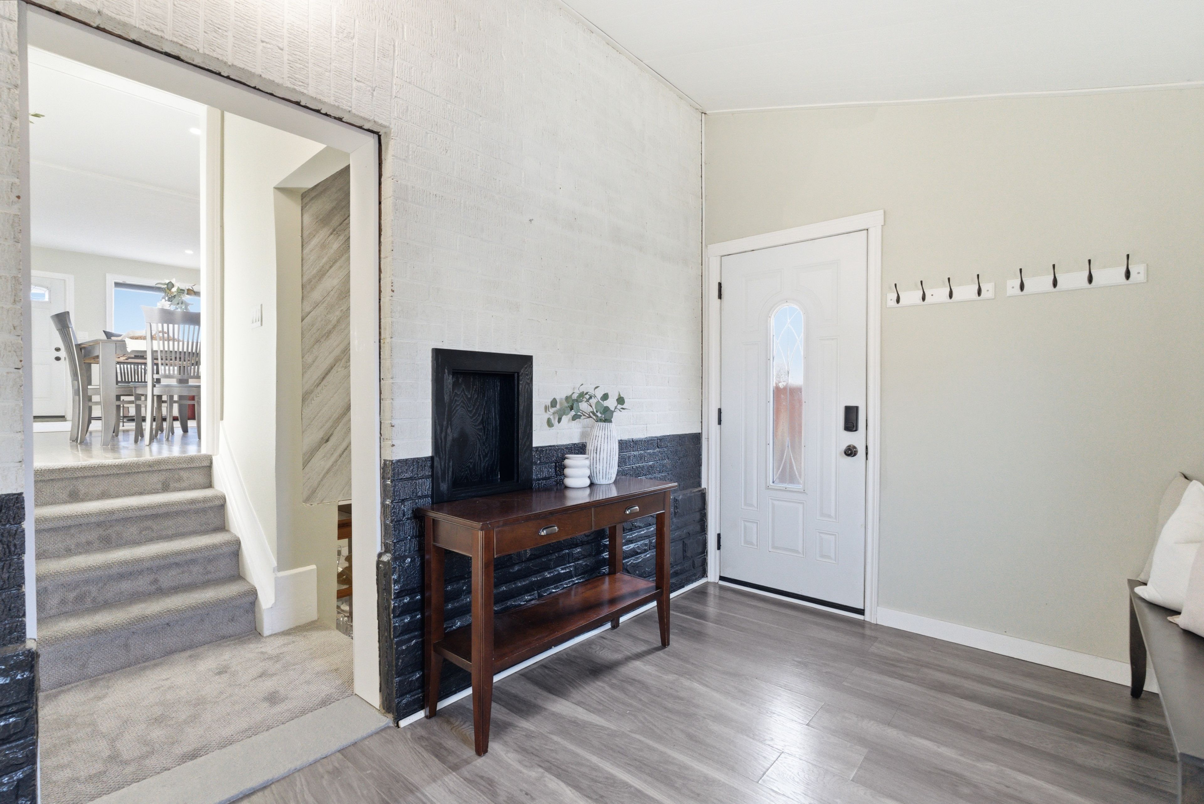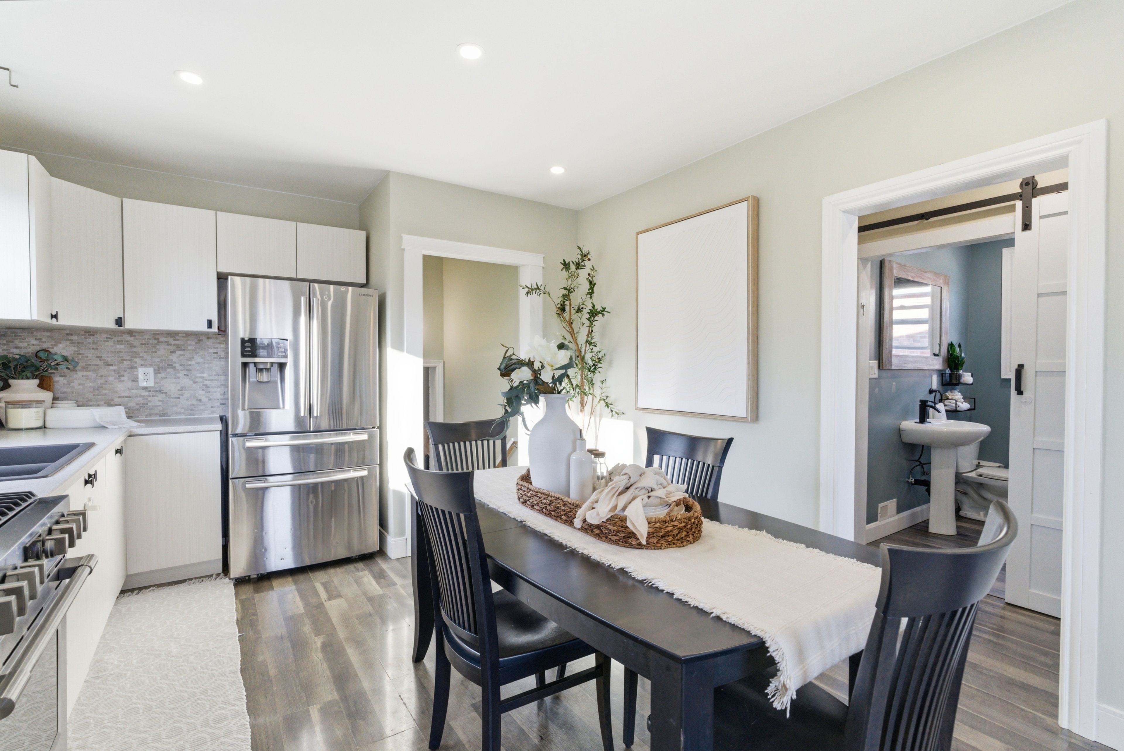 • Open concept living area with a renovated kitchen and stainless steel appliances.