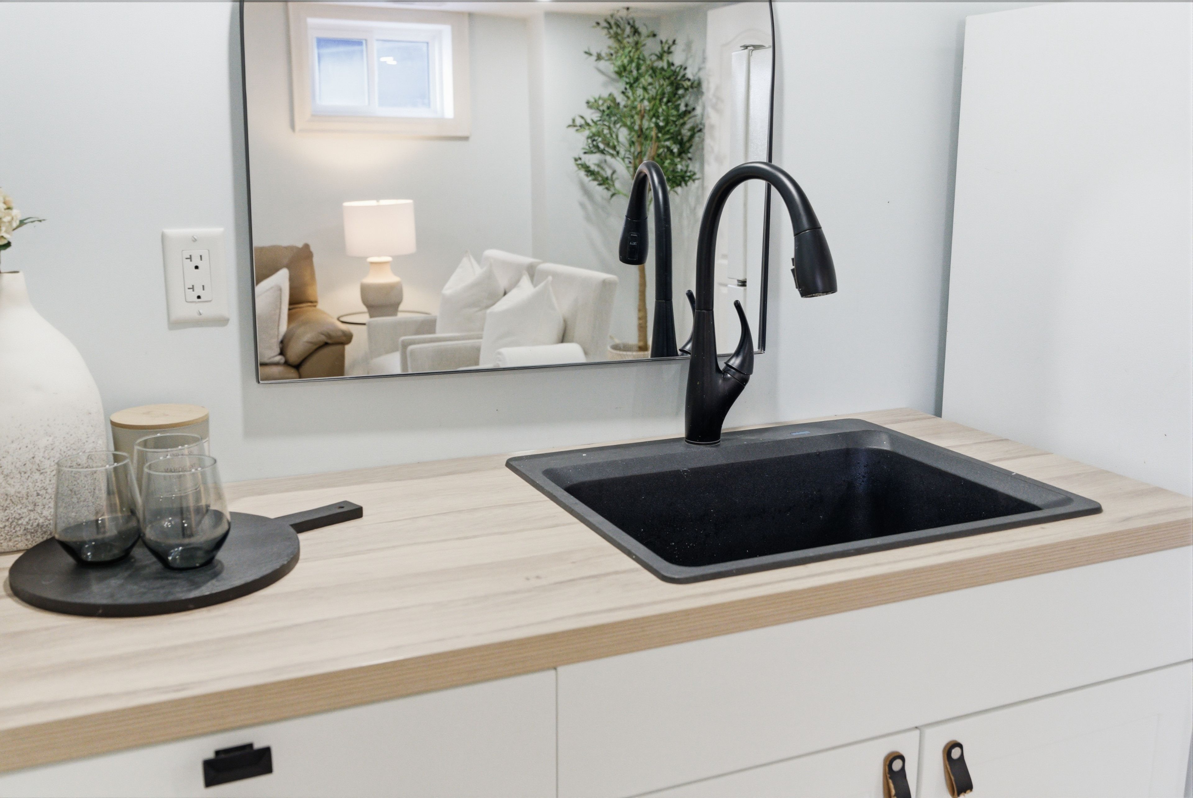 • Finished basement rec room with wet bar and extra bedroom.