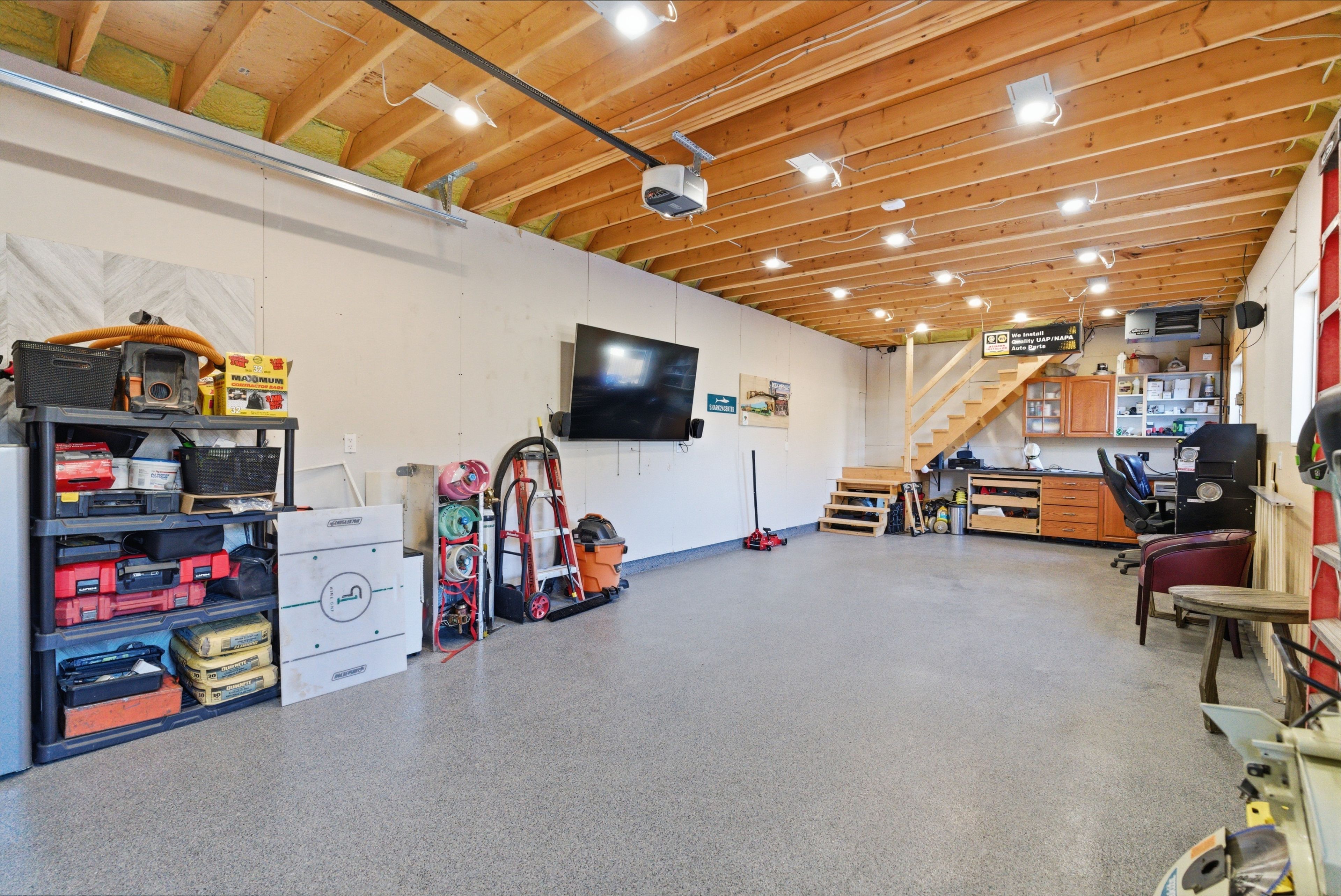 • Large detached garage with loft, ideal for hobbies and workspace.
