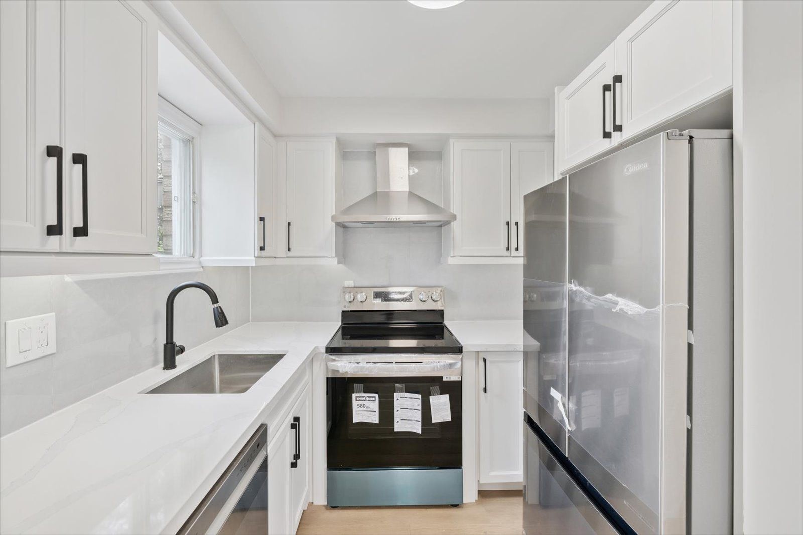 • Updated kitchen with quartz countertops and stainless steel appliances.