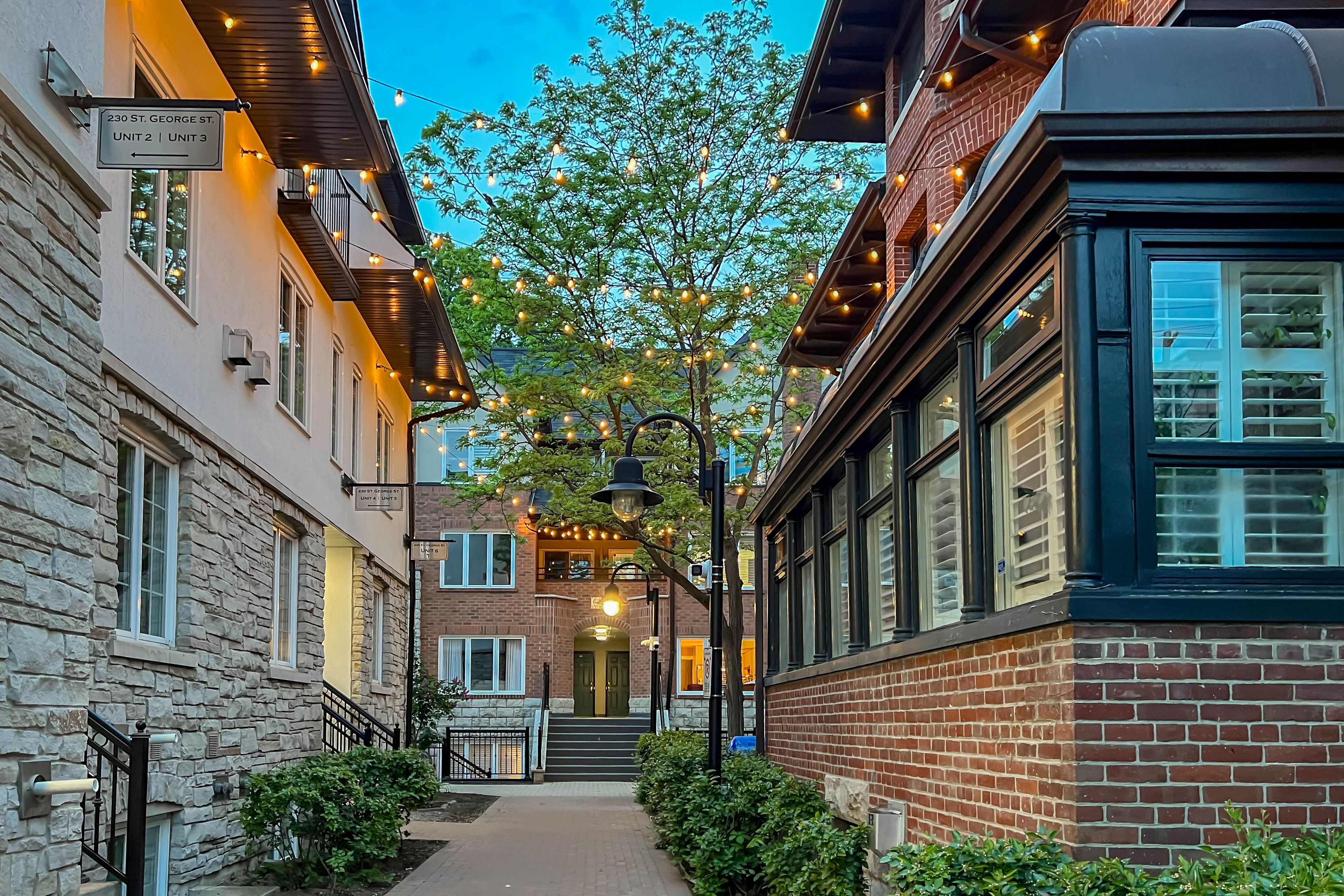 Discover the charm of lennox mews, tucked away from the main road along an enchanting walkway will lead you to townhouse 19. This beautifully renovated upper-level unit features 2+1 bedrooms and is completely move-in ready, showcasing upgraded finishes throughout. The home features oak hardwood flooring, along with a stunning quartz waterfall countertop and matching backsplash in the kitchen. The bright living room offers a warm and inviting atmosphere with a cozy gas fireplace. Upstairs, an expansive loft provides versatile living space and includes a walk-in closet plus additional storage, making it perfect for a home office, guest space, or additional living area. Enjoy two private outdoor balconies, ideal for relaxing or entertaining. Prime location: conveniently located within walking distance of the toronto subway line 1 yonge-university stations at st. George station, dupont station, and spadina station. Also just minutes from the shops and dining of yorkville, the boutiques of bloor street, and the campus of the university of toronto. Additional features: owned parking spot, storage locker, visitor parking available.